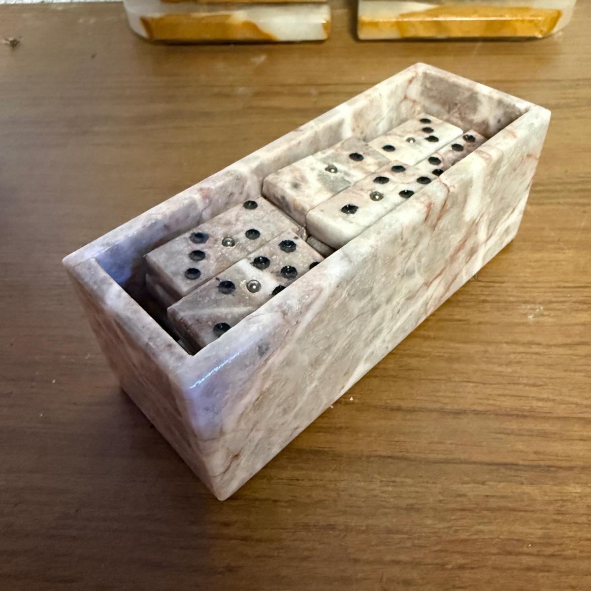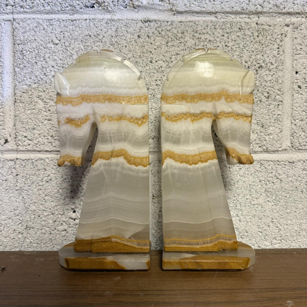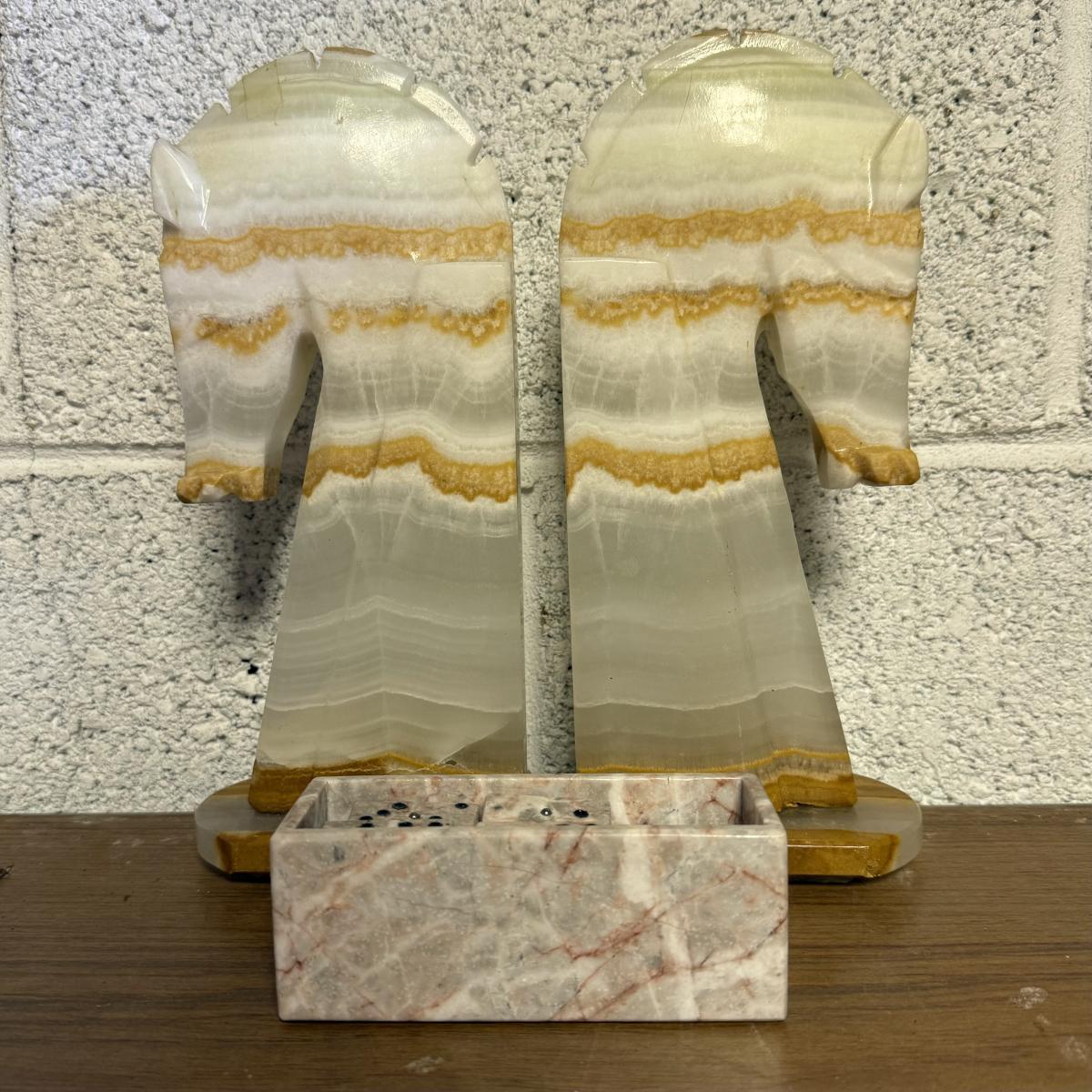 LOT 98B: Vintage Marble Horse Head Bookends & Set of Pink Marble Dominoes