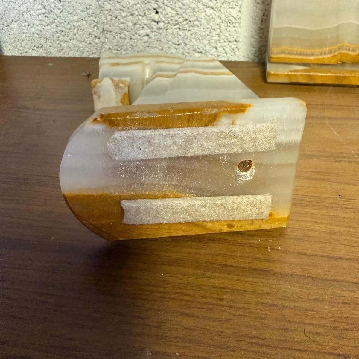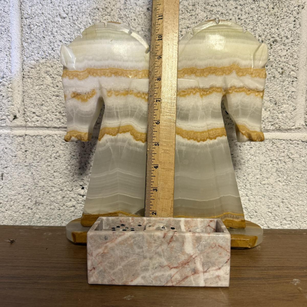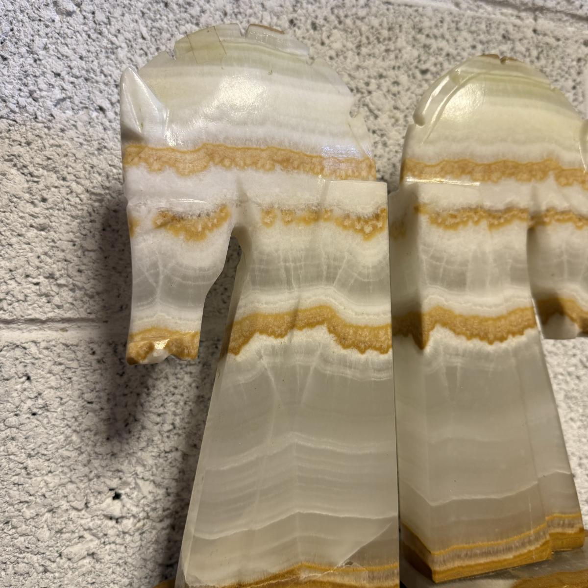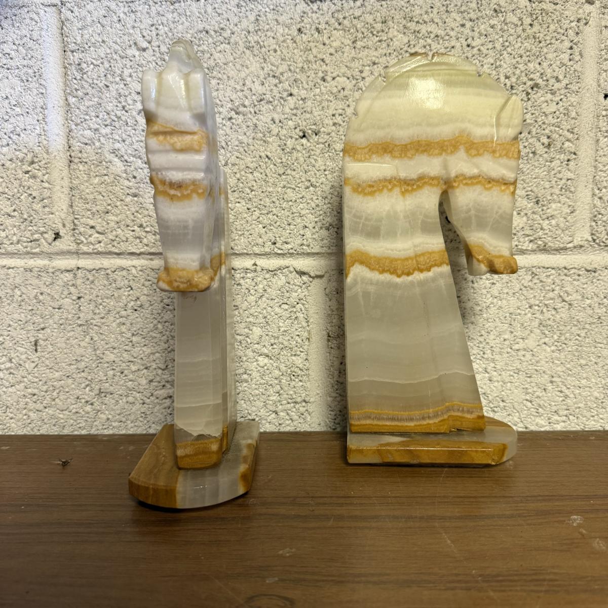 LOT 98B: Vintage Marble Horse Head Bookends & Set of Pink Marble Dominoes