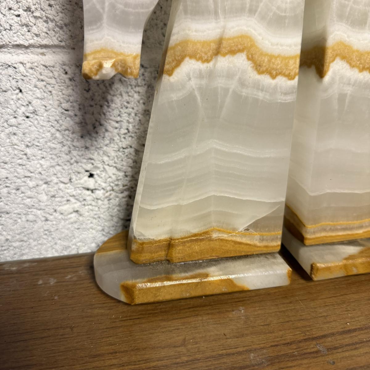 One bookend is loose on the stand.