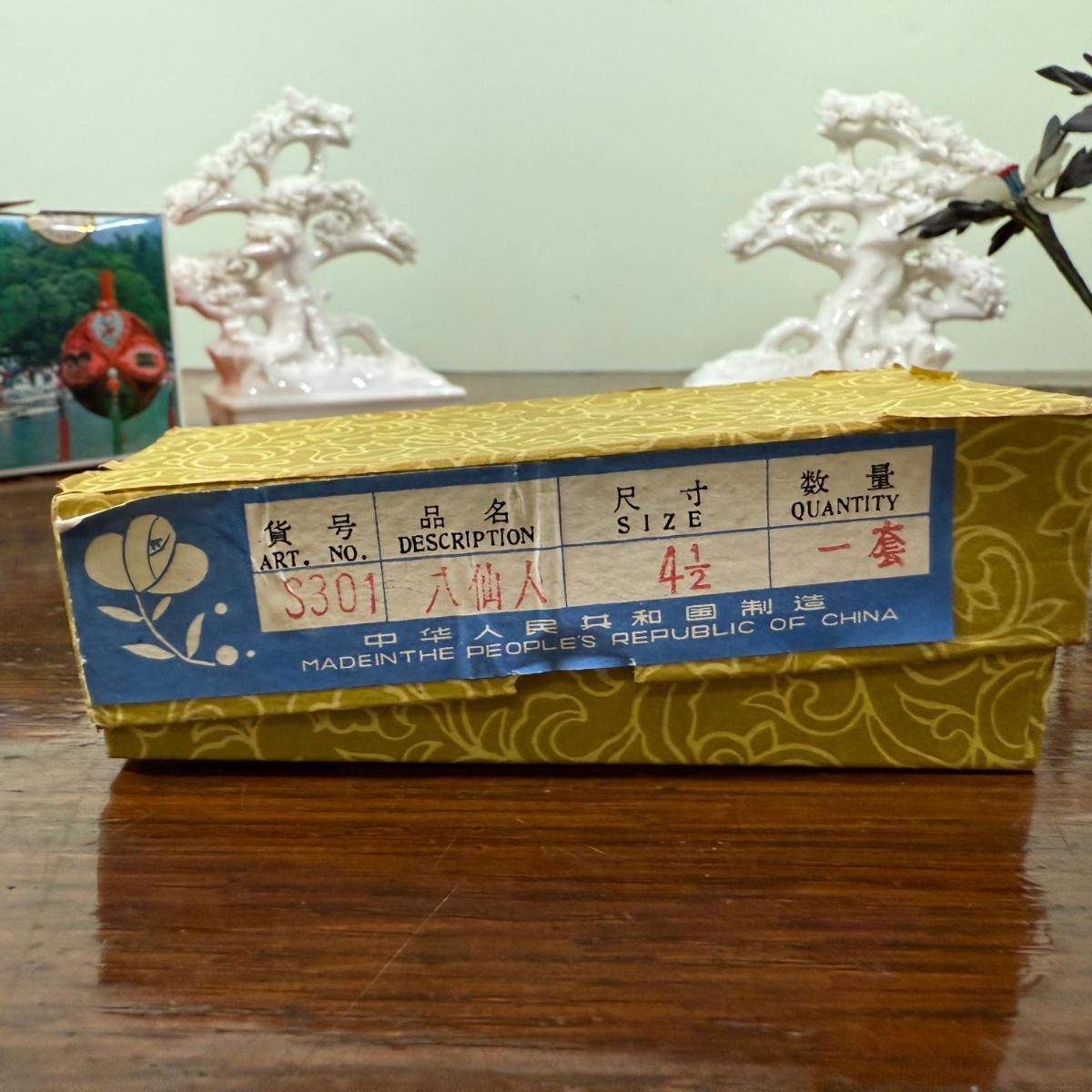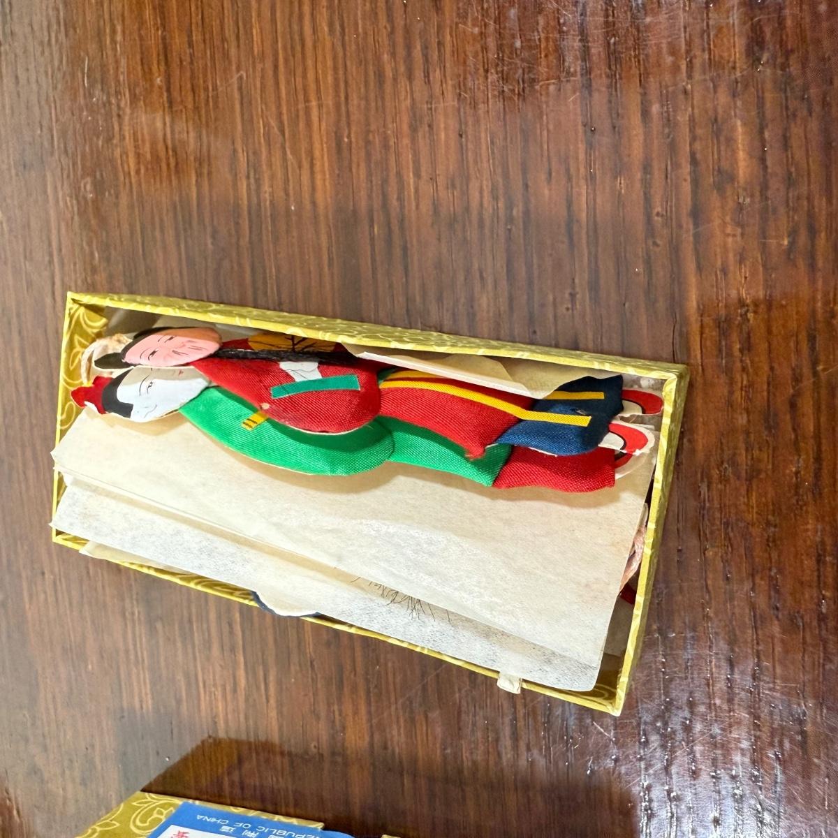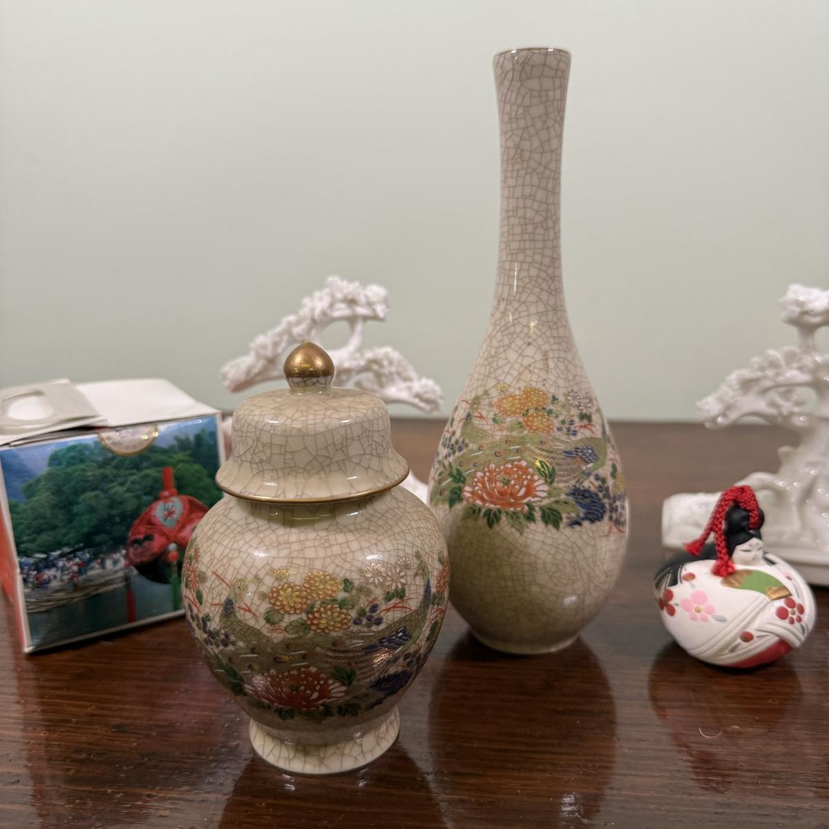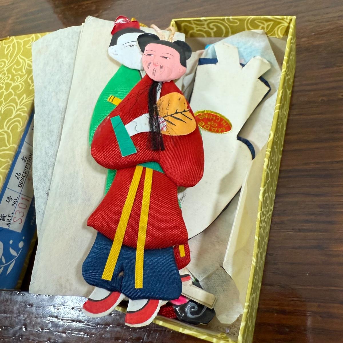 LOT 102B: Chinese Fabric Dolls in Box, Hand Painted Egg, Victorian Shoe, Stone Bonsai & White Porcelain Bonsai Trees