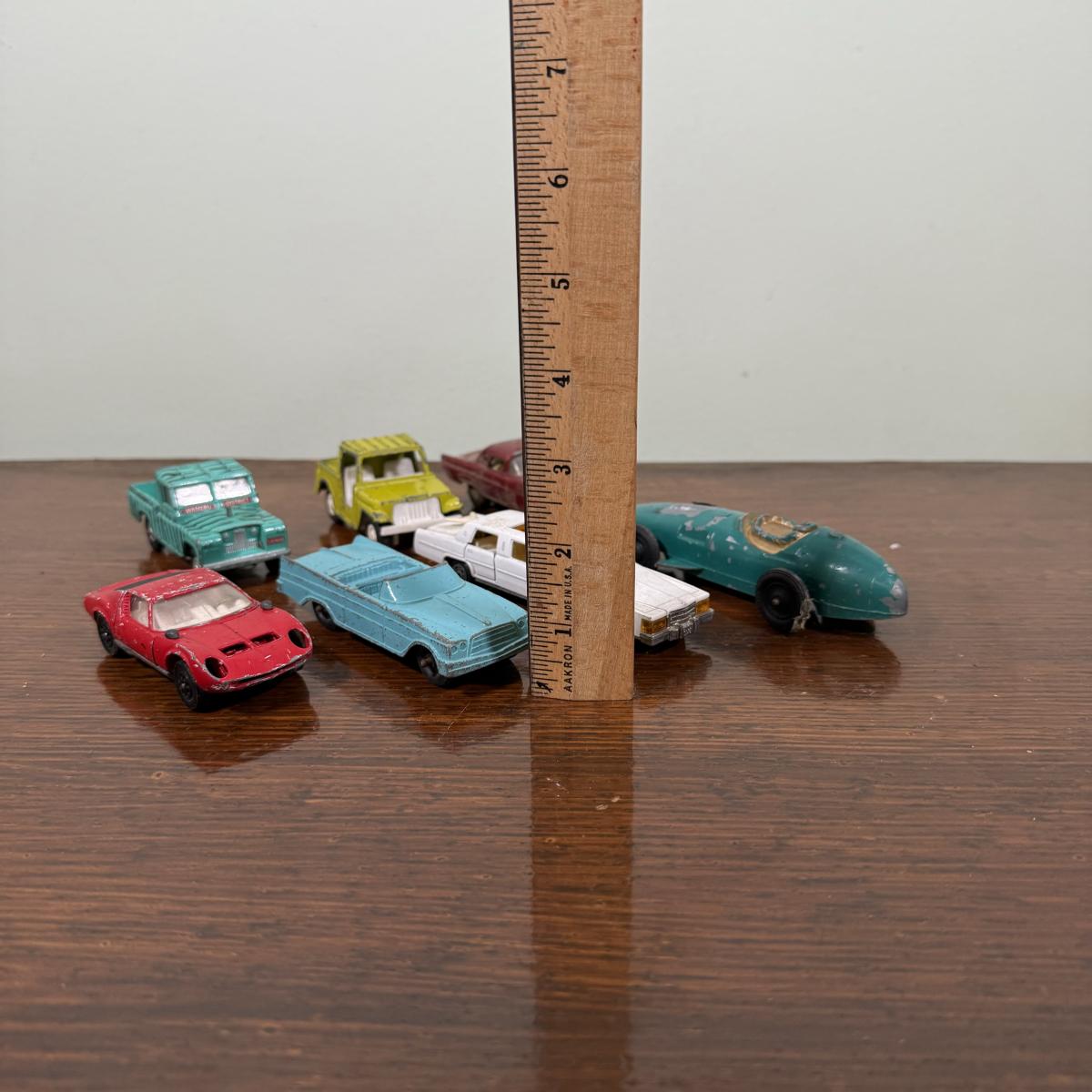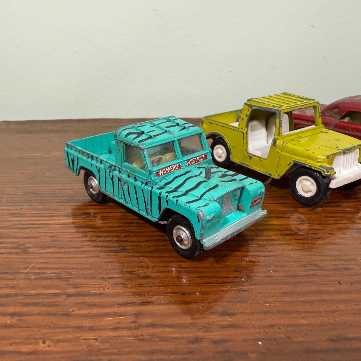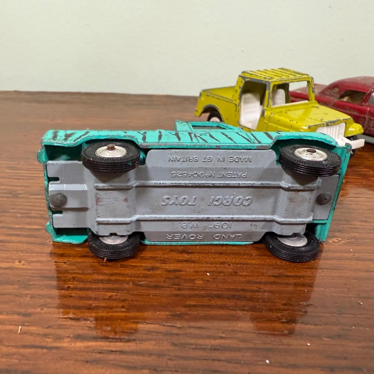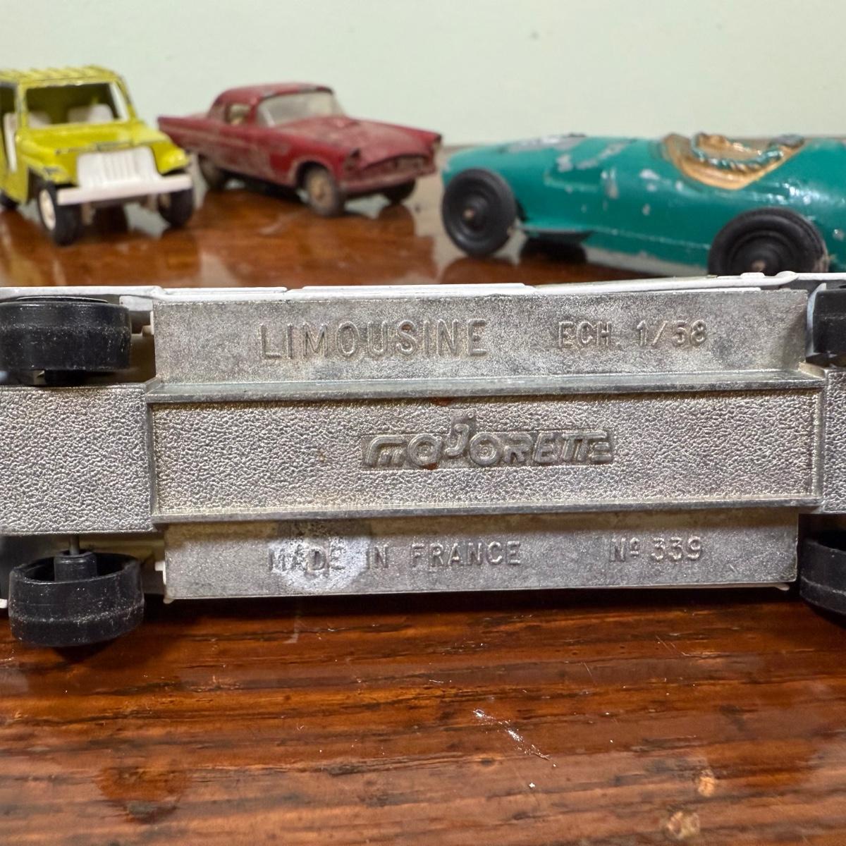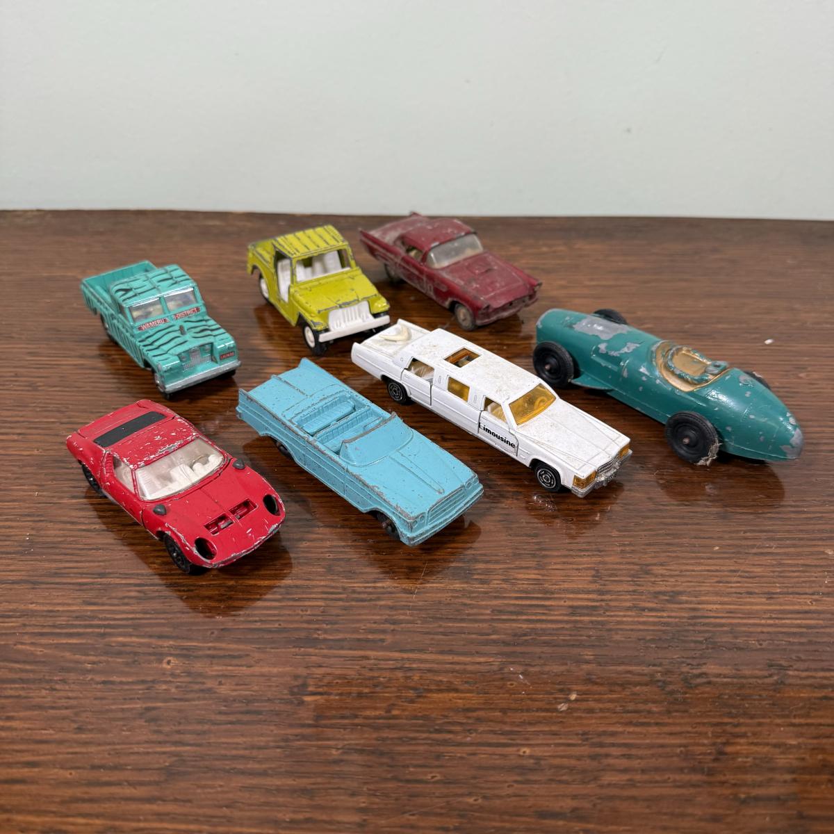 LOT 108B: Collection of Vintage Toy Cars about 1/40 Scale - 1989 Tootsietoy Jeep, Zee Macau 1956 Ford T-Bird, French Mojorette Limo, Corgi Toys Lamborghini Miura P400 & Land Rover 109" WB