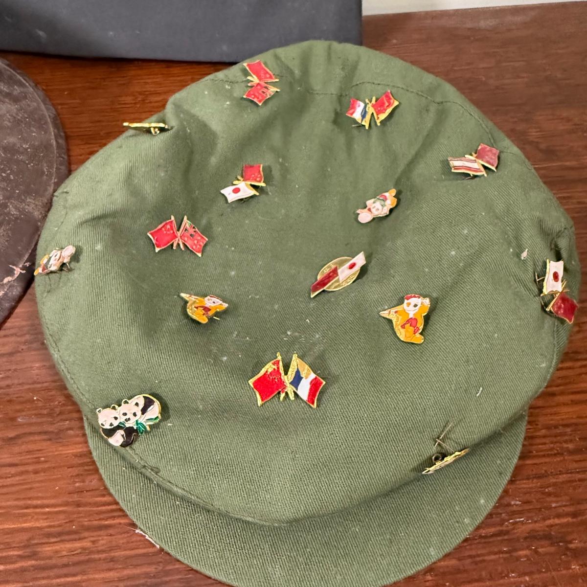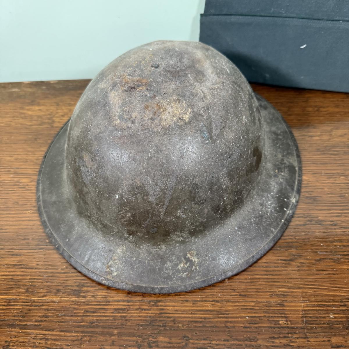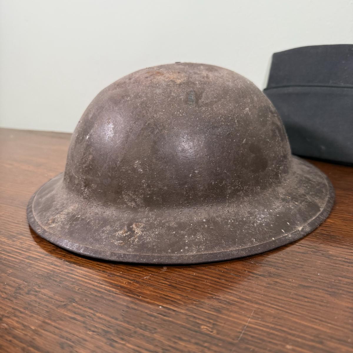 LOT 109B: Vintage WWI/WWII Brodie Helmet, Military Cap w/ Pins & Garrison Cap