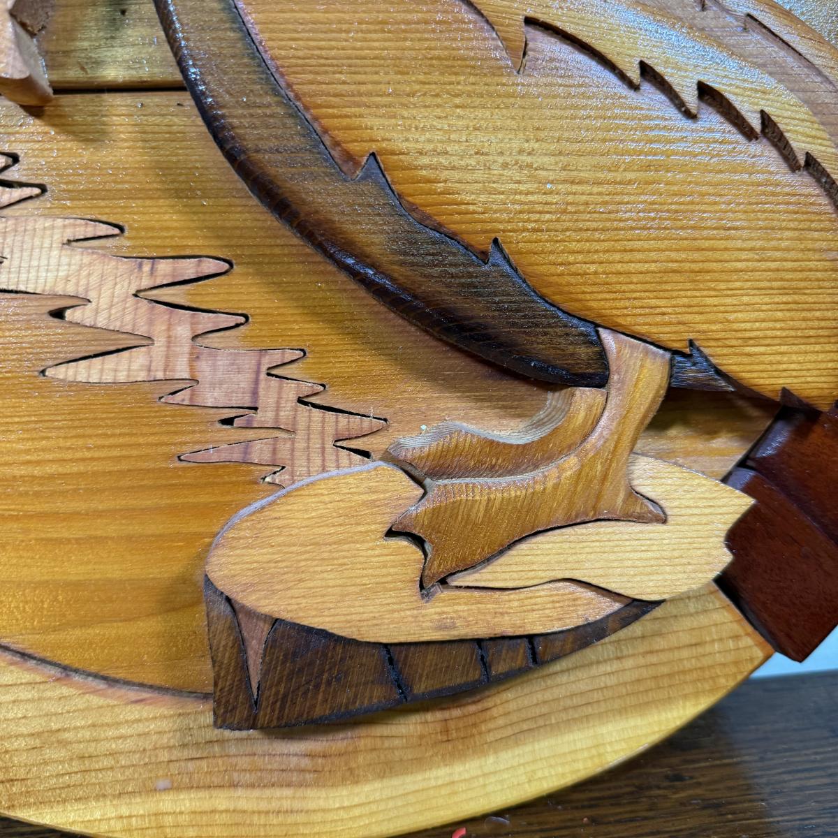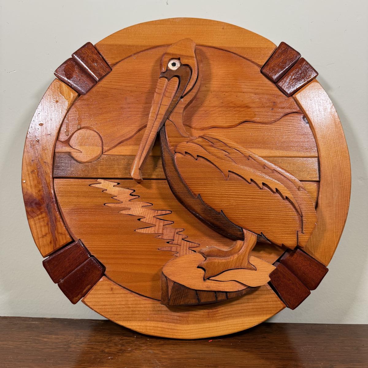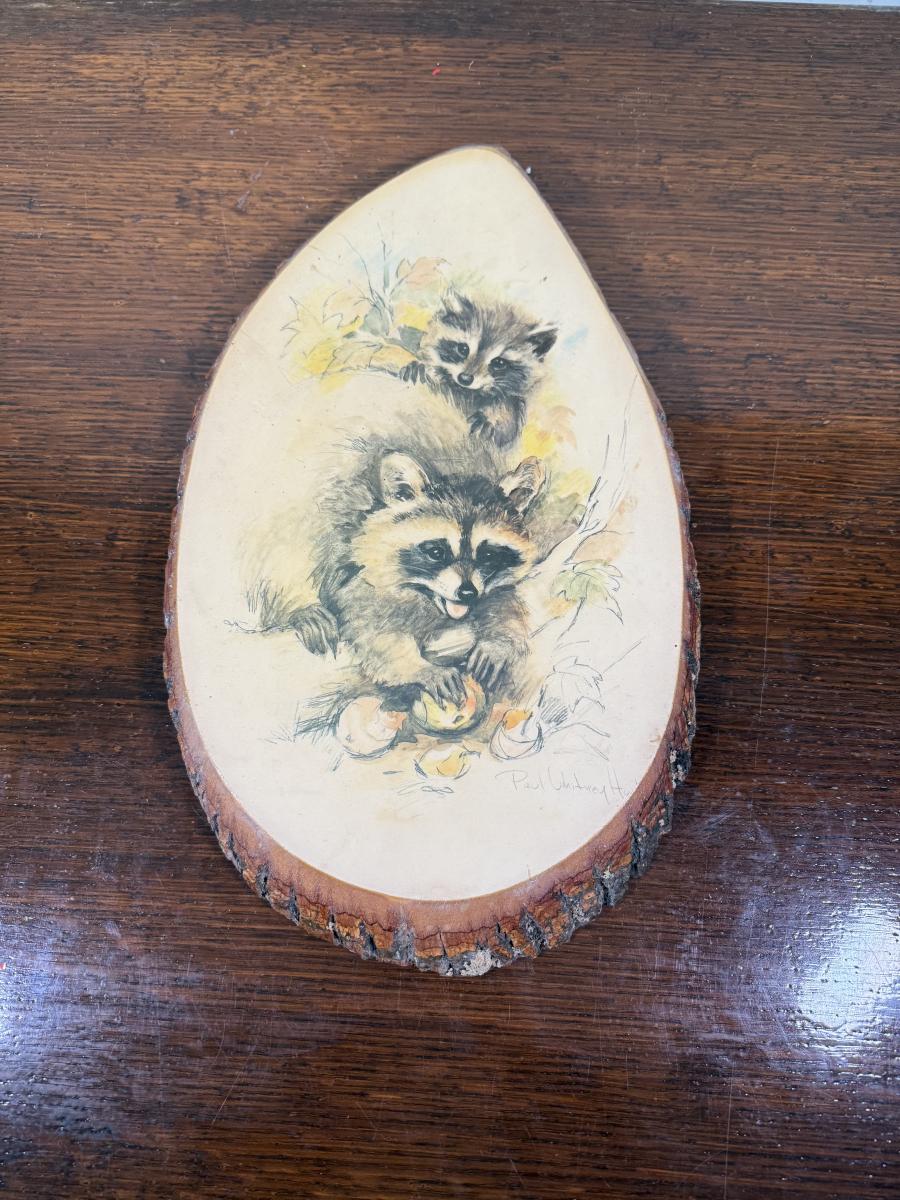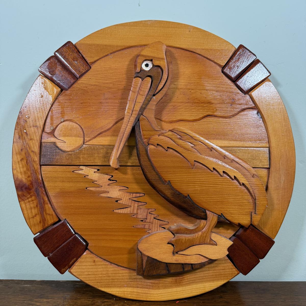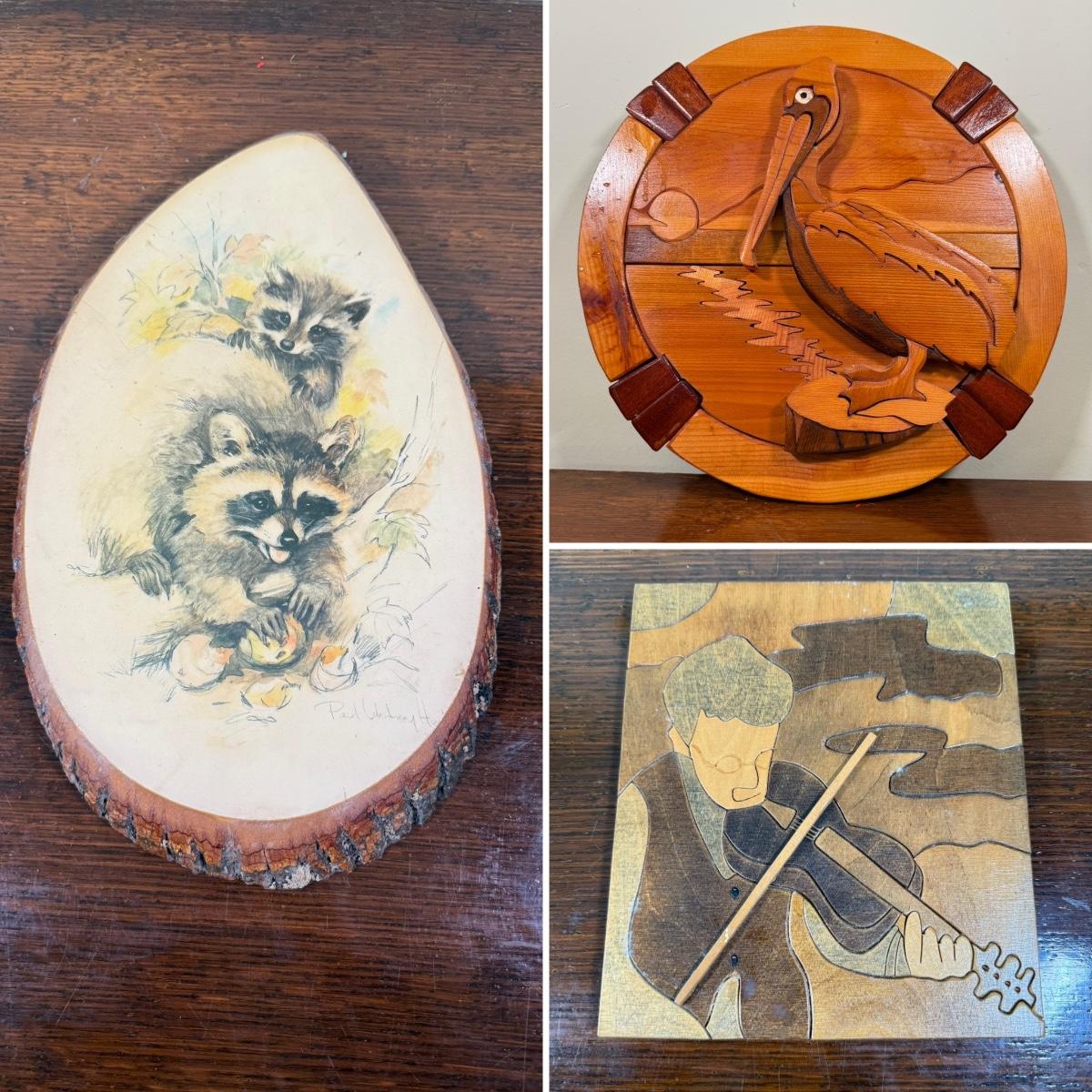 LOT 116B: Wooden Wall Art - Raccoons, Pelican & String Musician
