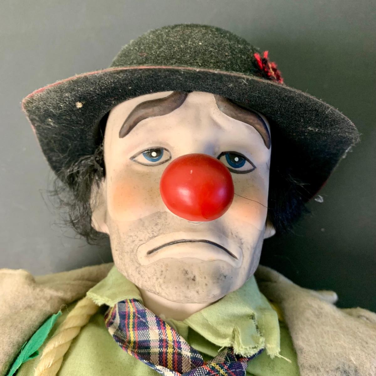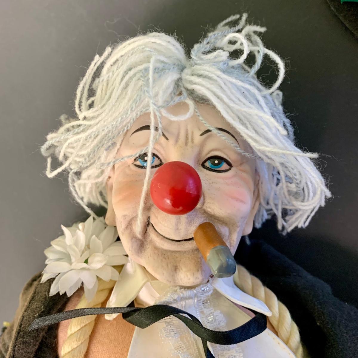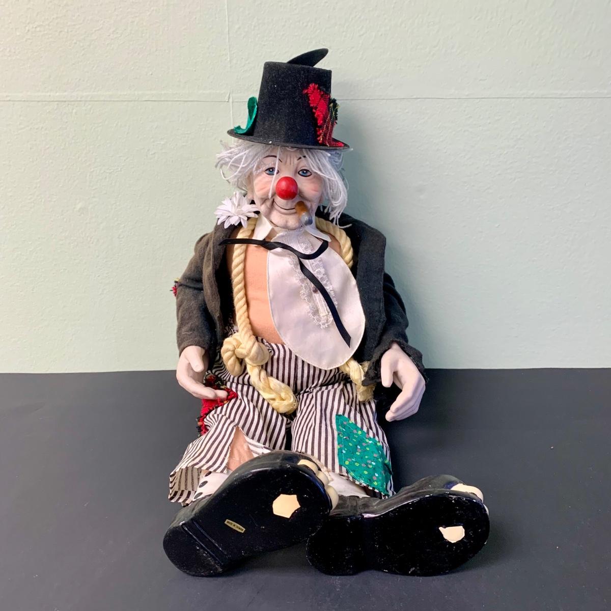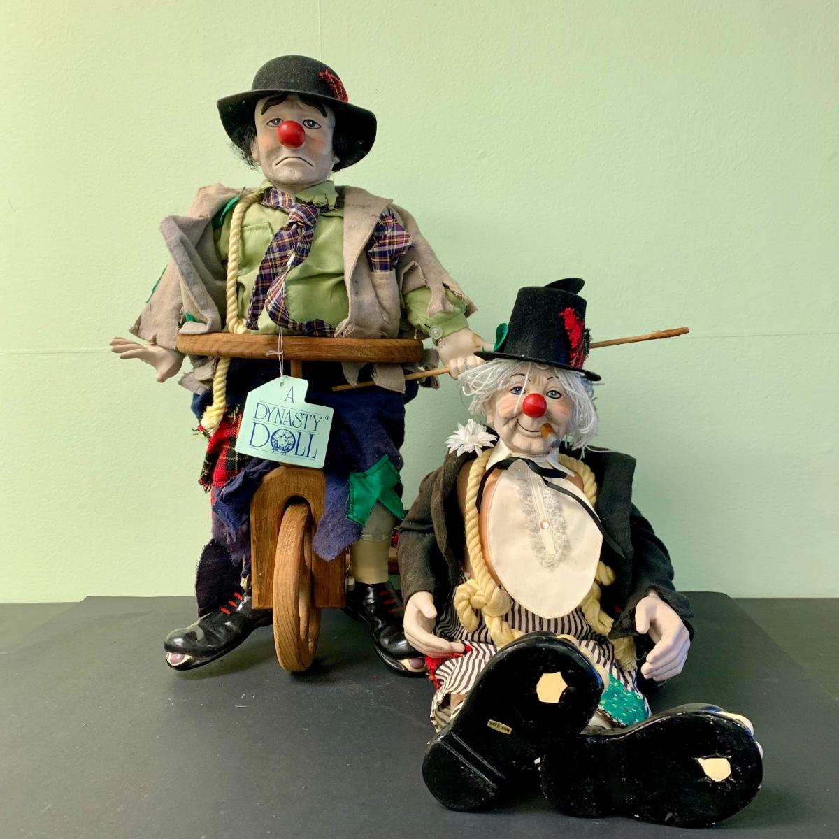 LOT 125 S: 1983 Dynasty Dolls Hobo & Clyde The Clowns w/ Miniature Wooden Doll Bicycle
