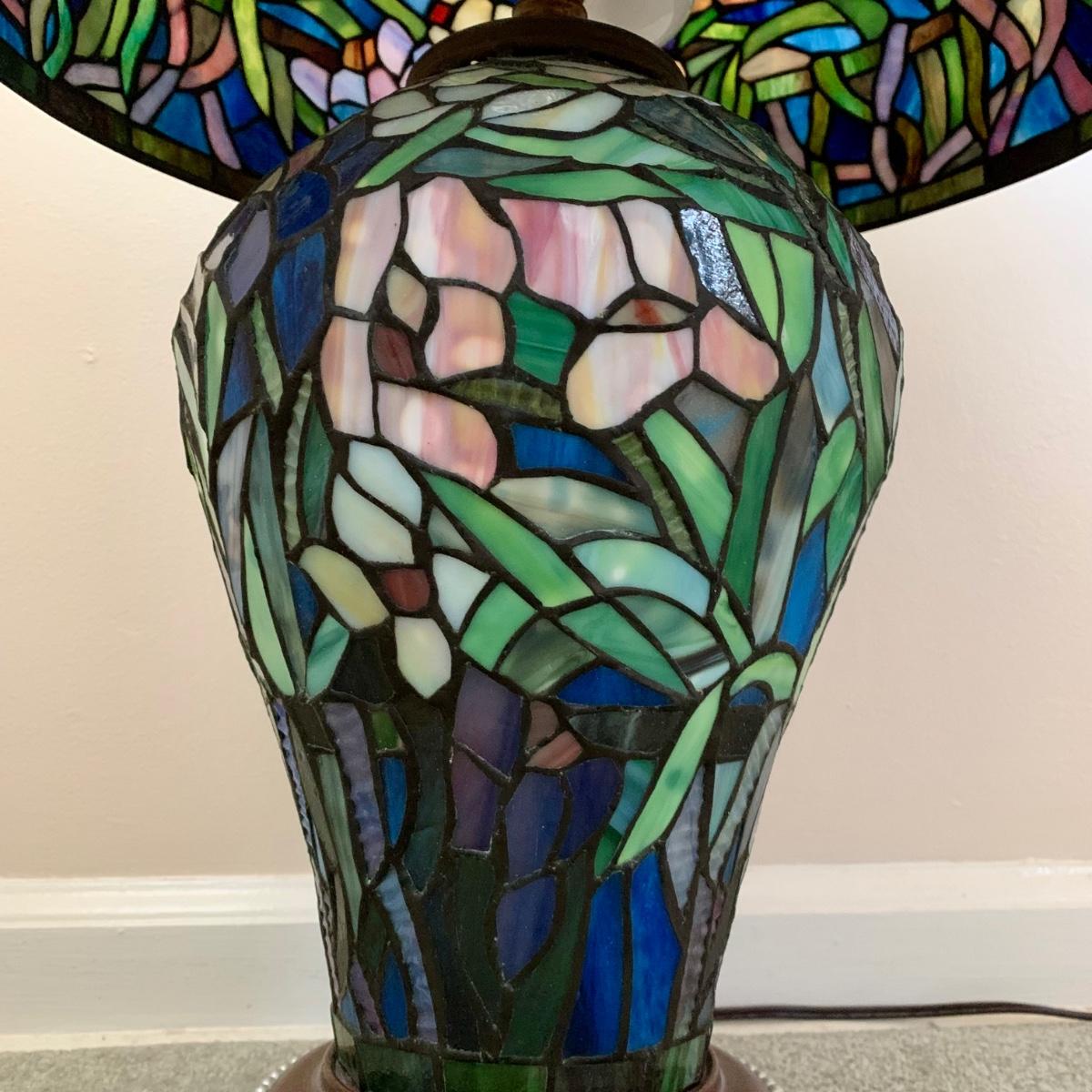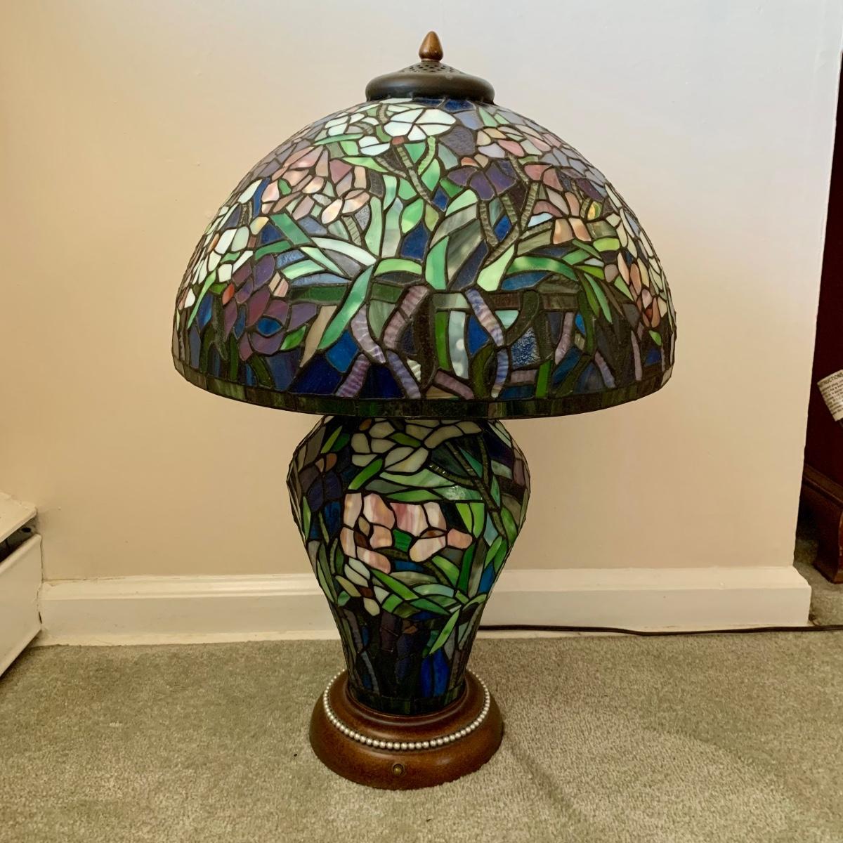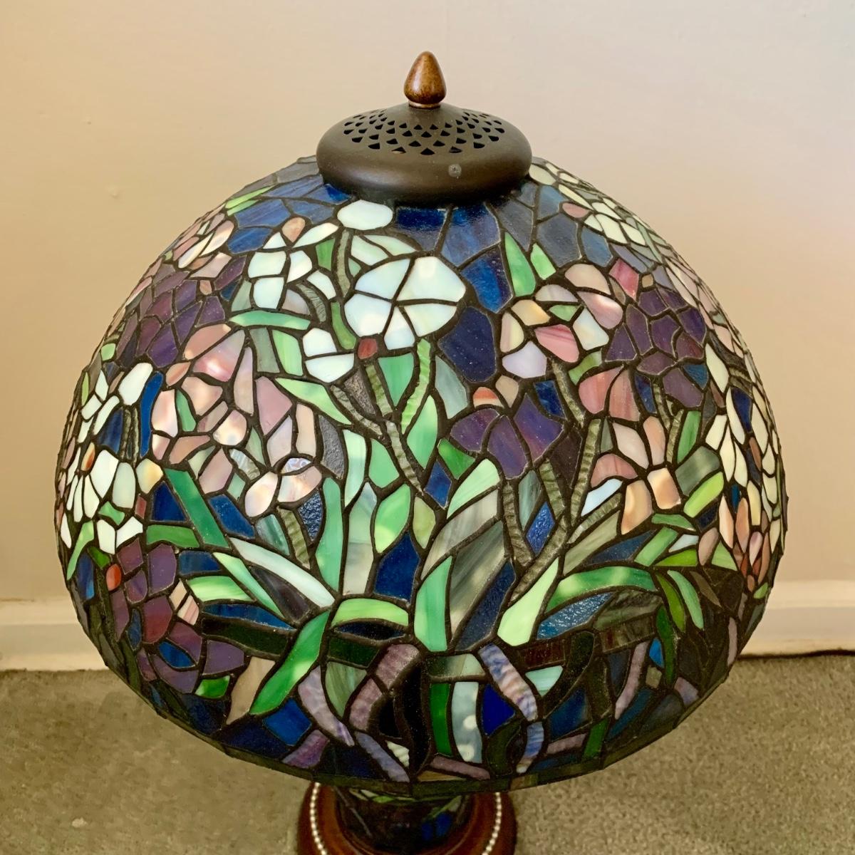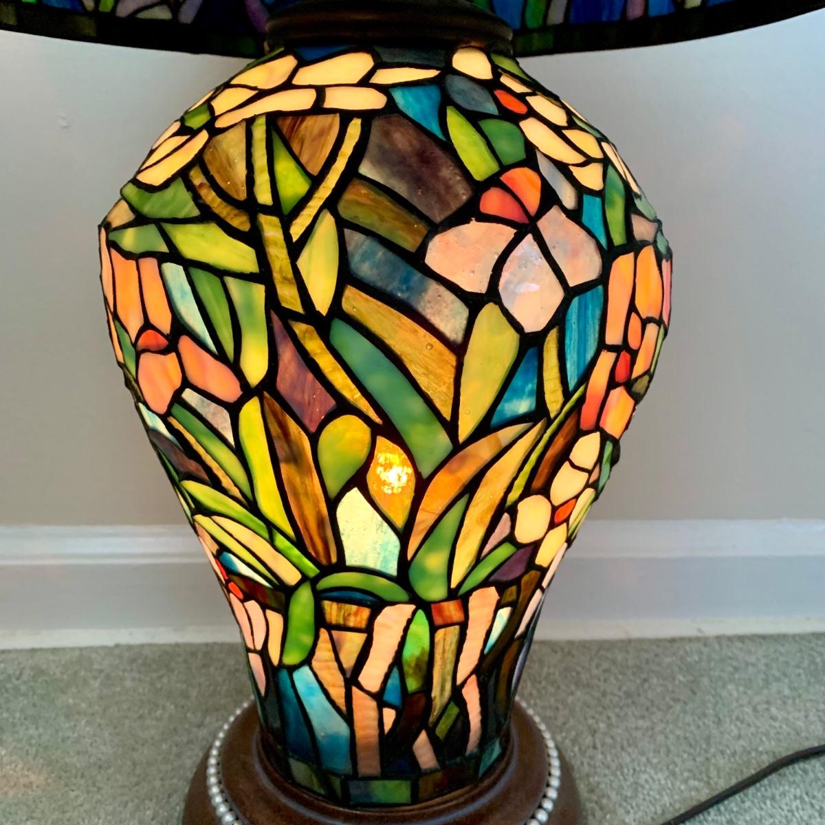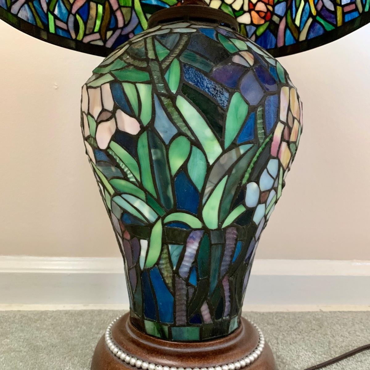 LOT 128 Z: Gorgeous Tiffany Style Floral Stained Glass (Shade & Body) Lamp 2006