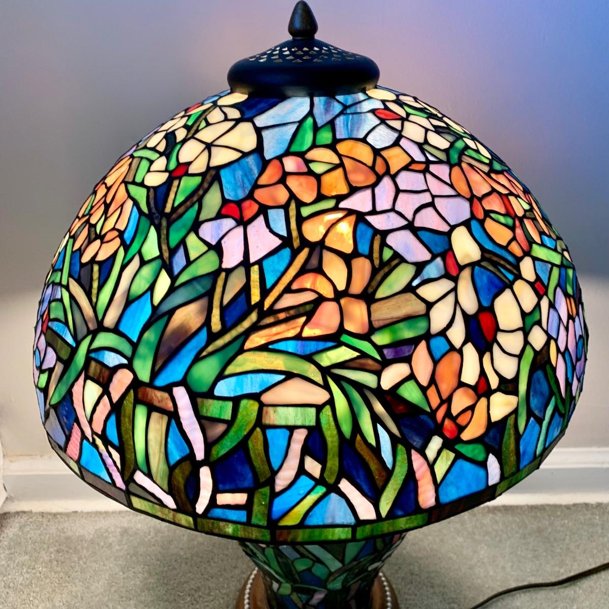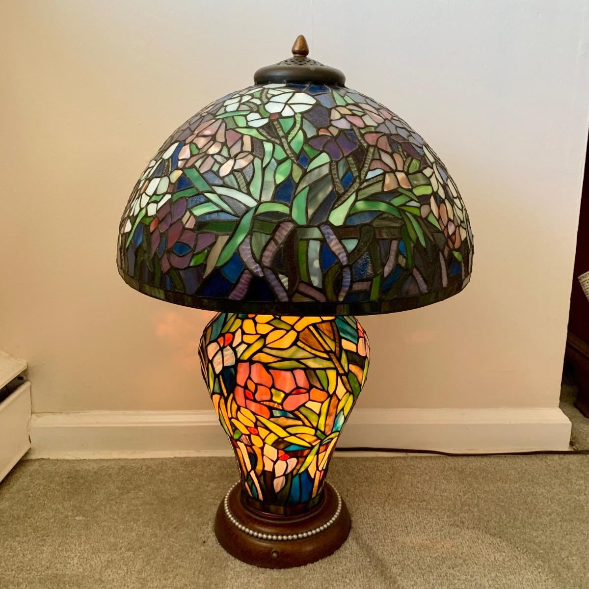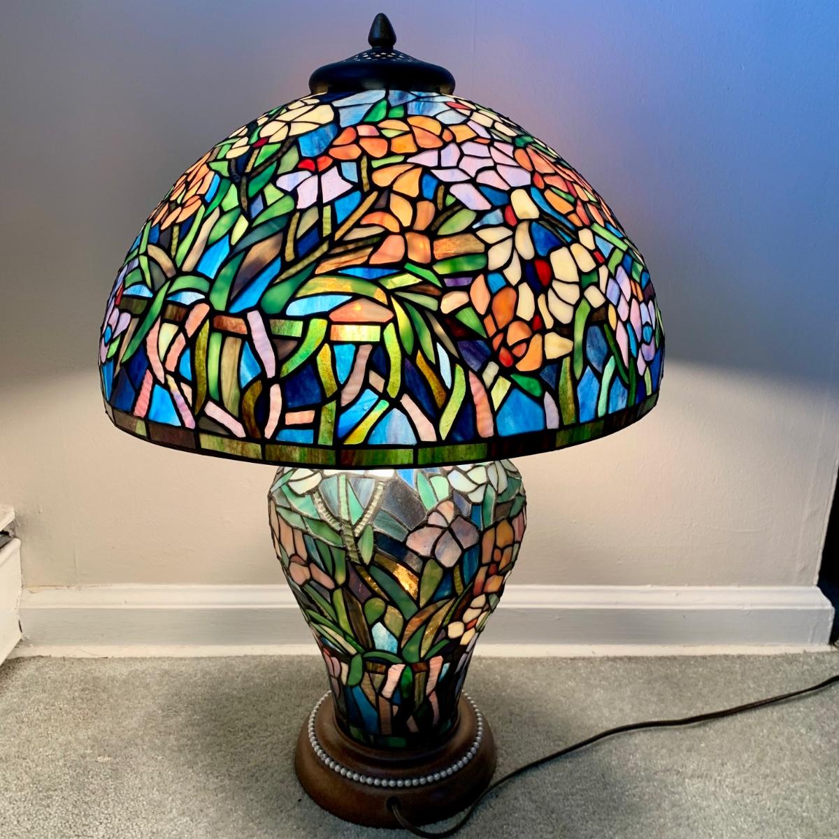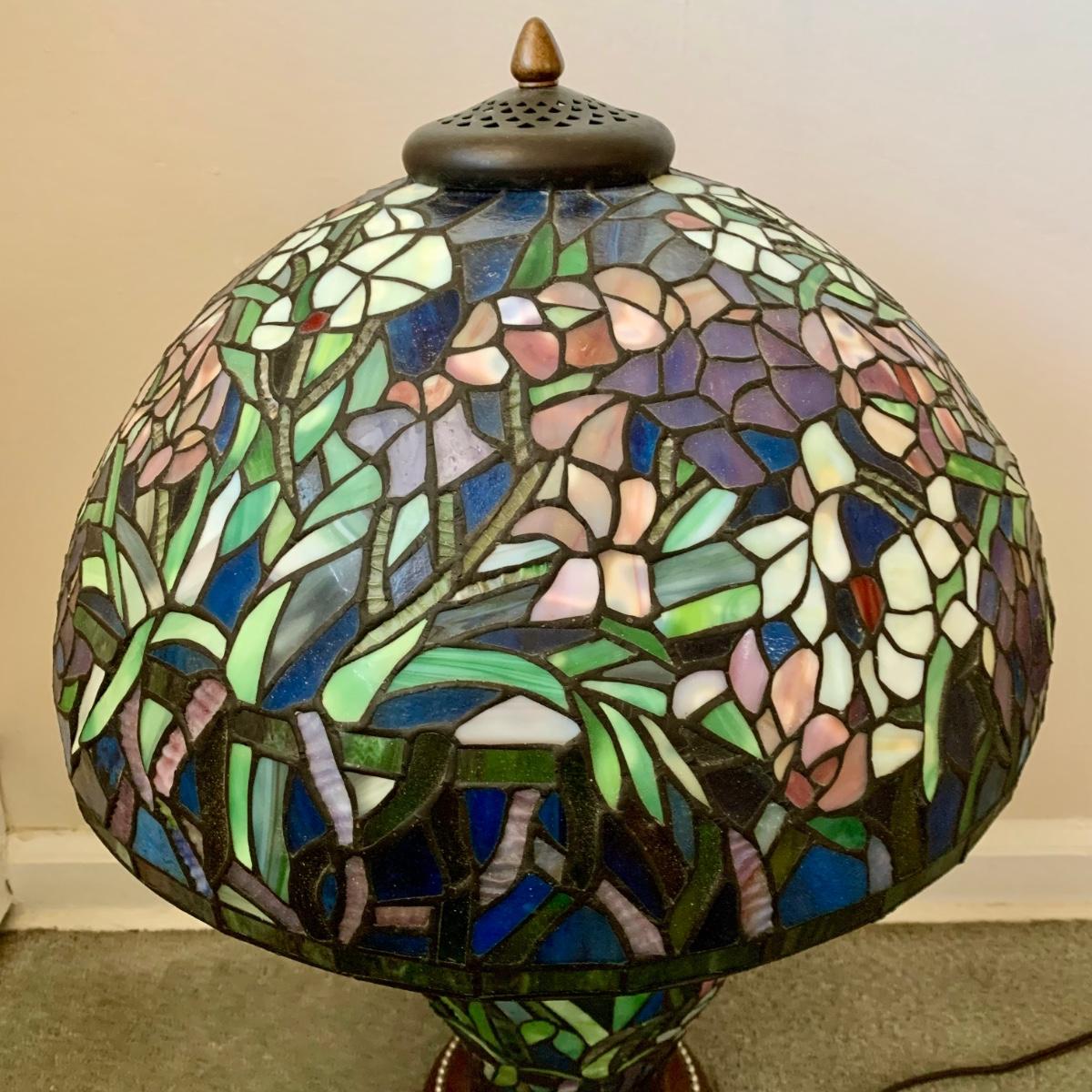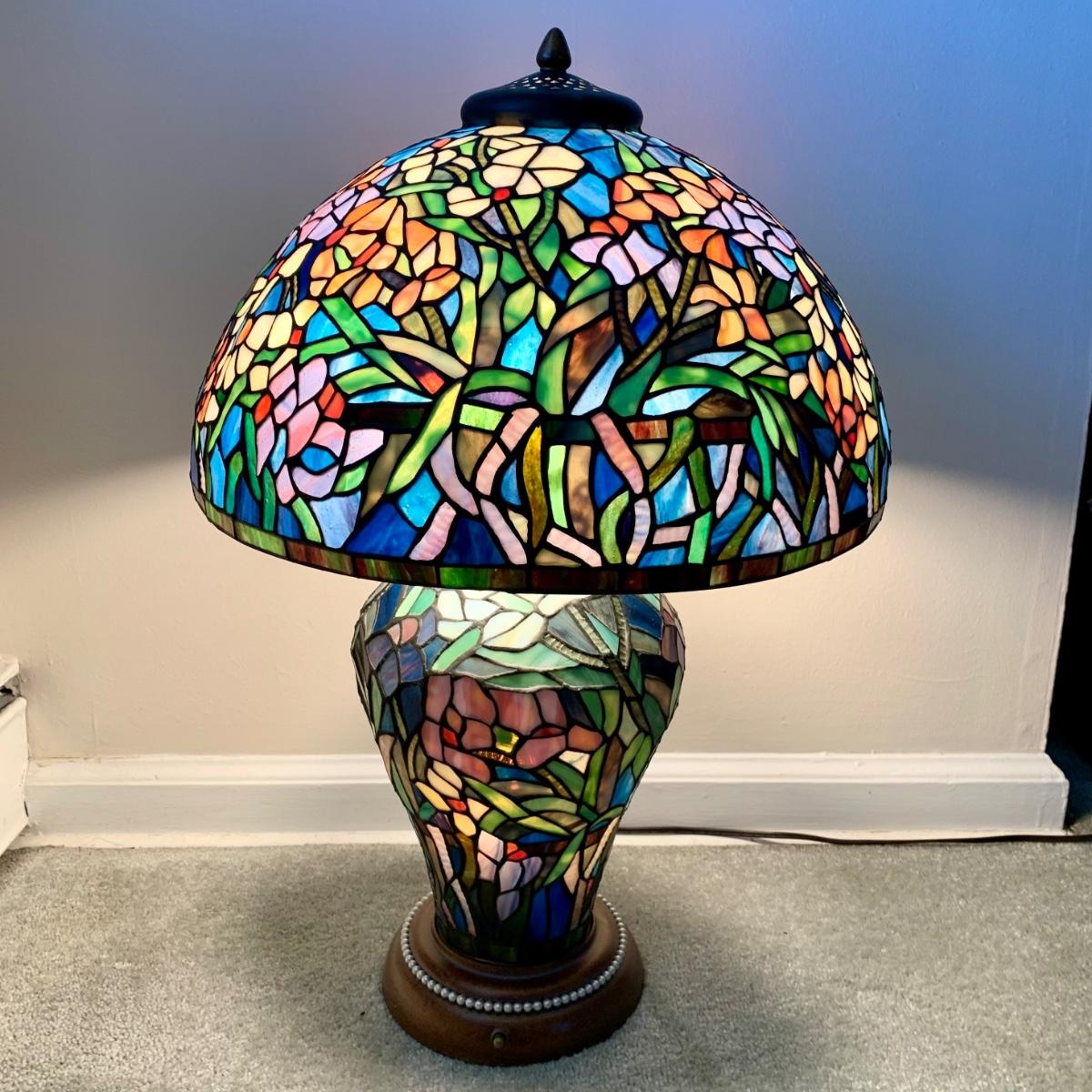 LOT 128 Z: Gorgeous Tiffany Style Floral Stained Glass (Shade & Body) Lamp 2006