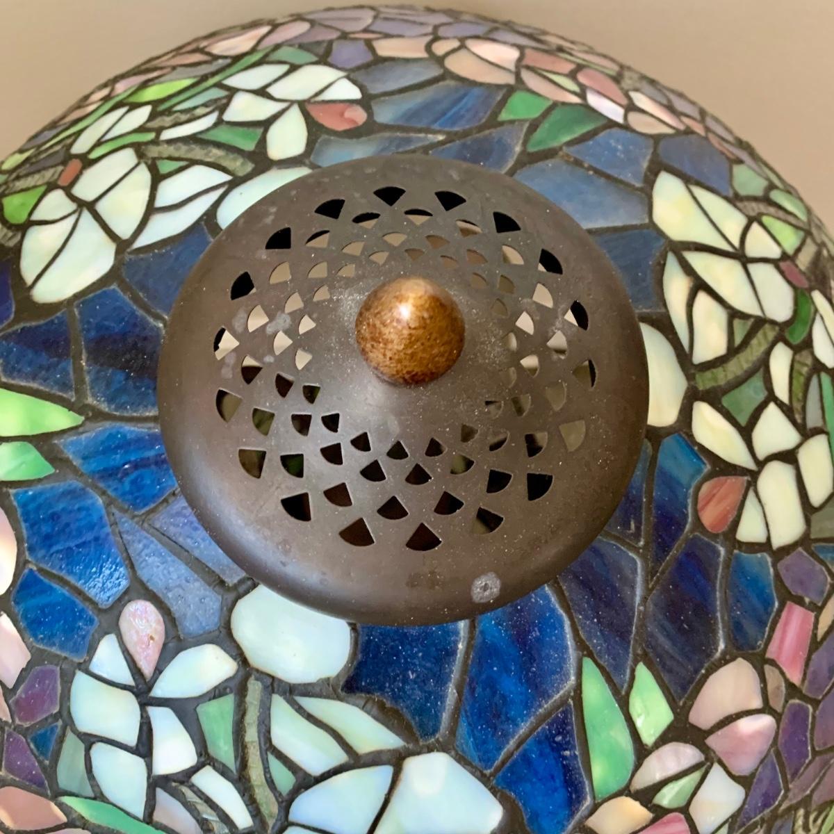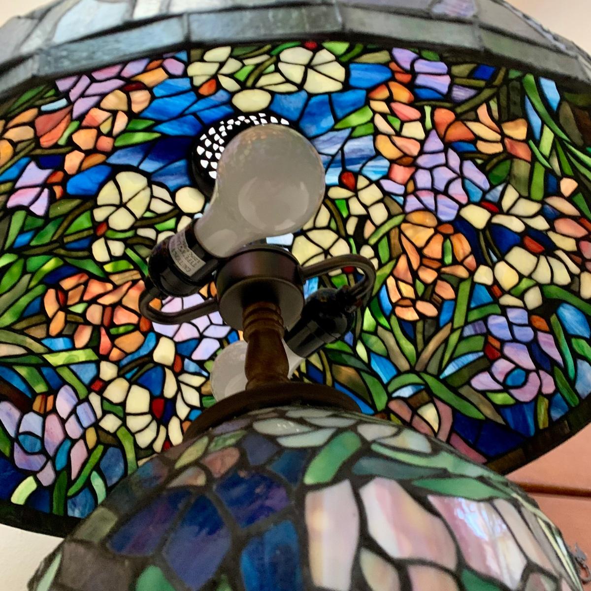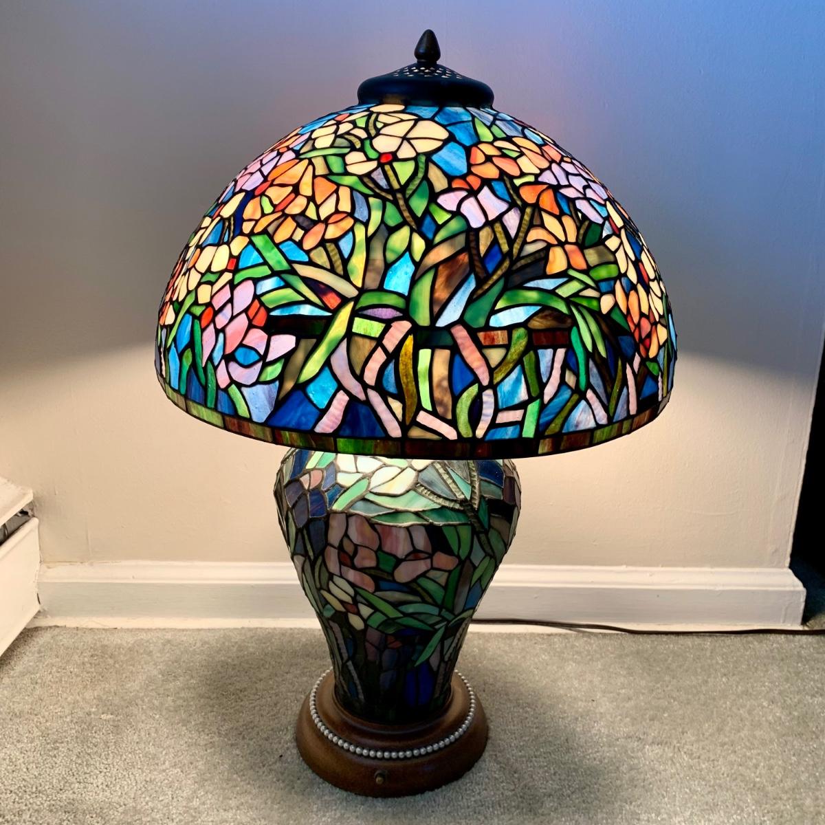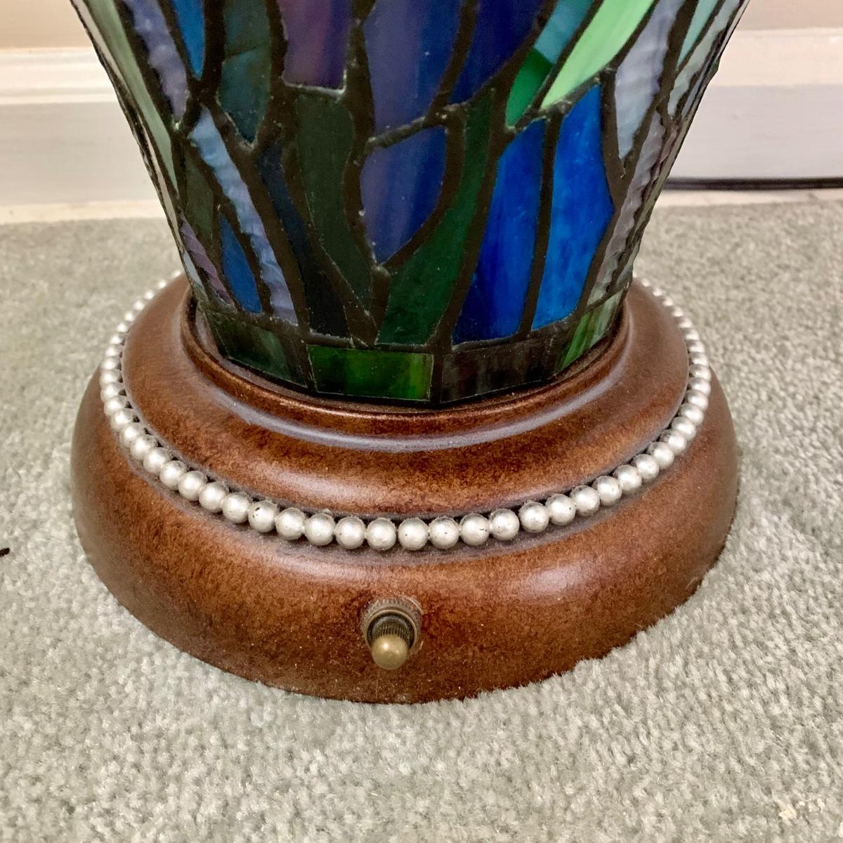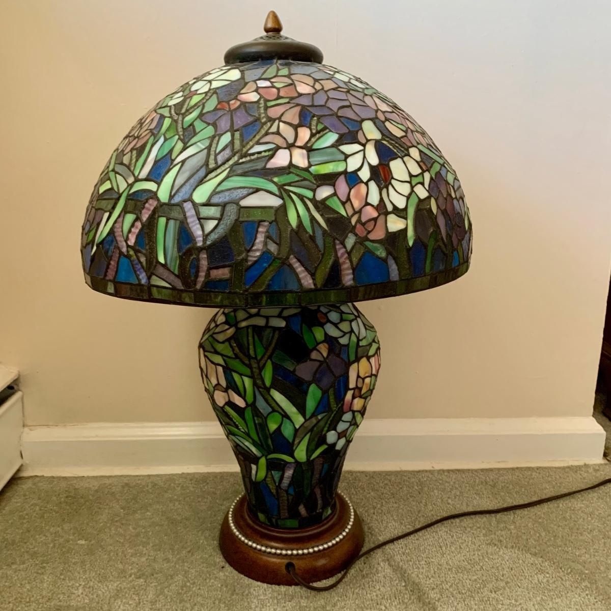 LOT 128 Z: Gorgeous Tiffany Style Floral Stained Glass (Shade & Body) Lamp 2006