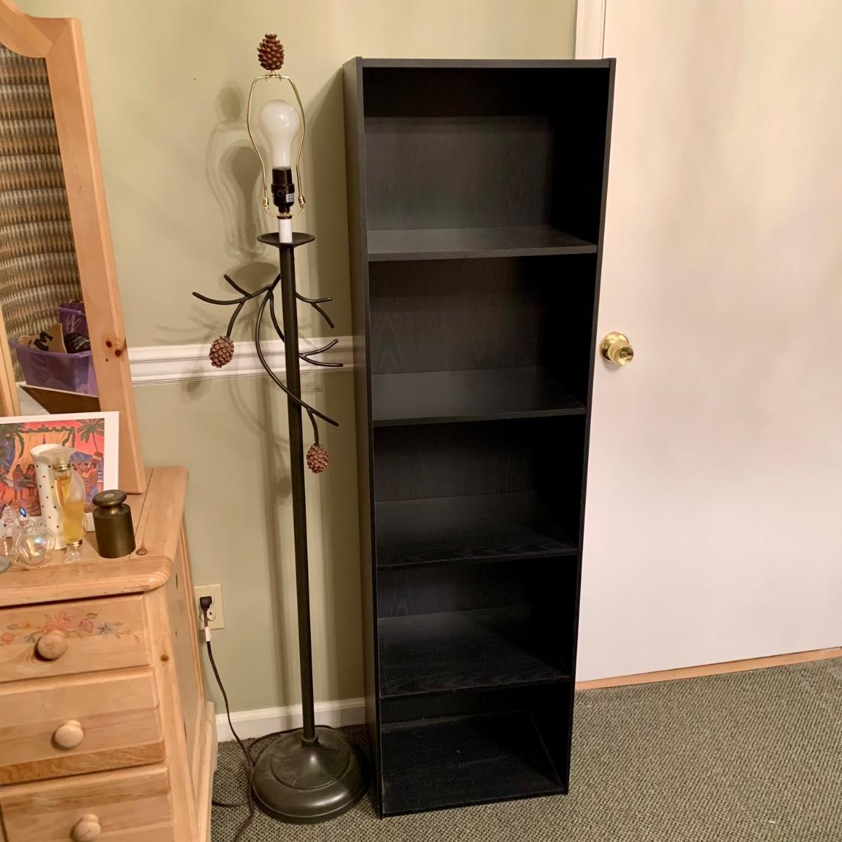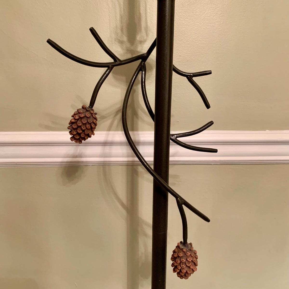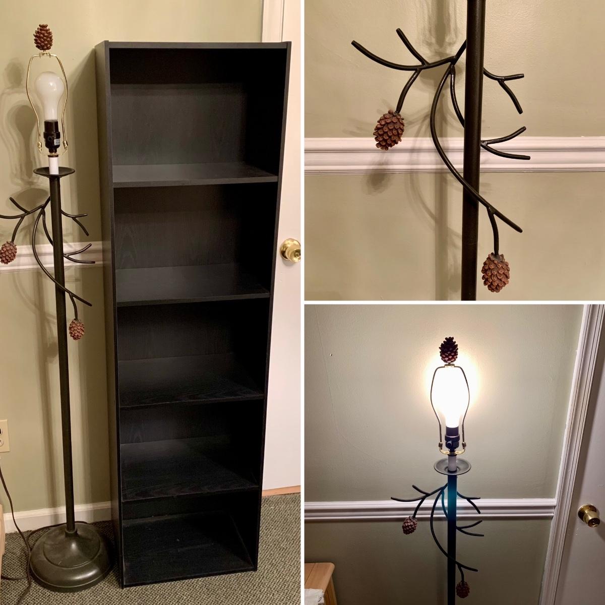 LOT 133 M: 5 Tier Shelving Unit & Petrloy Pine Cone Tree Branch 3 Light Settings Floor Lamp