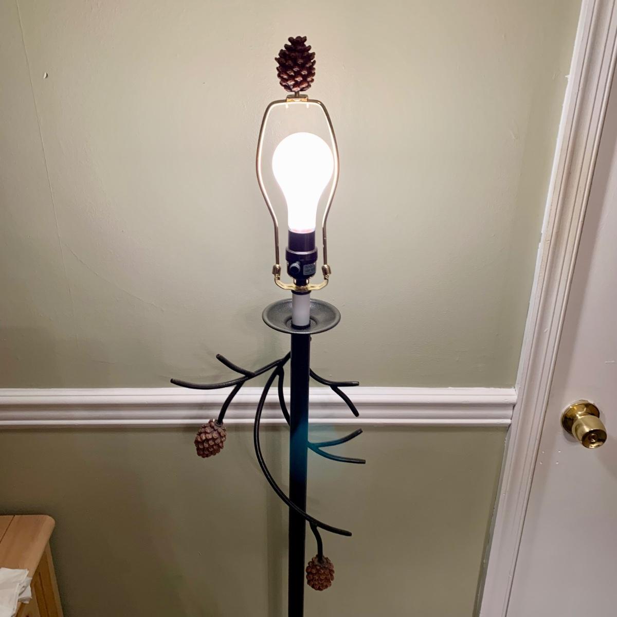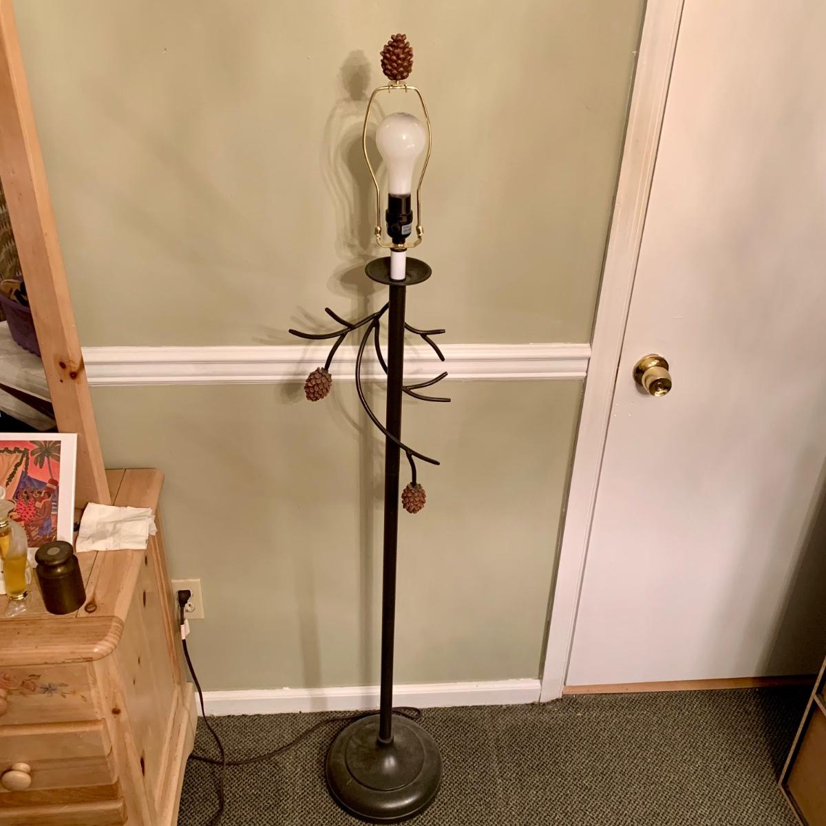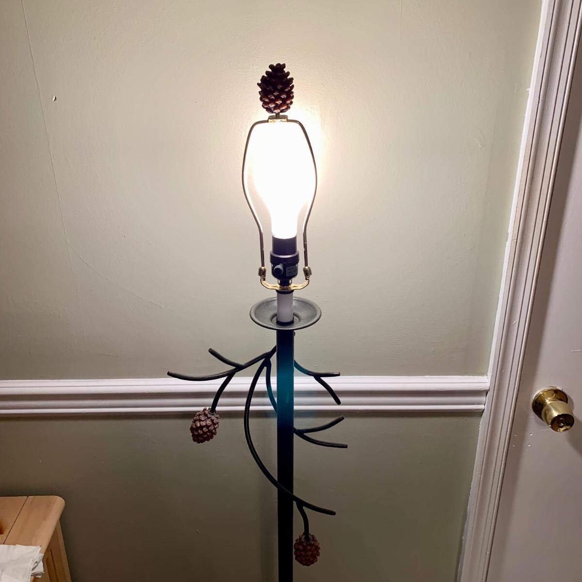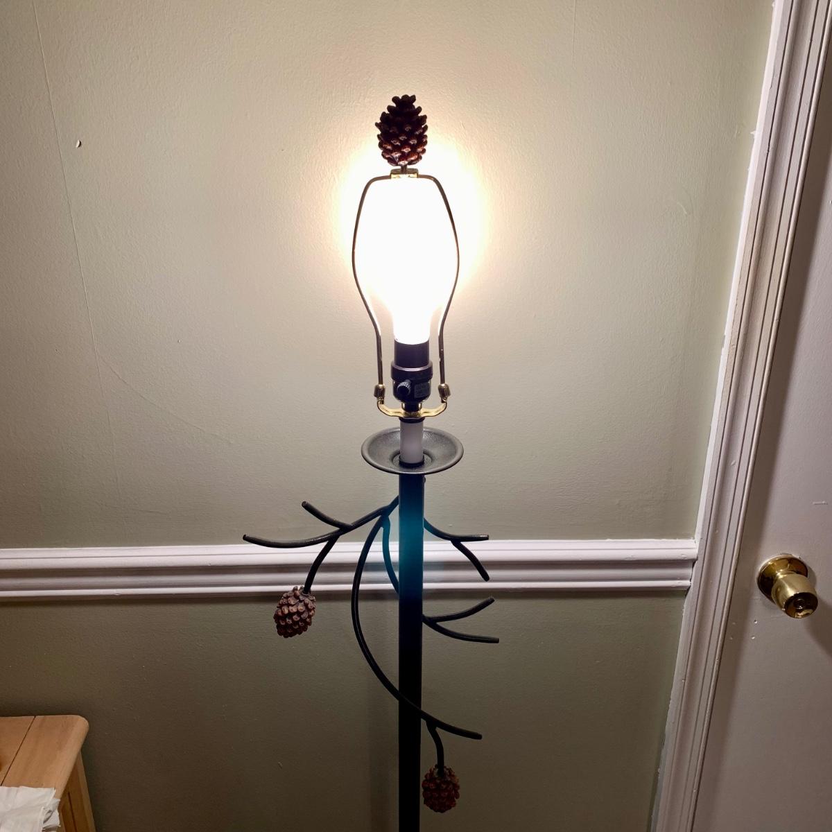 LOT 133 M: 5 Tier Shelving Unit & Petrloy Pine Cone Tree Branch 3 Light Settings Floor Lamp