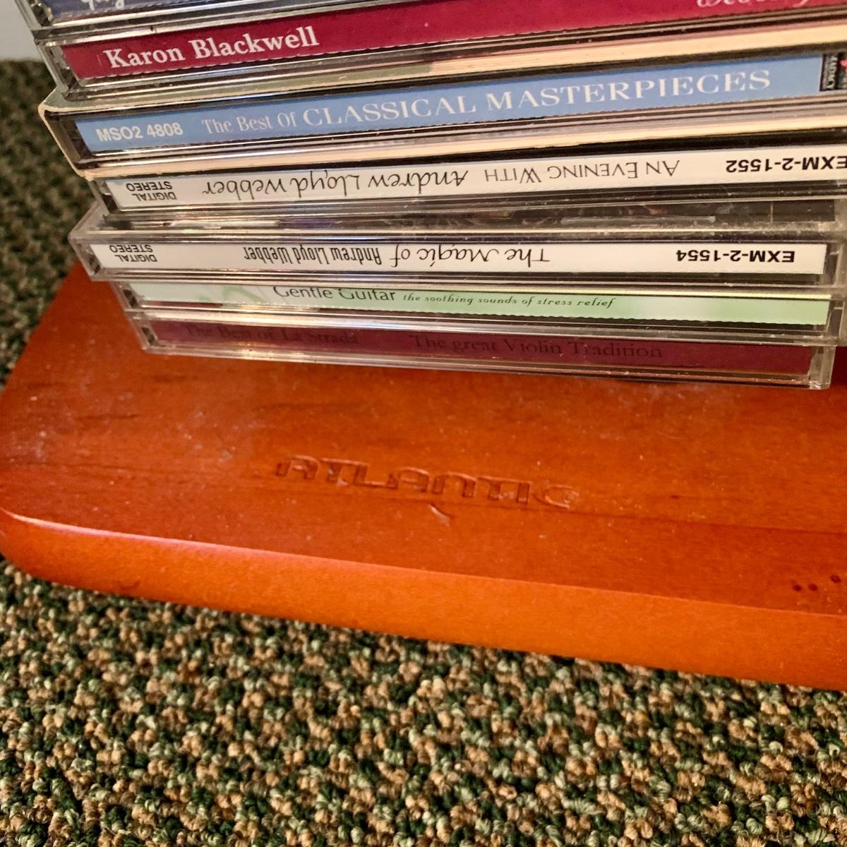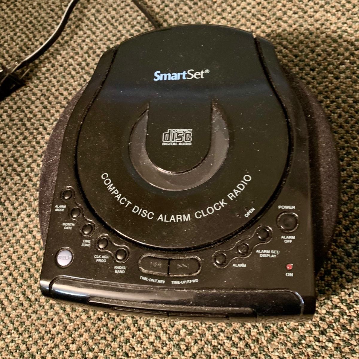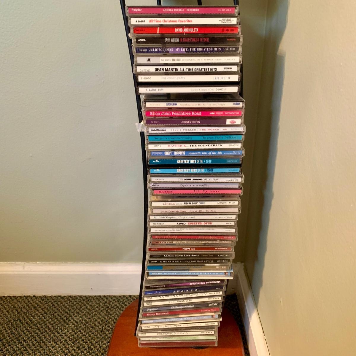 LOT 134 M: Emerson Smart Set CD Alarm Clock Model #CKD9917BK & Atlantic CD Floor Rack w/ CD's