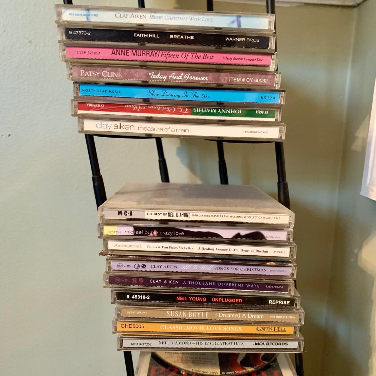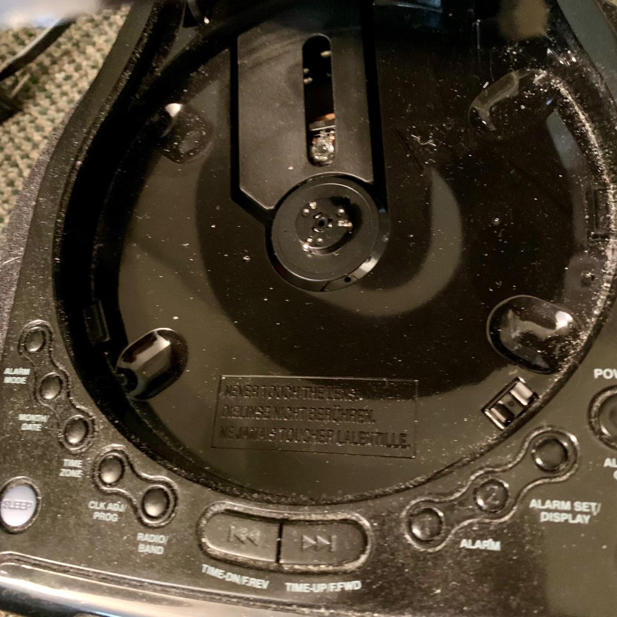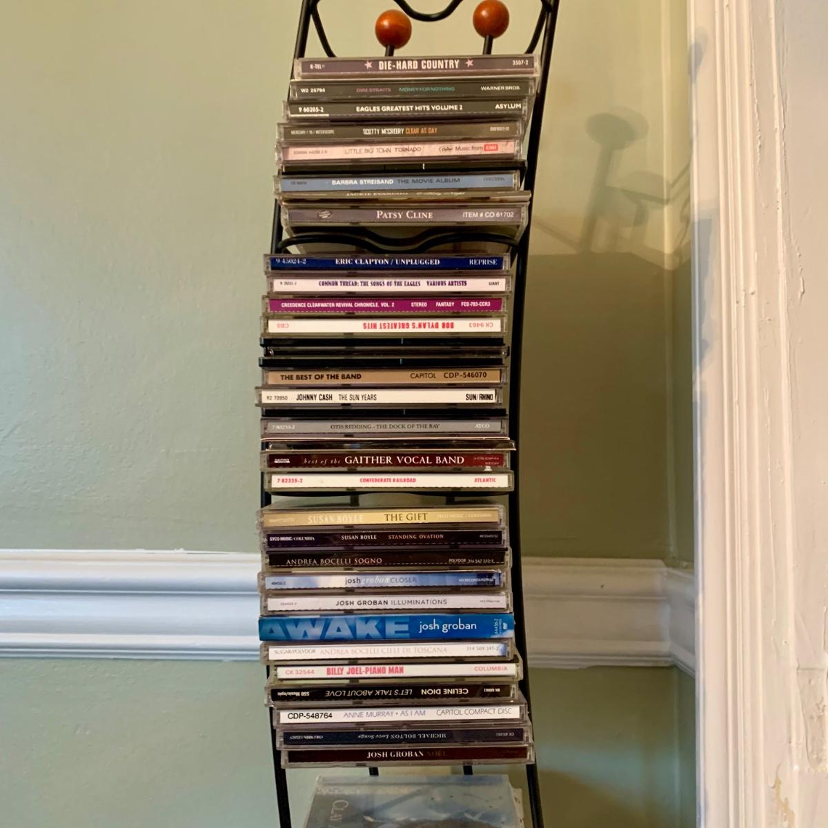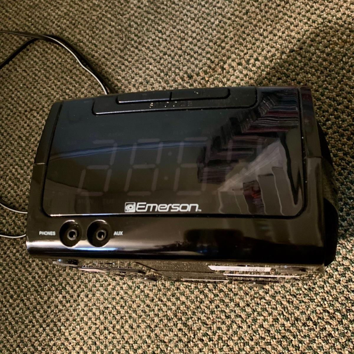 LOT 134 M: Emerson Smart Set CD Alarm Clock Model #CKD9917BK & Atlantic CD Floor Rack w/ CD's