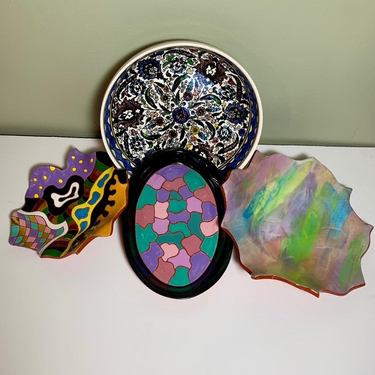 LOT 141 L: Colorful Eclectic Handmade Signed Pottery: Dishes / Trinket Bowls