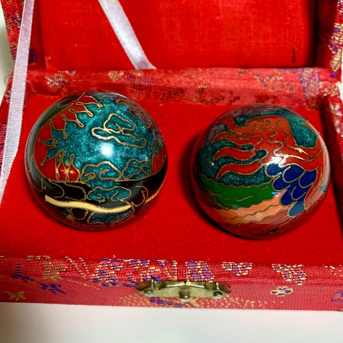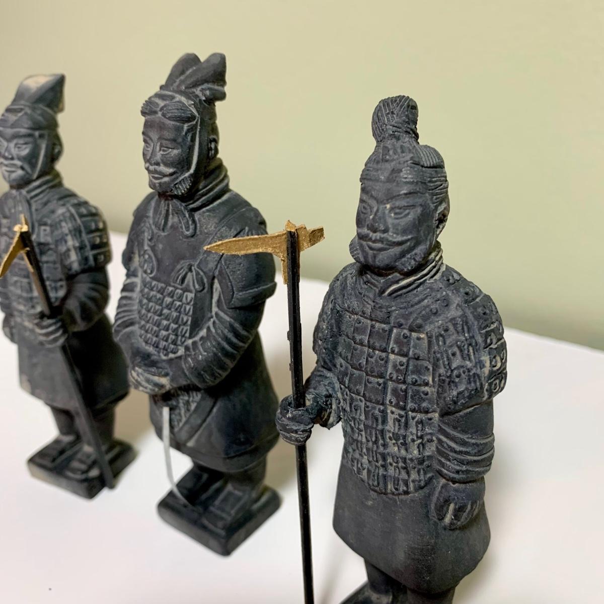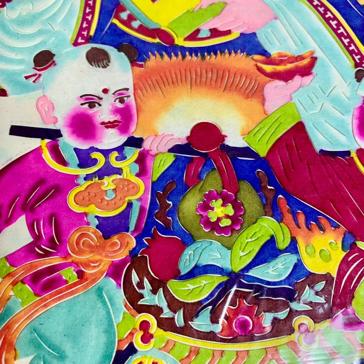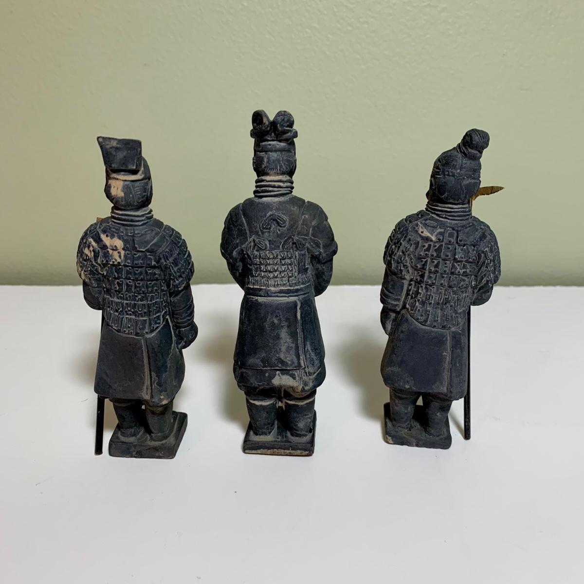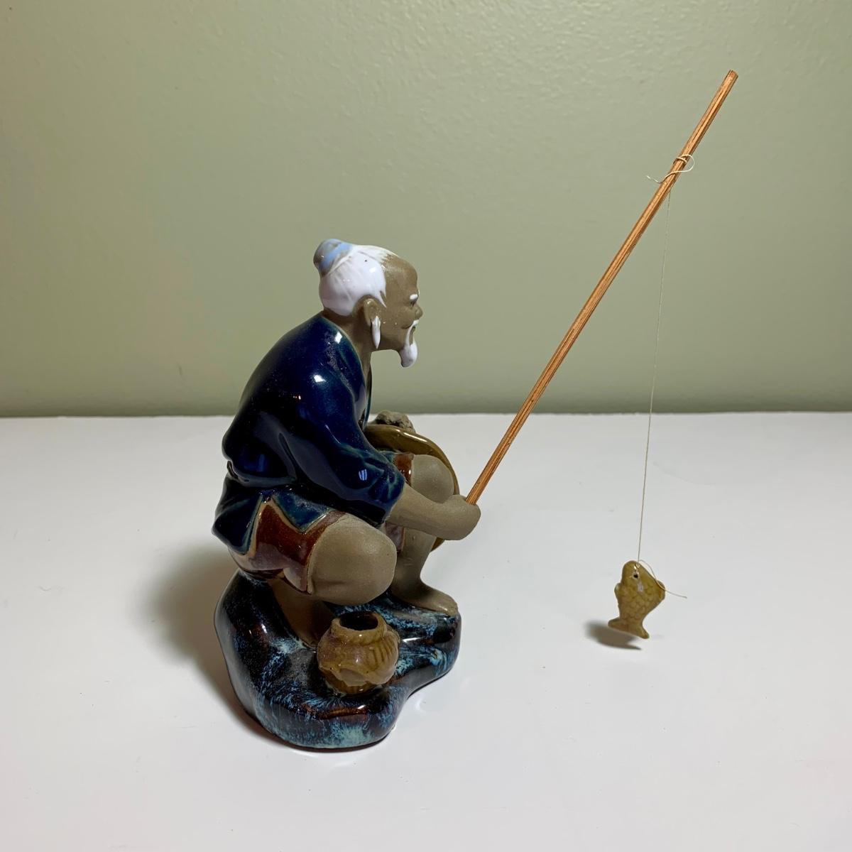 LOT 142 L: Vintage Chinese Collection: Mud Man Fisherman Ceramic Figurine, Set of 4 Handmade Paper craft Gods, Terracotta Soldier Figurines, Shouxing Baoding Enamel Dragon & Phoenix Balls