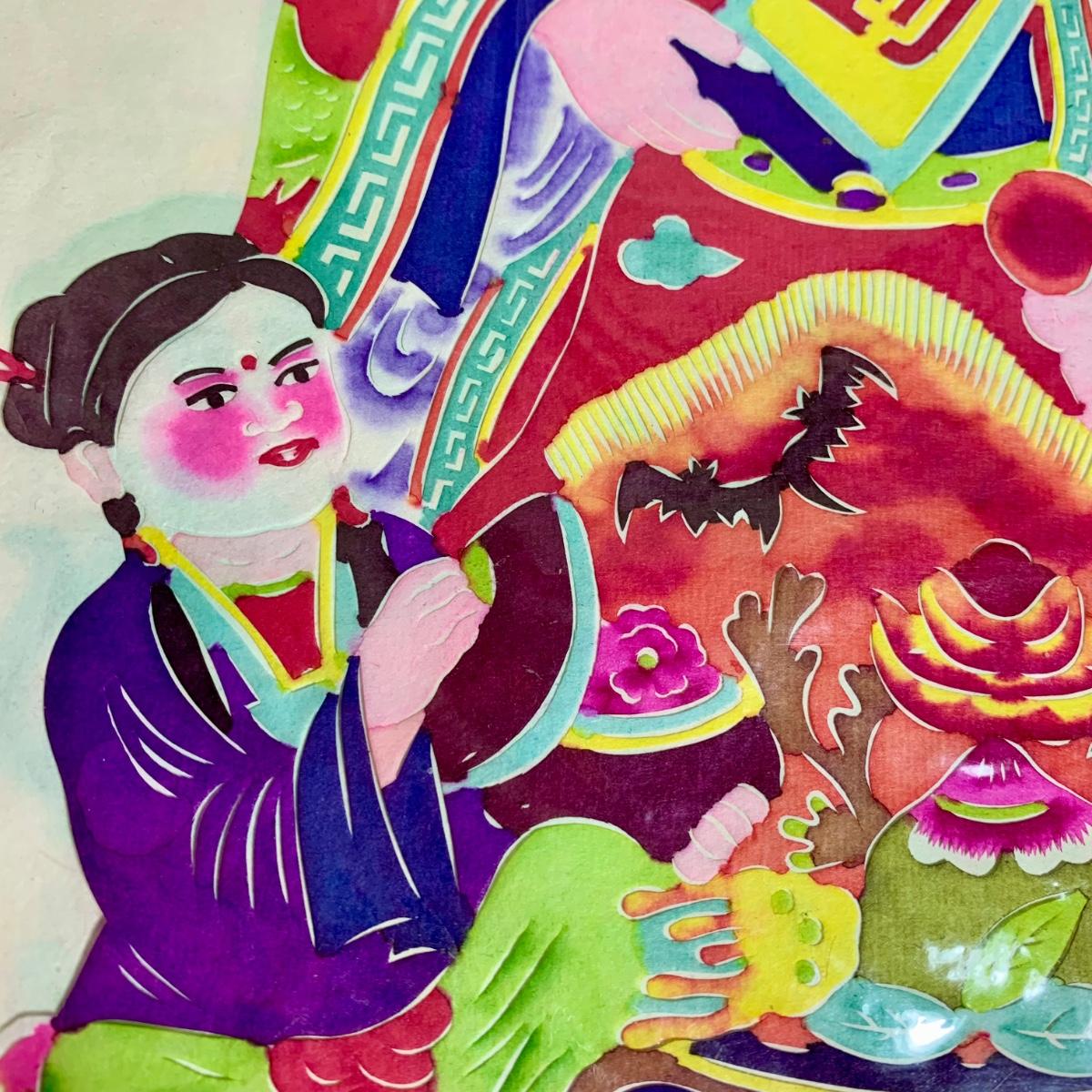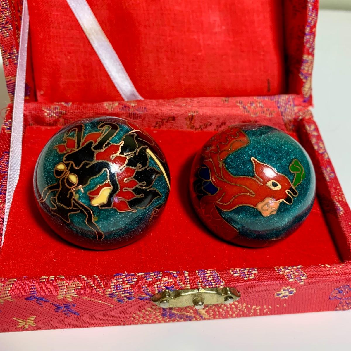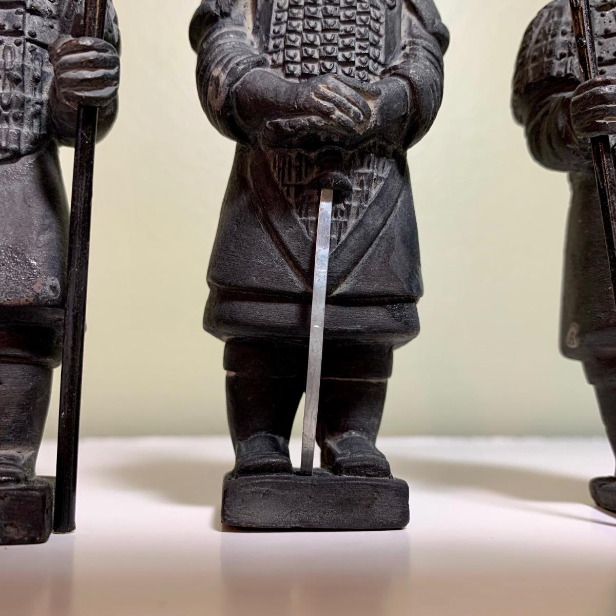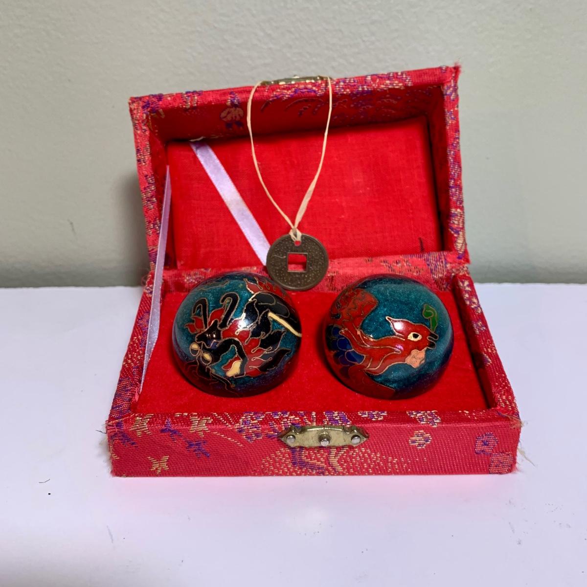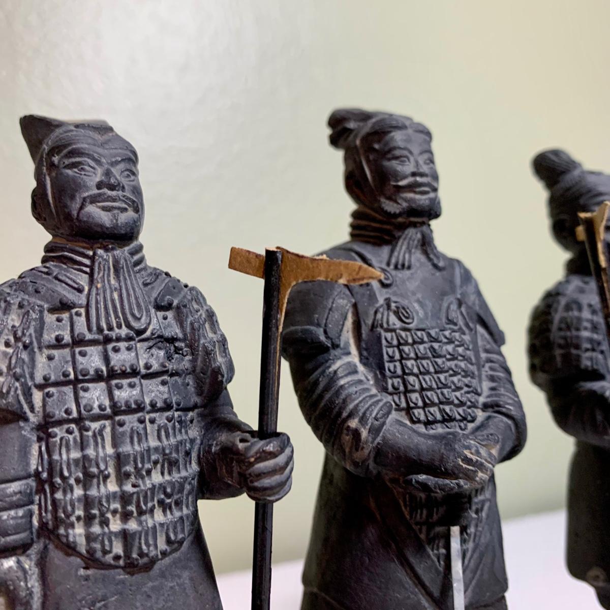 LOT 142 L: Vintage Chinese Collection: Mud Man Fisherman Ceramic Figurine, Set of 4 Handmade Paper craft Gods, Terracotta Soldier Figurines, Shouxing Baoding Enamel Dragon & Phoenix Balls