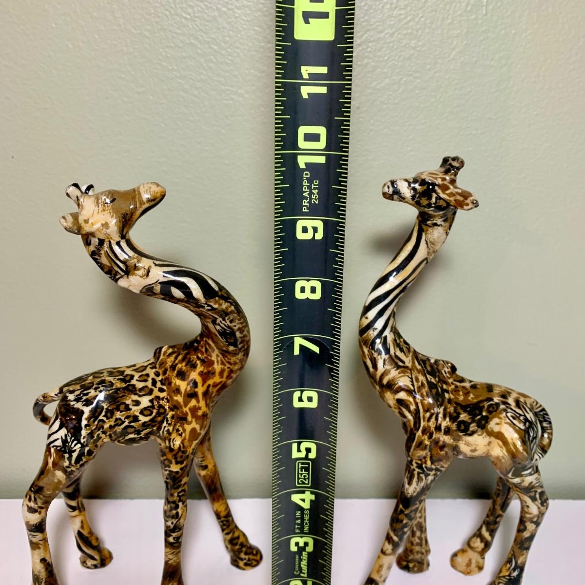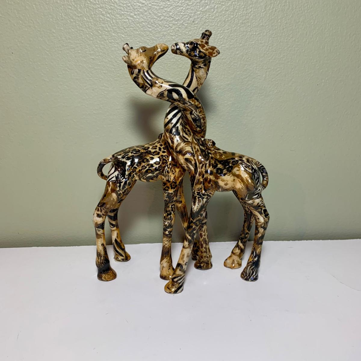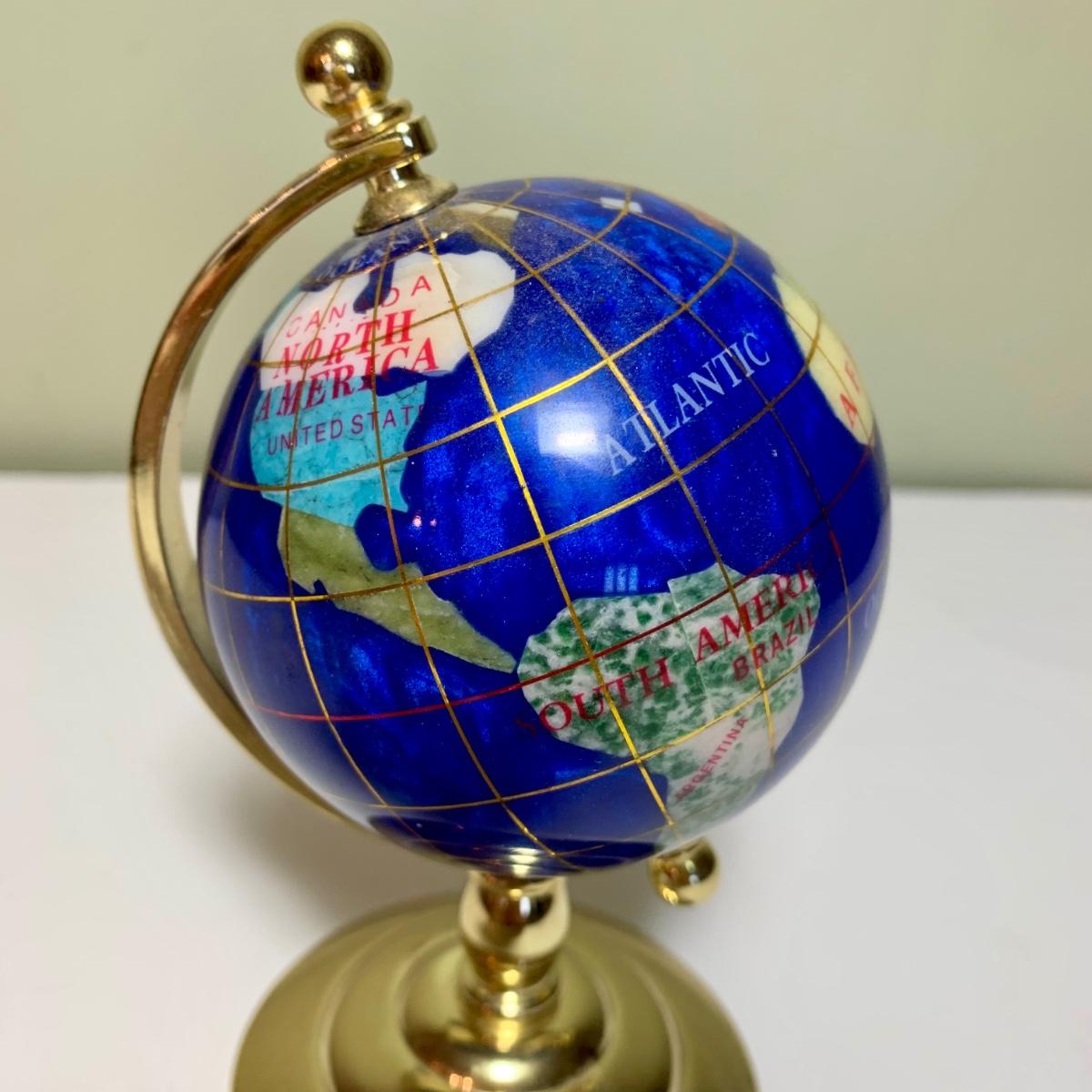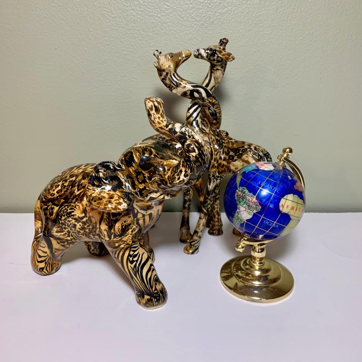 LOT 143 L: Vintage La Vie Kissing Giraffes & Elephant w/ Small Inlaid Gemstone / Precious Stone Globe