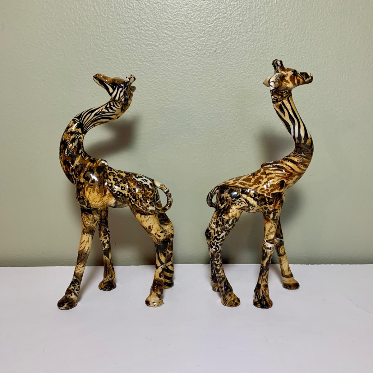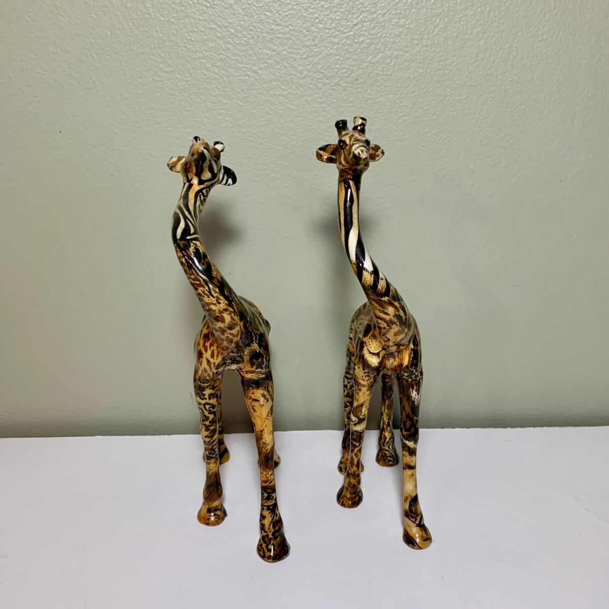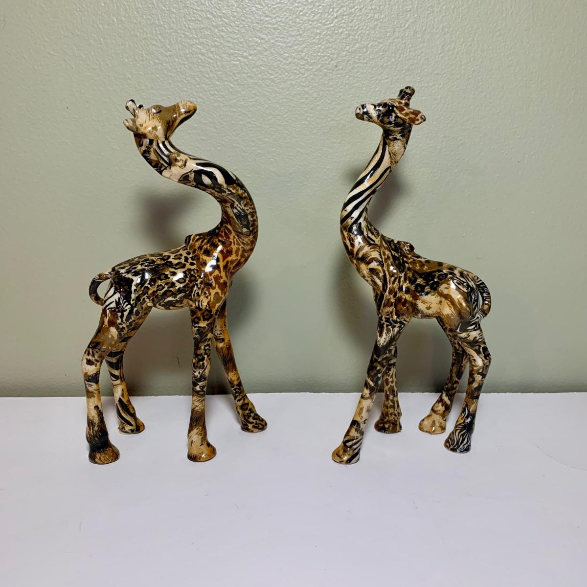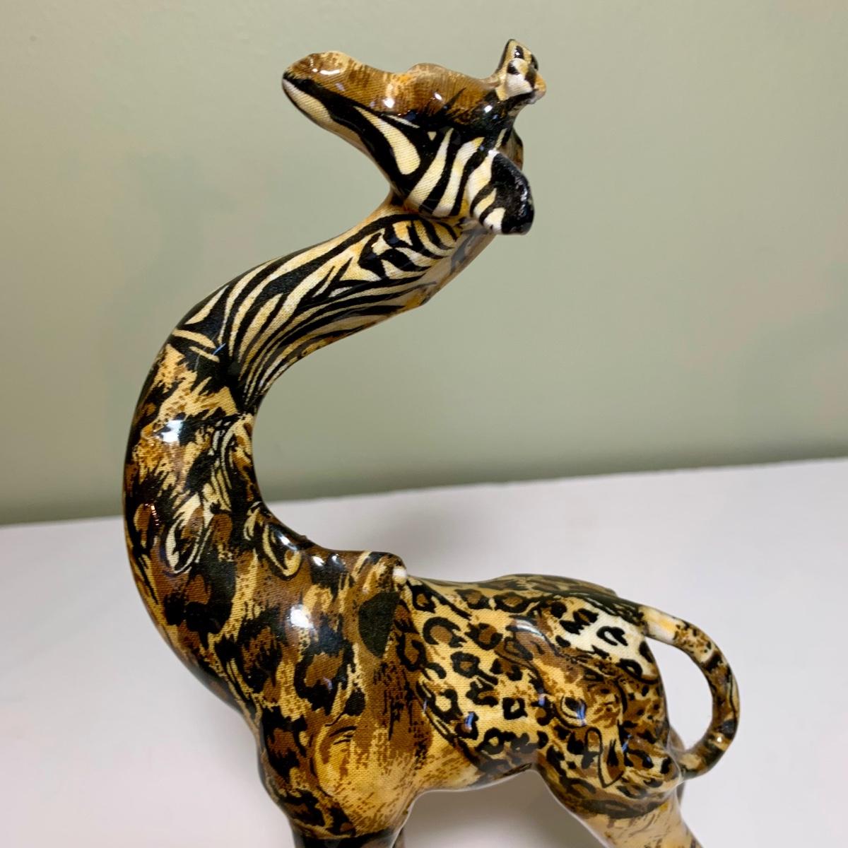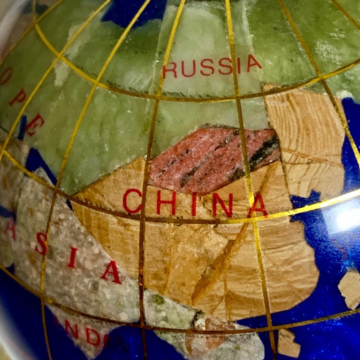 LOT 143 L: Vintage La Vie Kissing Giraffes & Elephant w/ Small Inlaid Gemstone / Precious Stone Globe