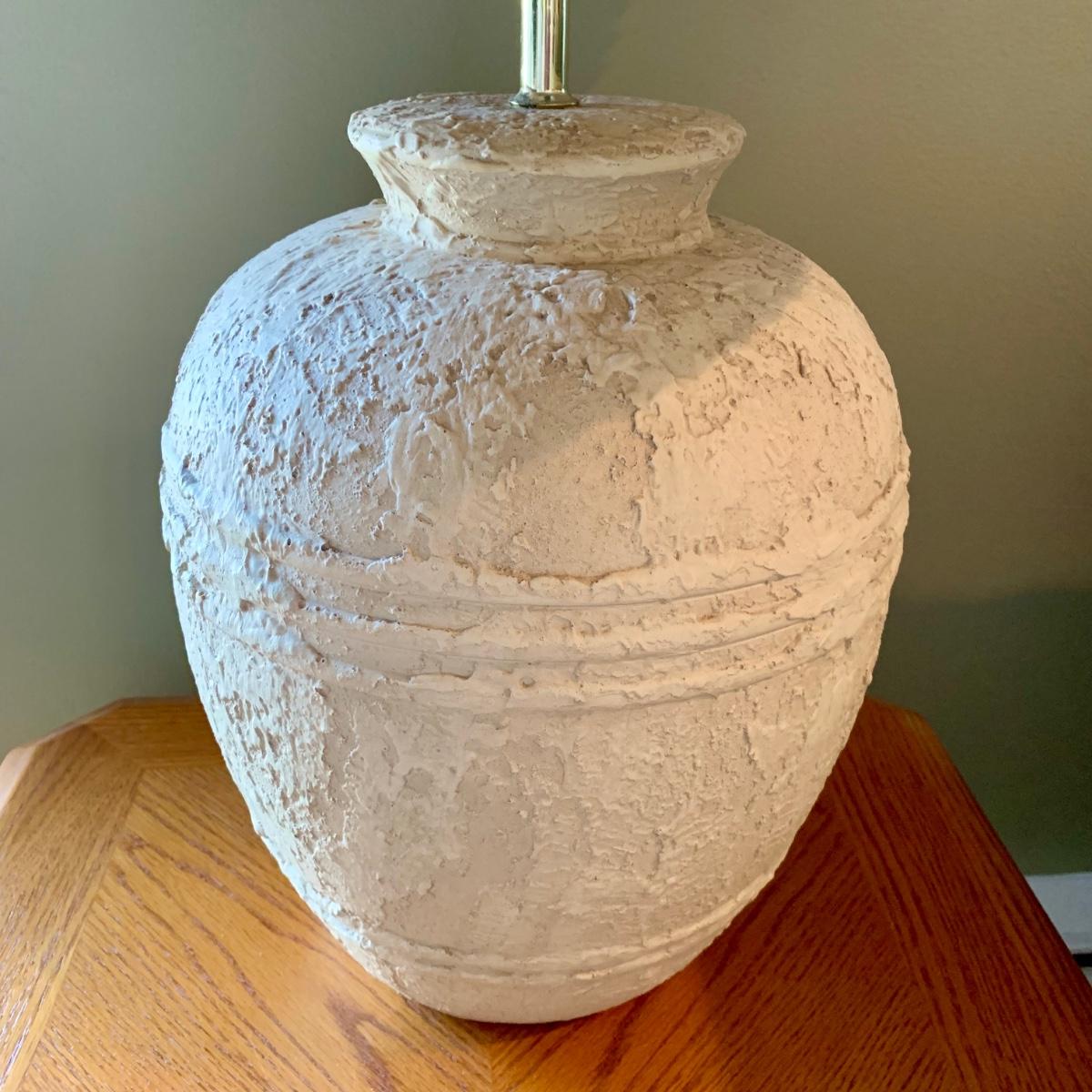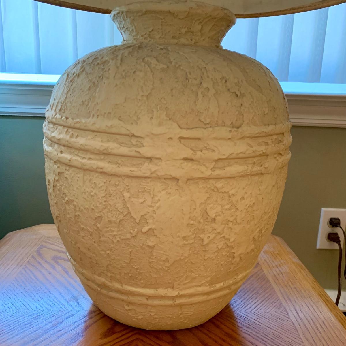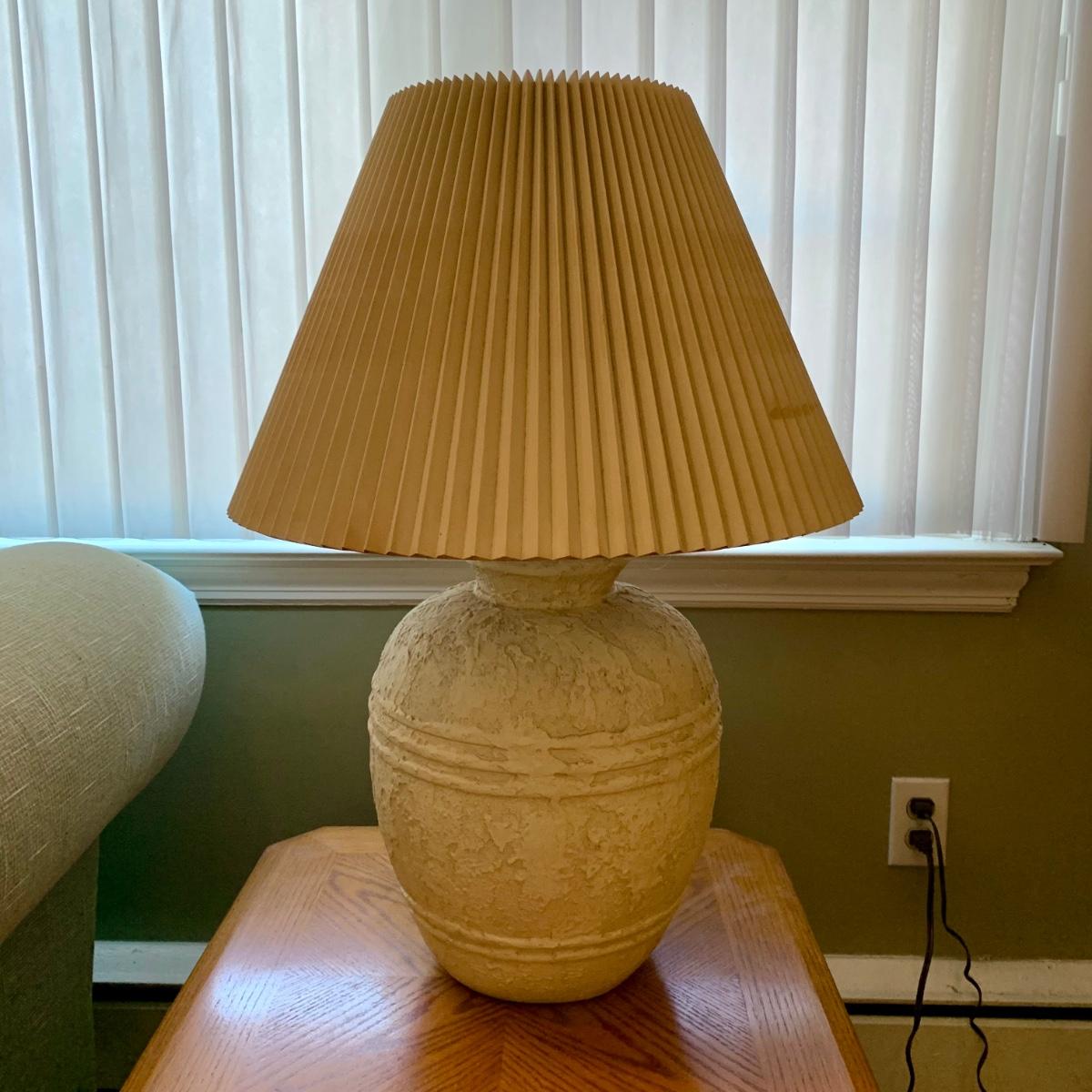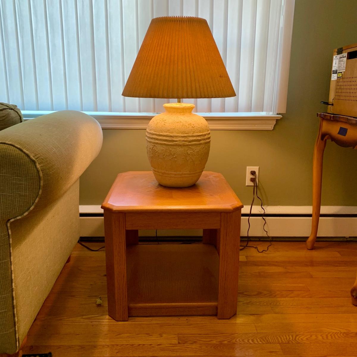 LOT 147 L: 1980's Textured Plaster Lamps & 2 1990's Oak End / Side Tables