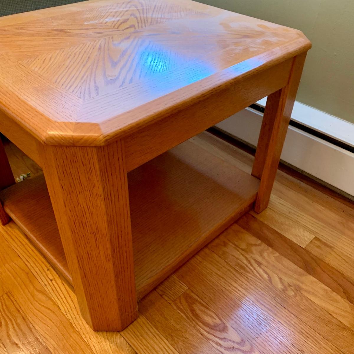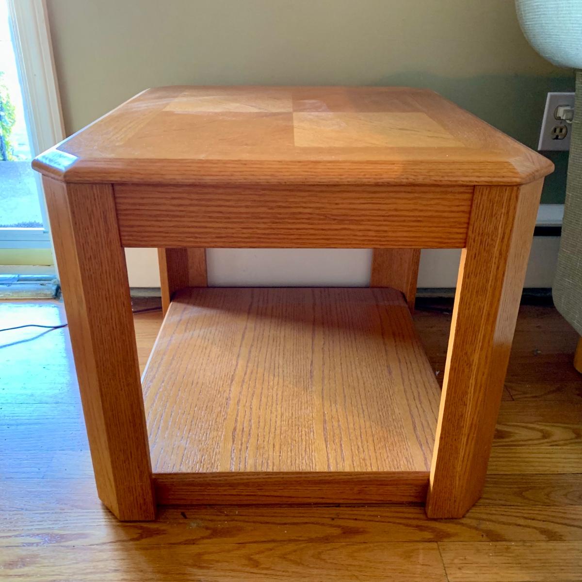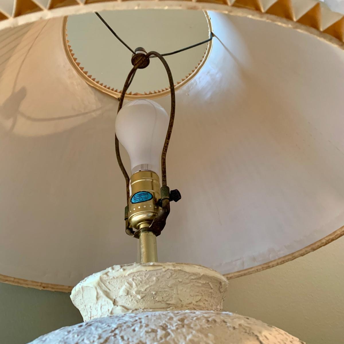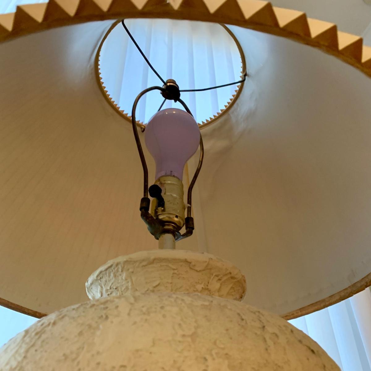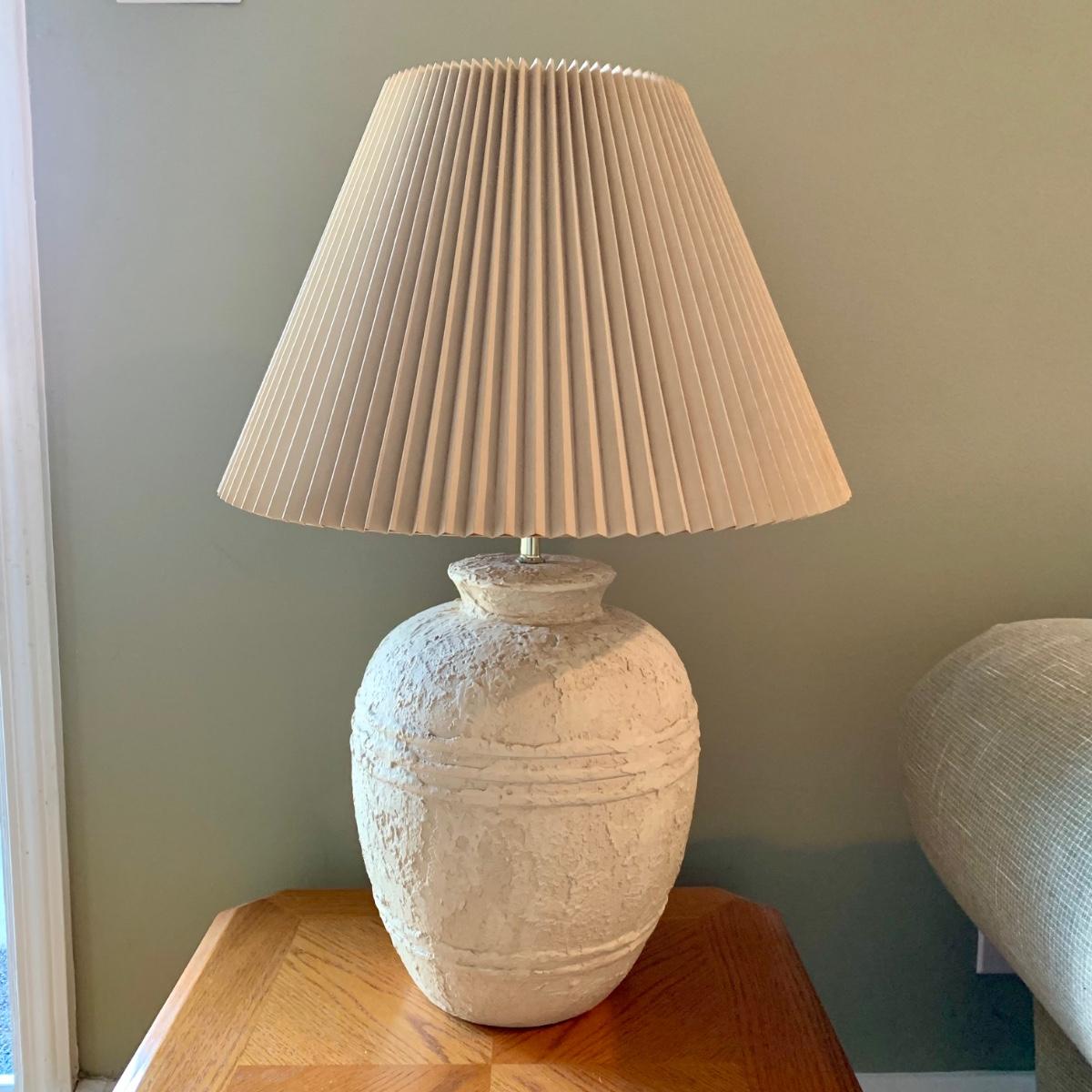 LOT 147 L: 1980's Textured Plaster Lamps & 2 1990's Oak End / Side Tables