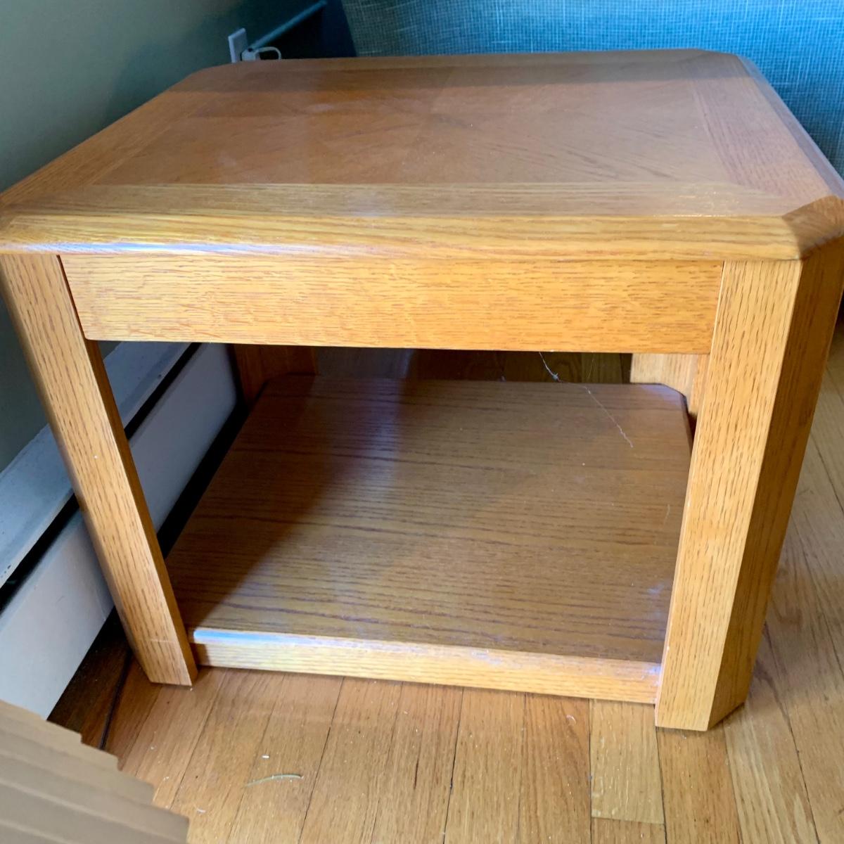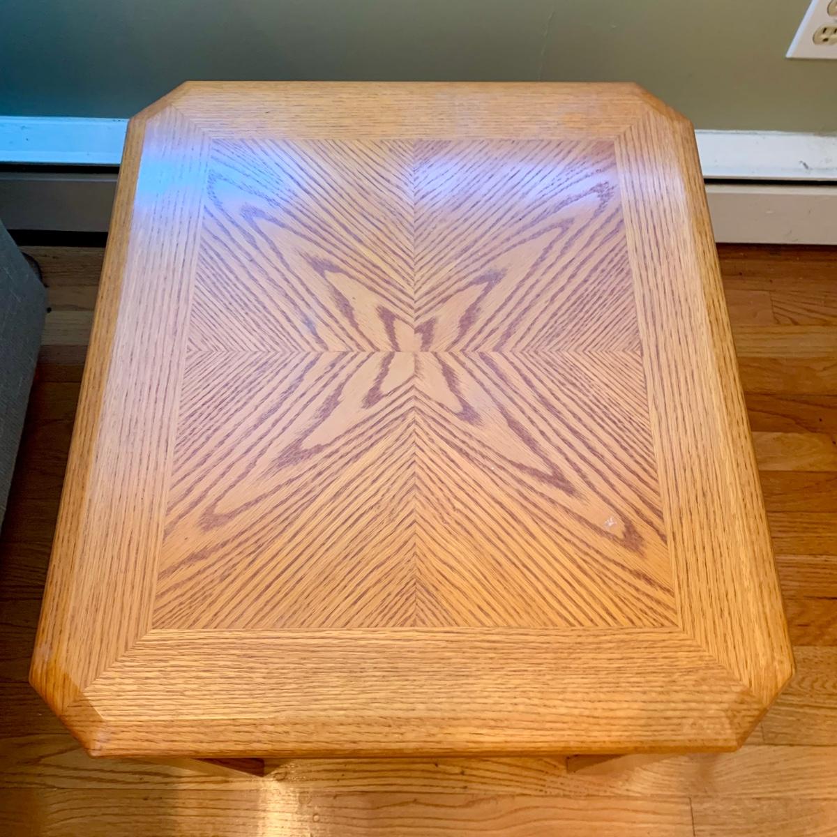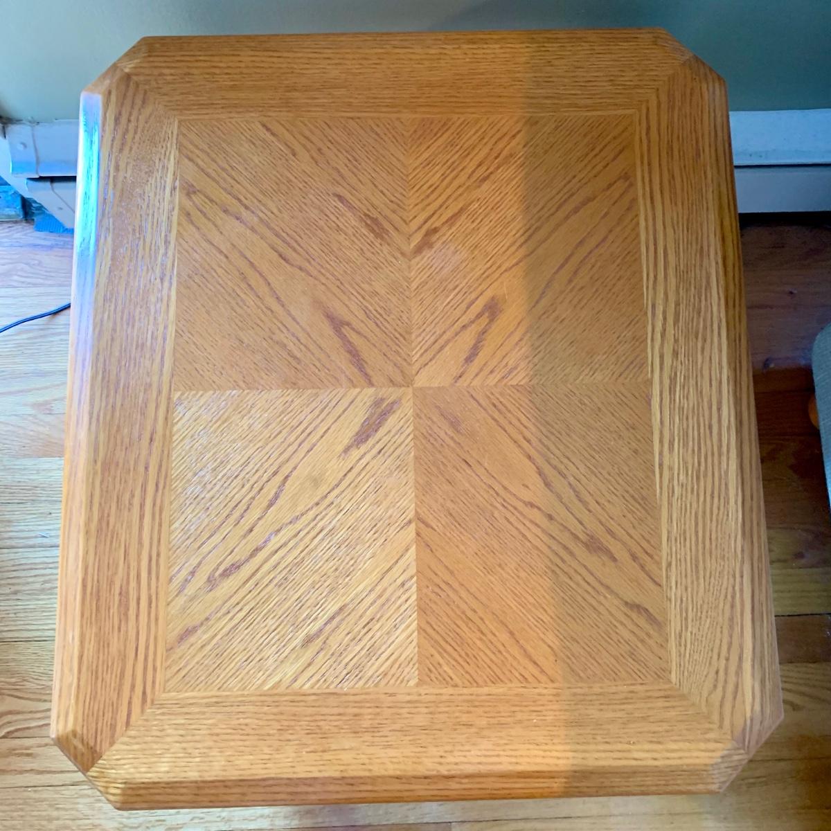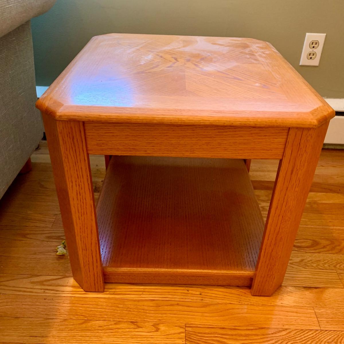 LOT 147 L: 1980's Textured Plaster Lamps & 2 1990's Oak End / Side Tables