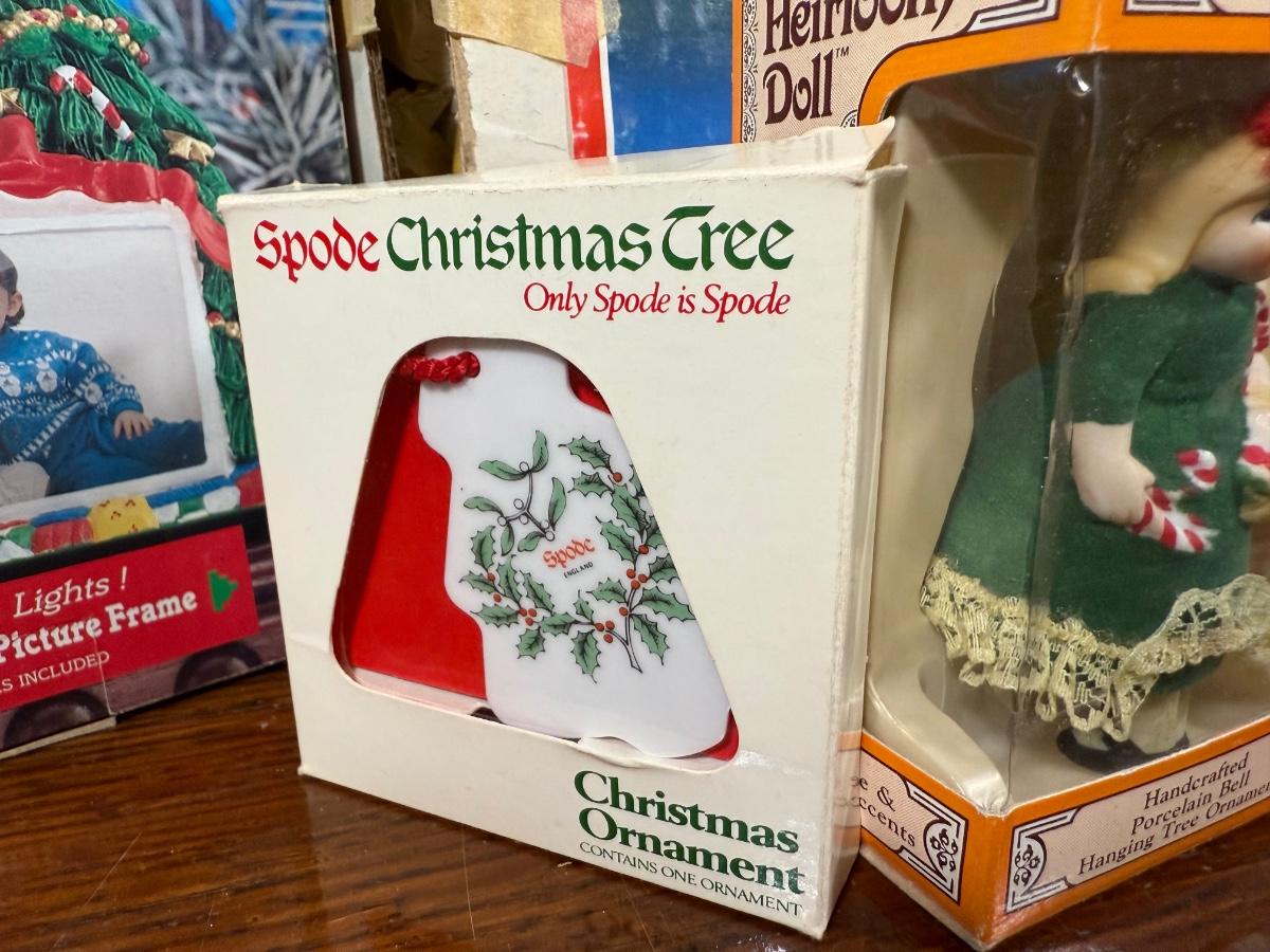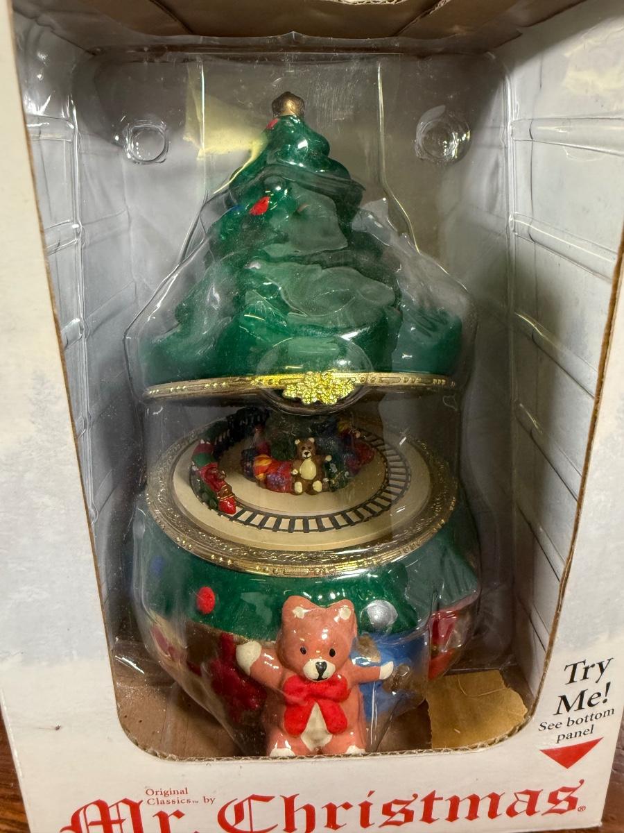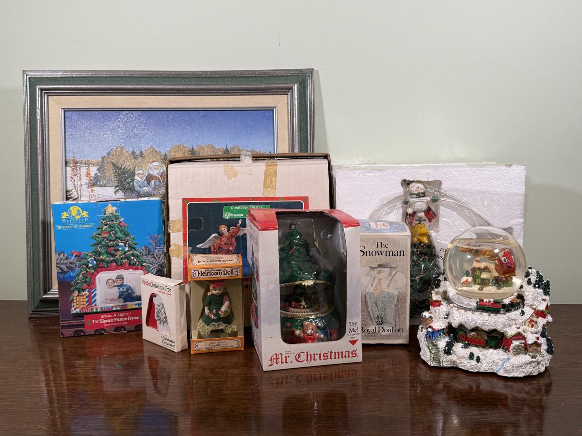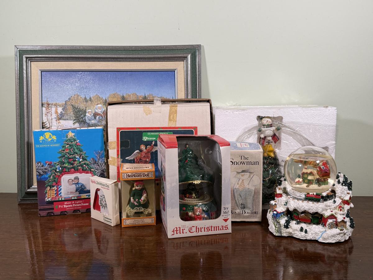 LOT 161B: Christmas Decor Collection - NIB Mr Christmas Tree Porcelain Music Box, Spode Ornament, Royal Doulton The Snowman w/ Box & More