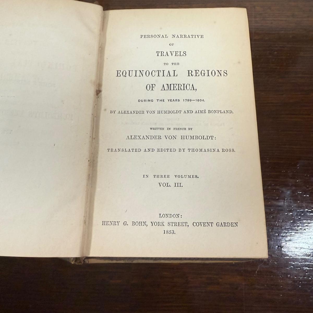1853 Personal Narrative of Travels to the Equinoctial Regions of America 1799-1804 by Alexander von Humboldt & Aimé Bonpland