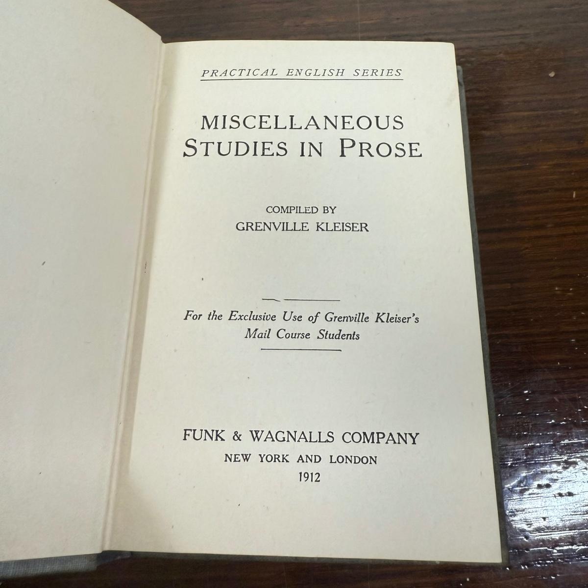 1912 Miscellaneous Studies in Prose compiled by Grenville Kleiser