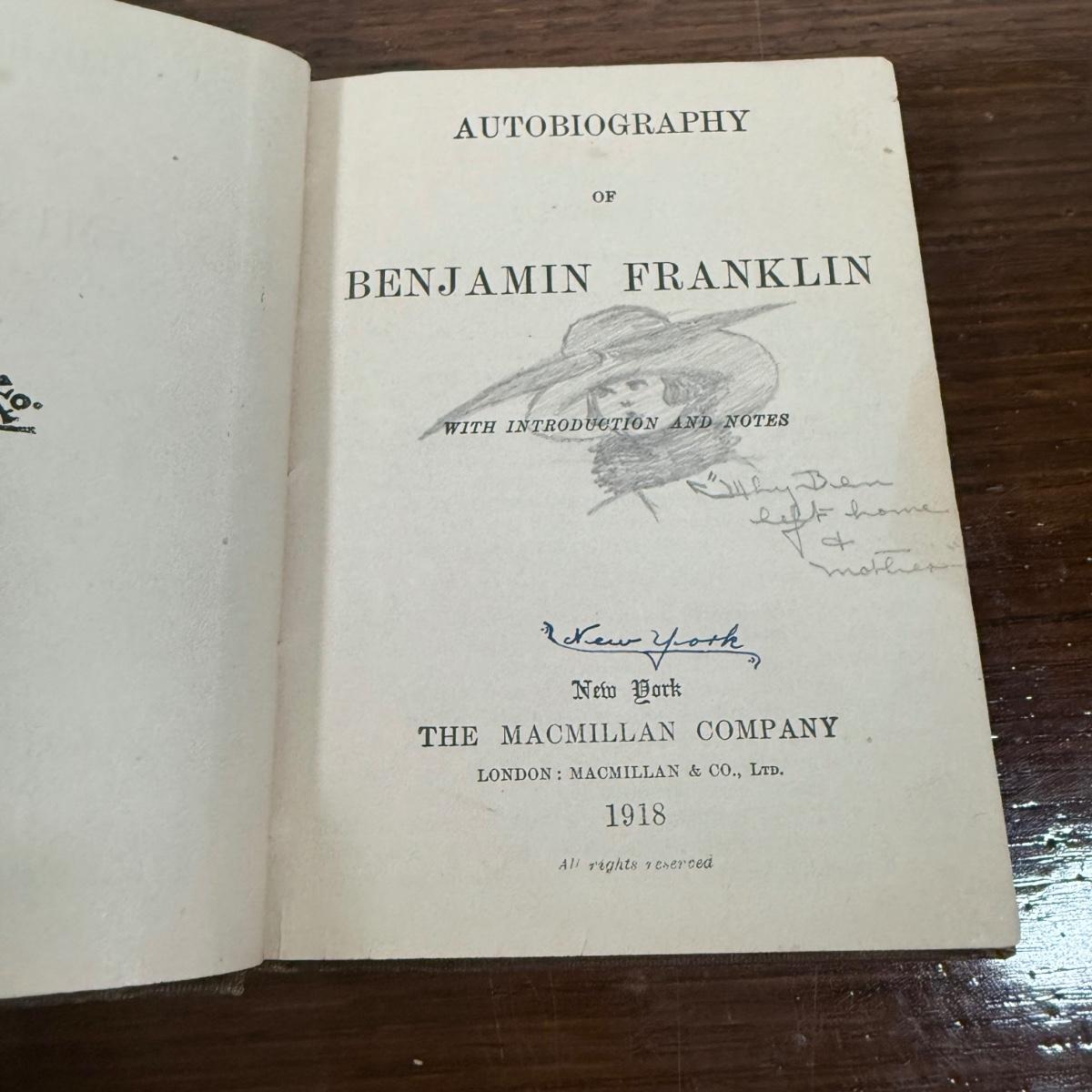 1918 The Autobiography of Benjamin Franklin (drawings and writings inside book)