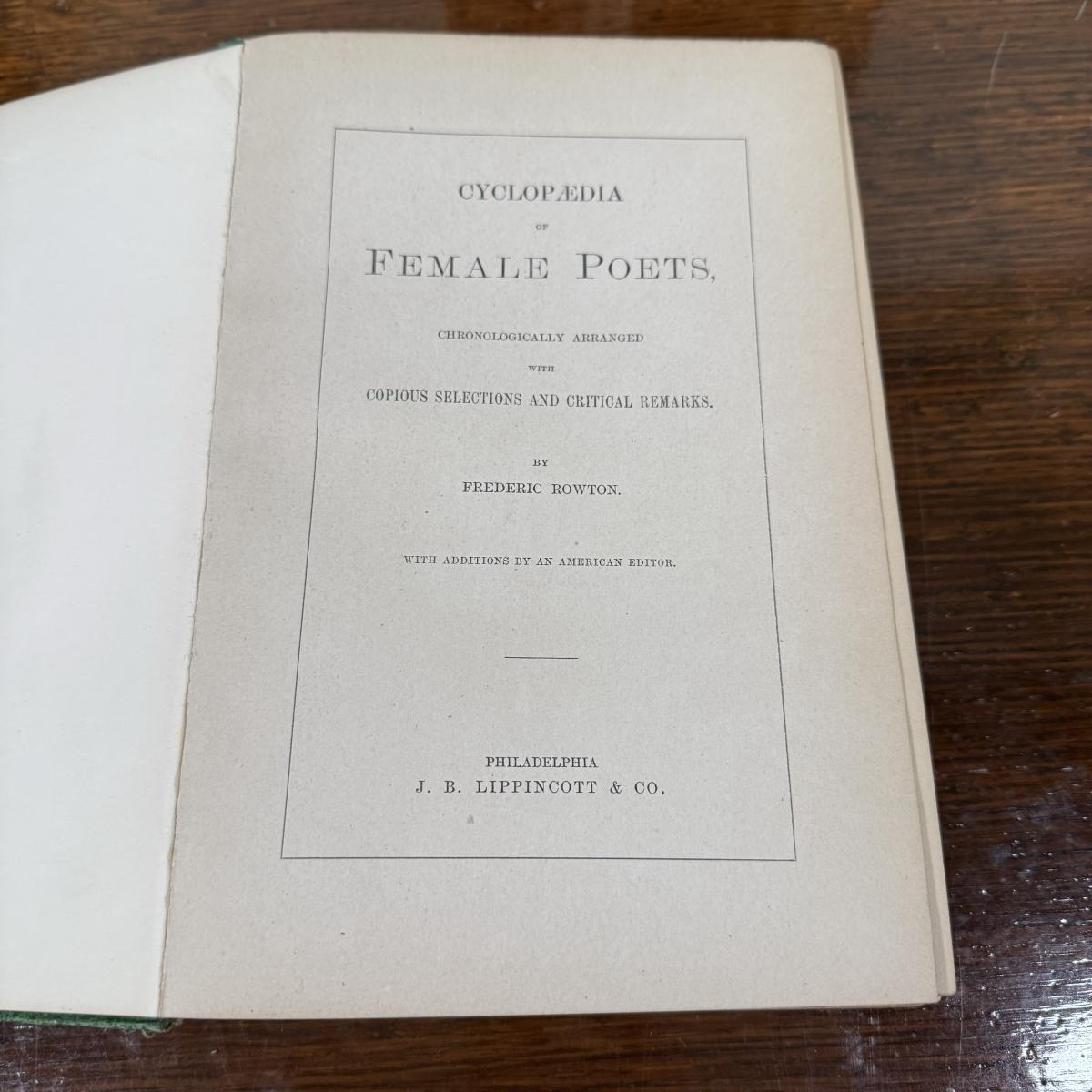 1874 Cyclopedia of Female Poets by Frederic Royton