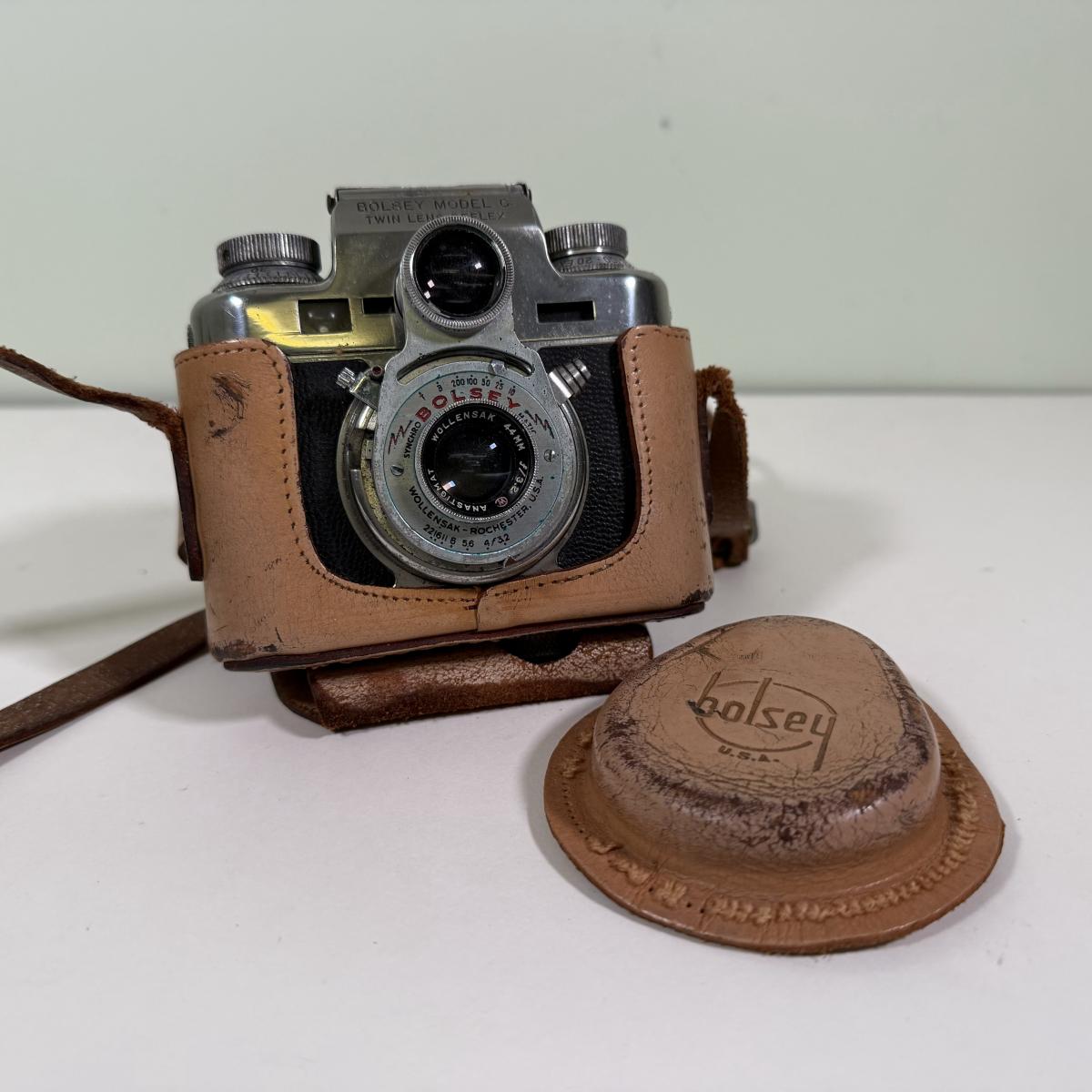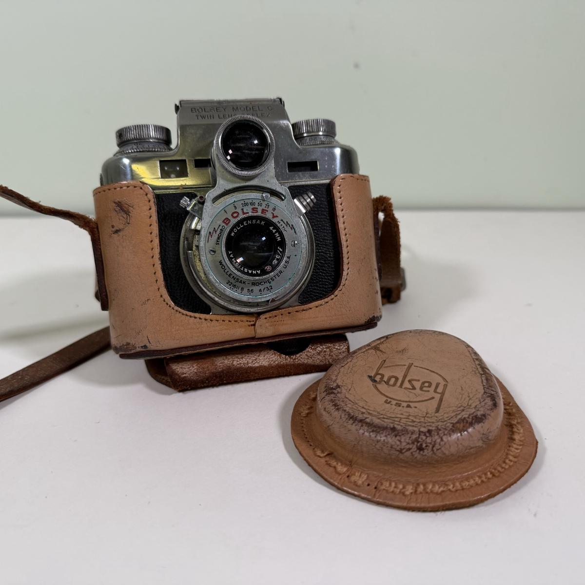 LOT 172B: Vintage Bolsey Model C Twin Reflex Lens Camera w/ Leather Case