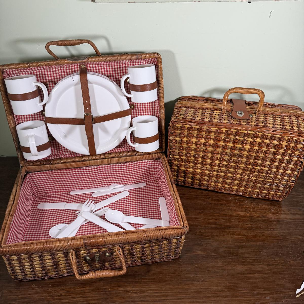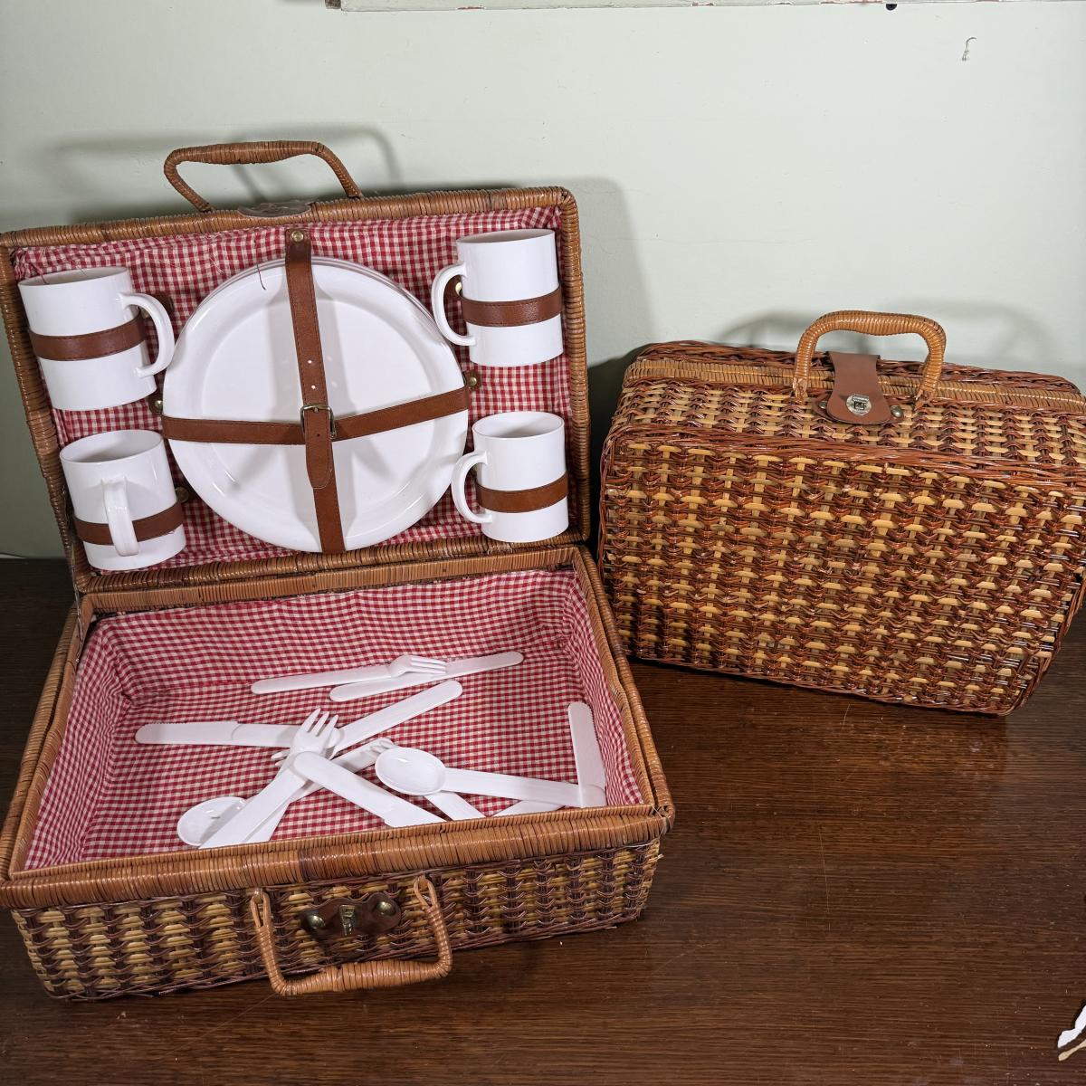 LOT 183B: Picnic Baskets w/ Plastic Dishes & Utensils