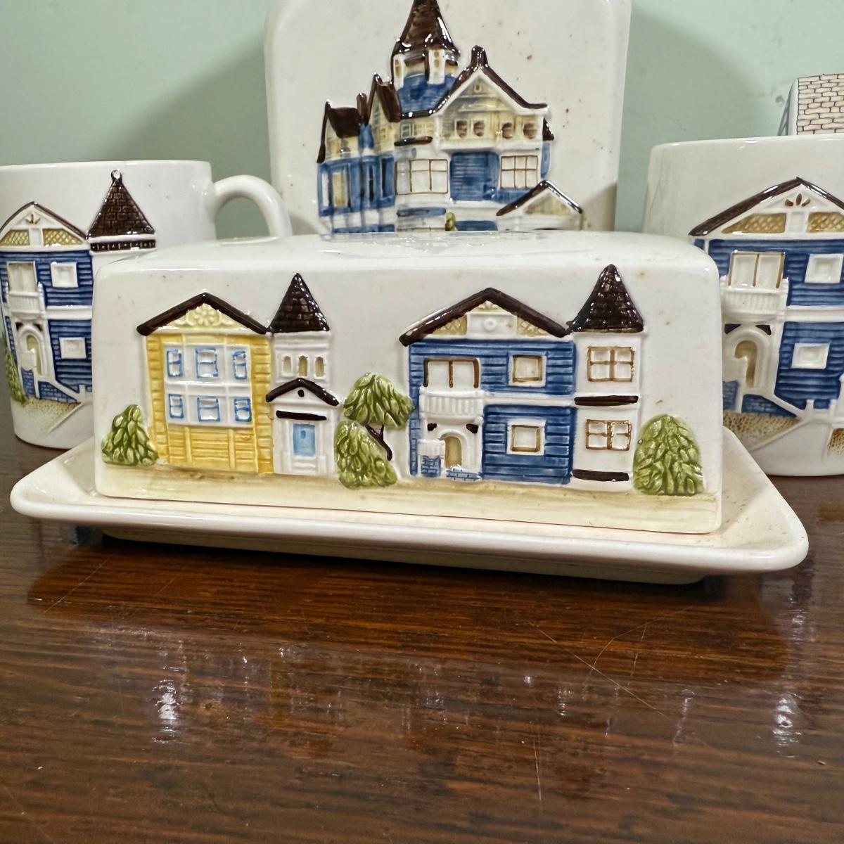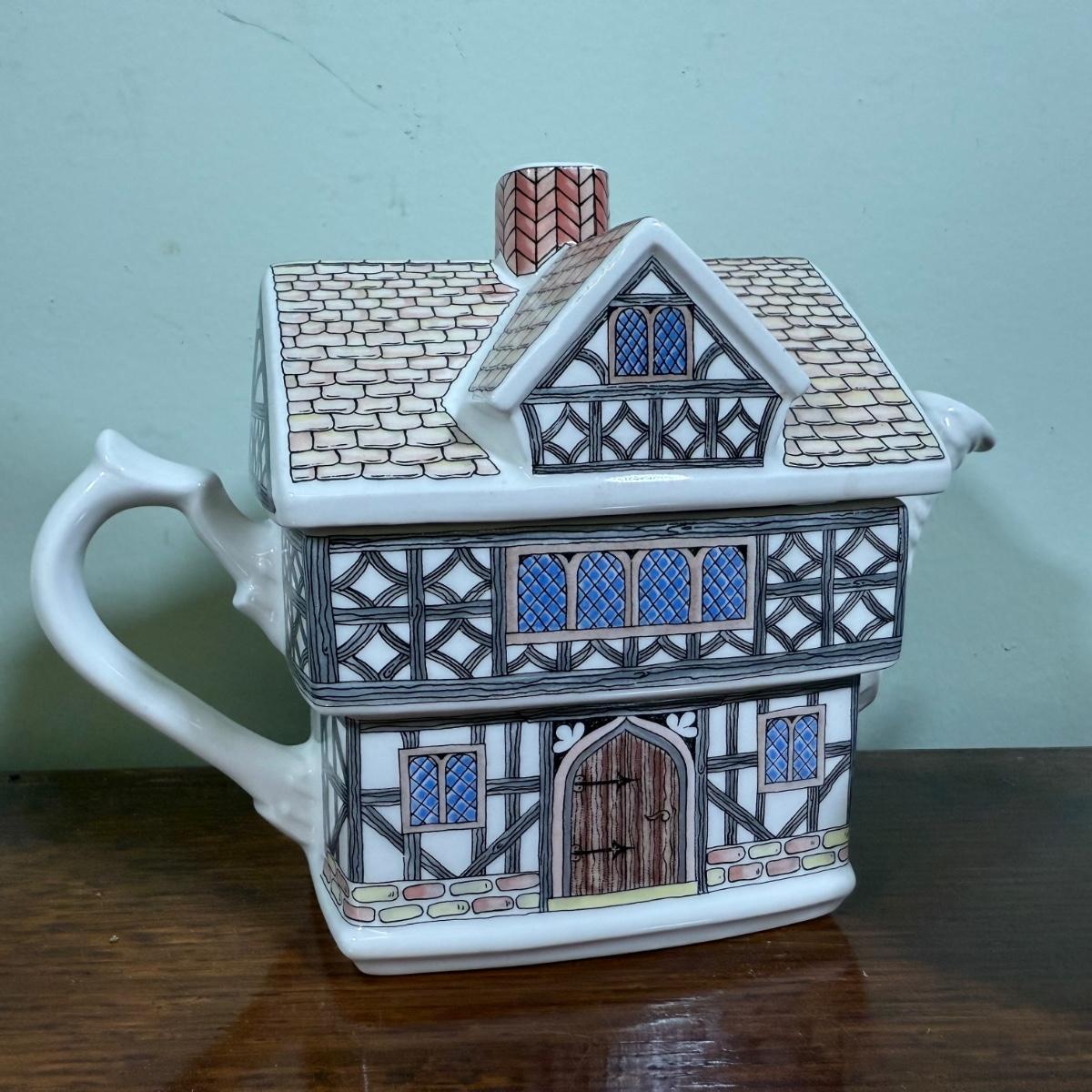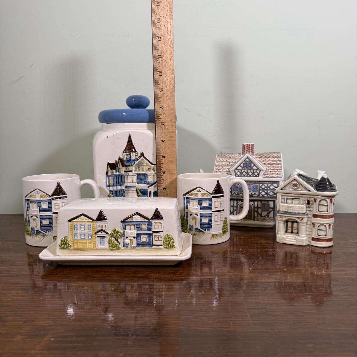 LOT 187B: Sadler "Tudor House" Teapot w/ Otagiri Cookie Jar, Mugs & Butter Dish