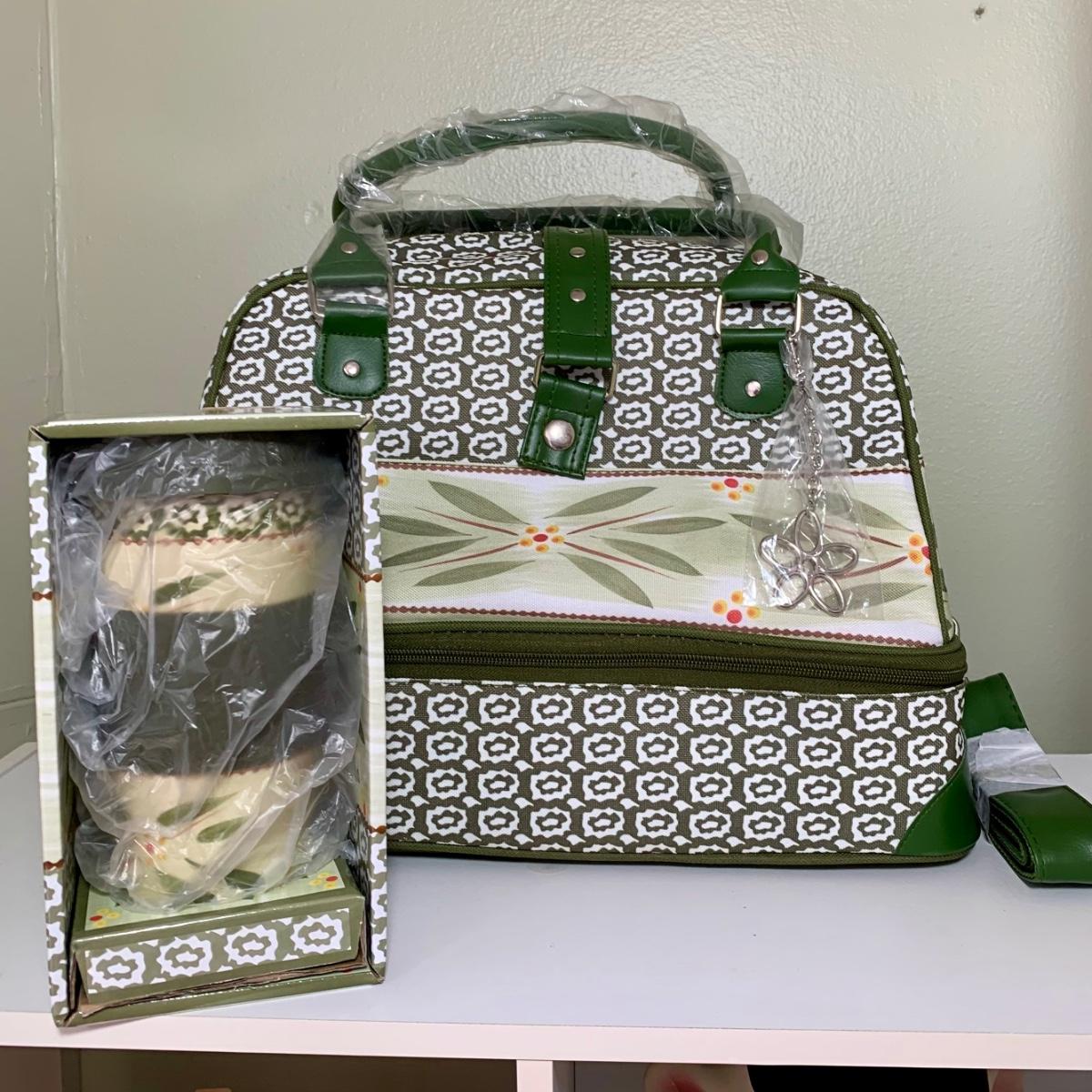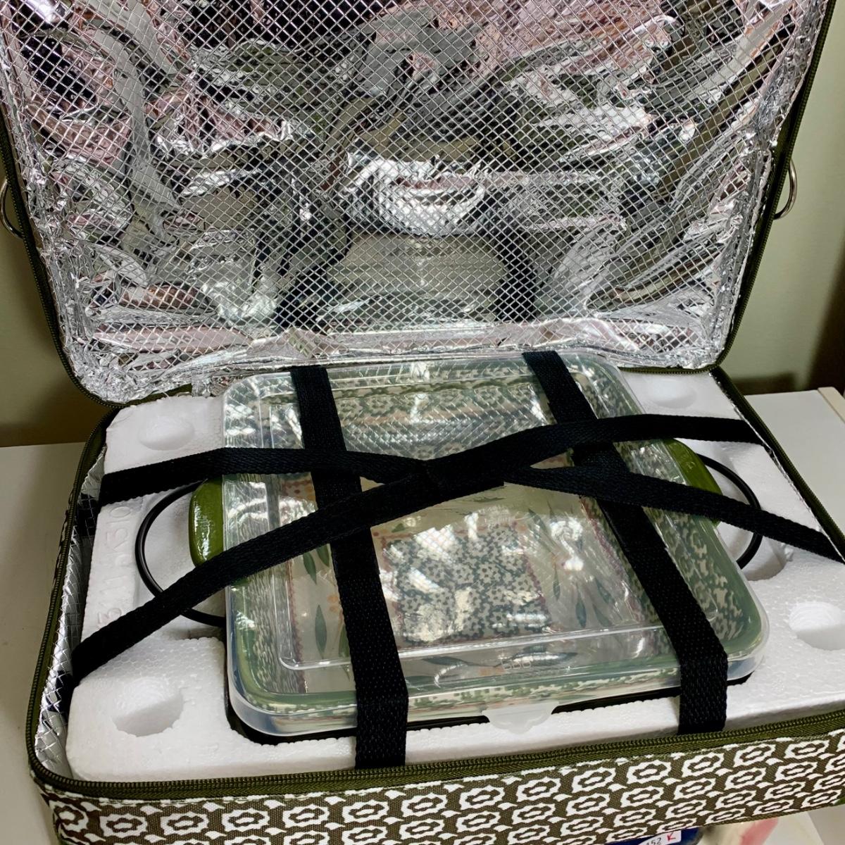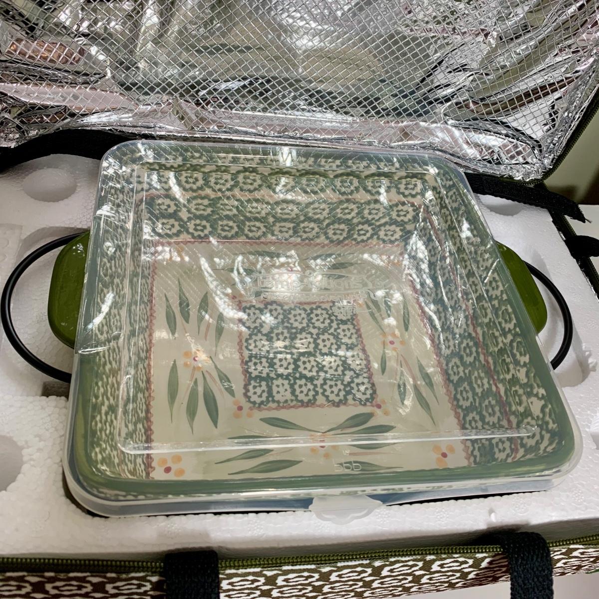 LOT 201 K: Temp-tations Ovenware Old World Insulated Travel Bag w/ 2 QT Dish & Rack Inside & Old World 16 OZ Travel Mug