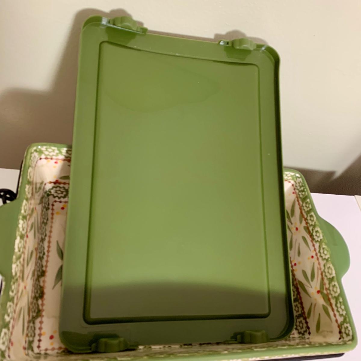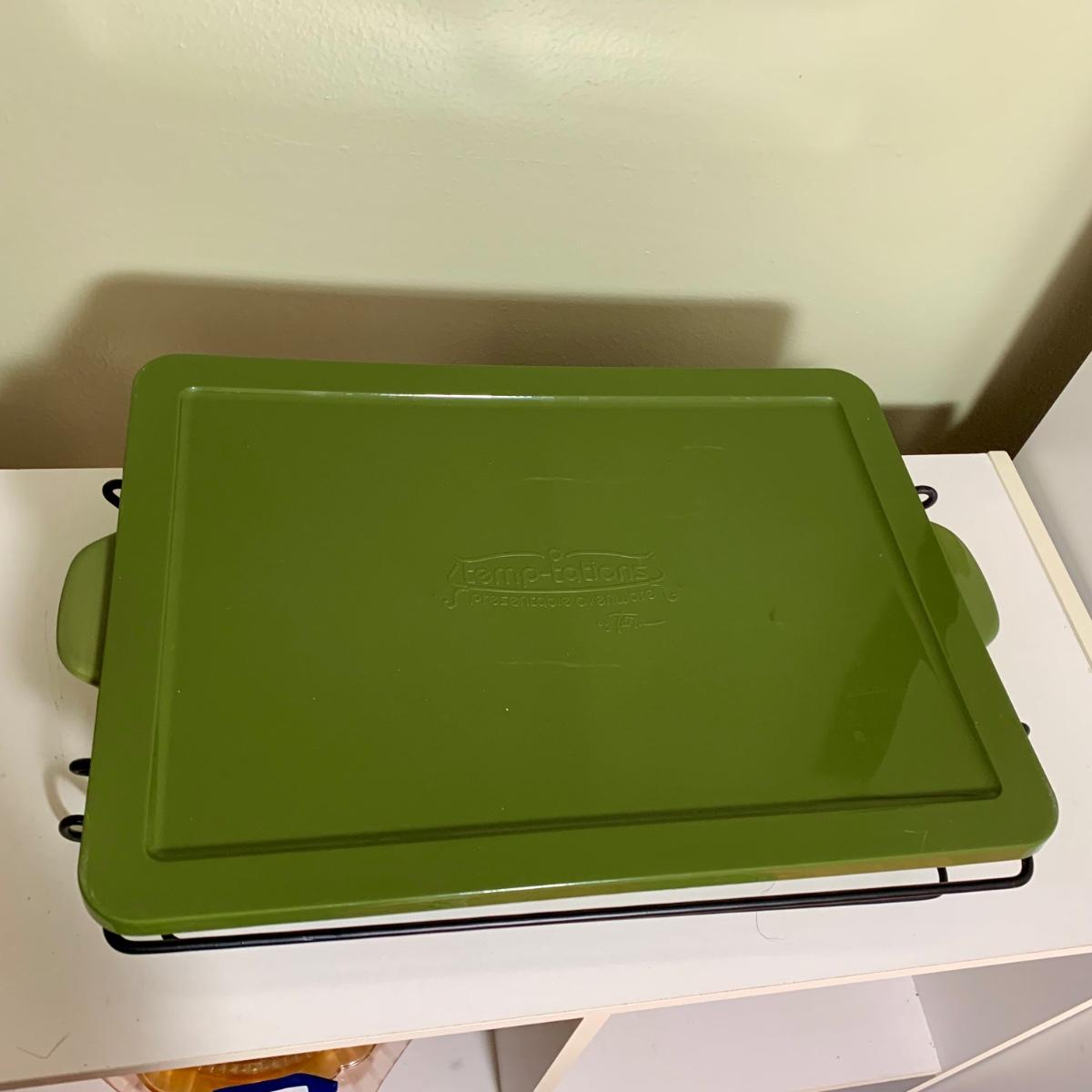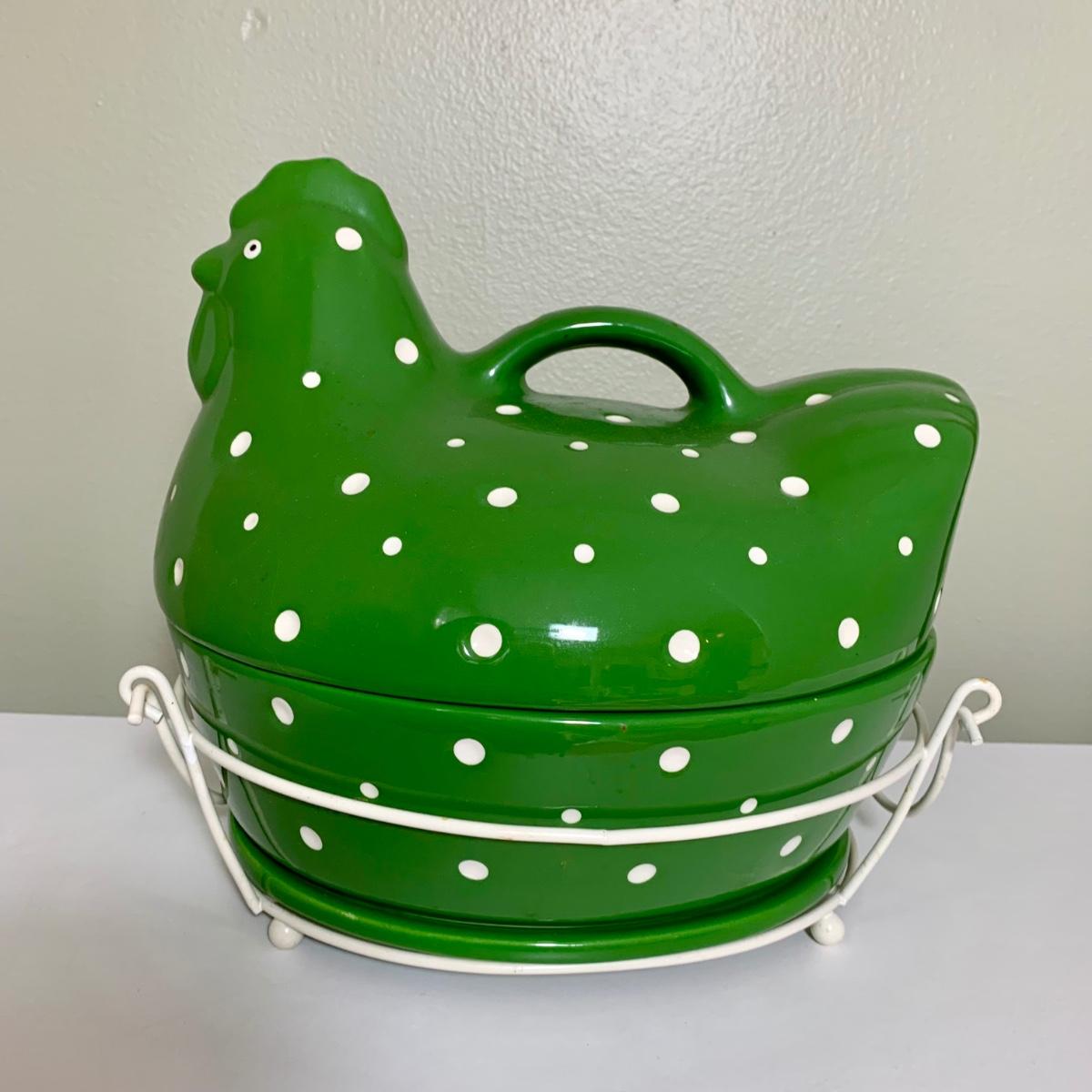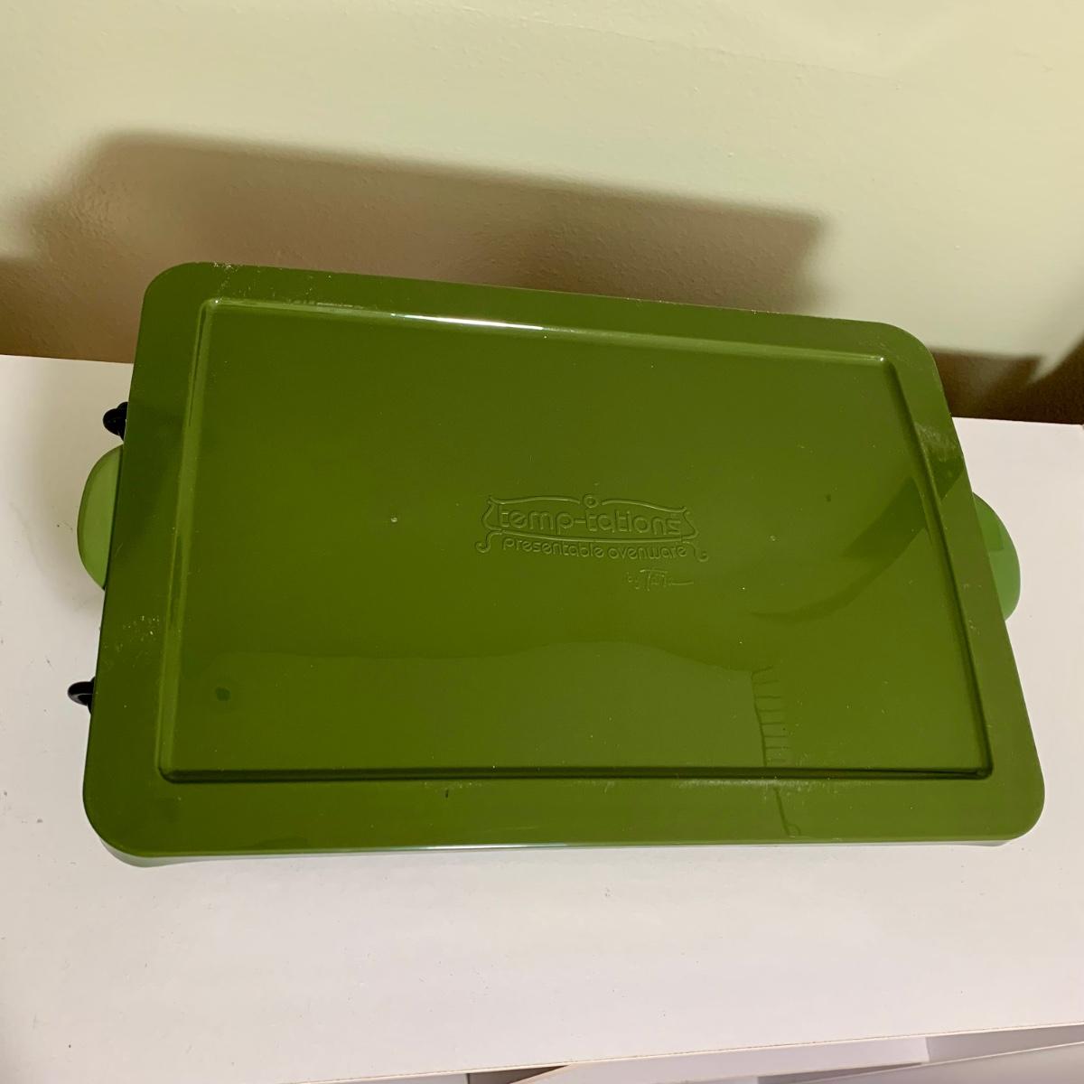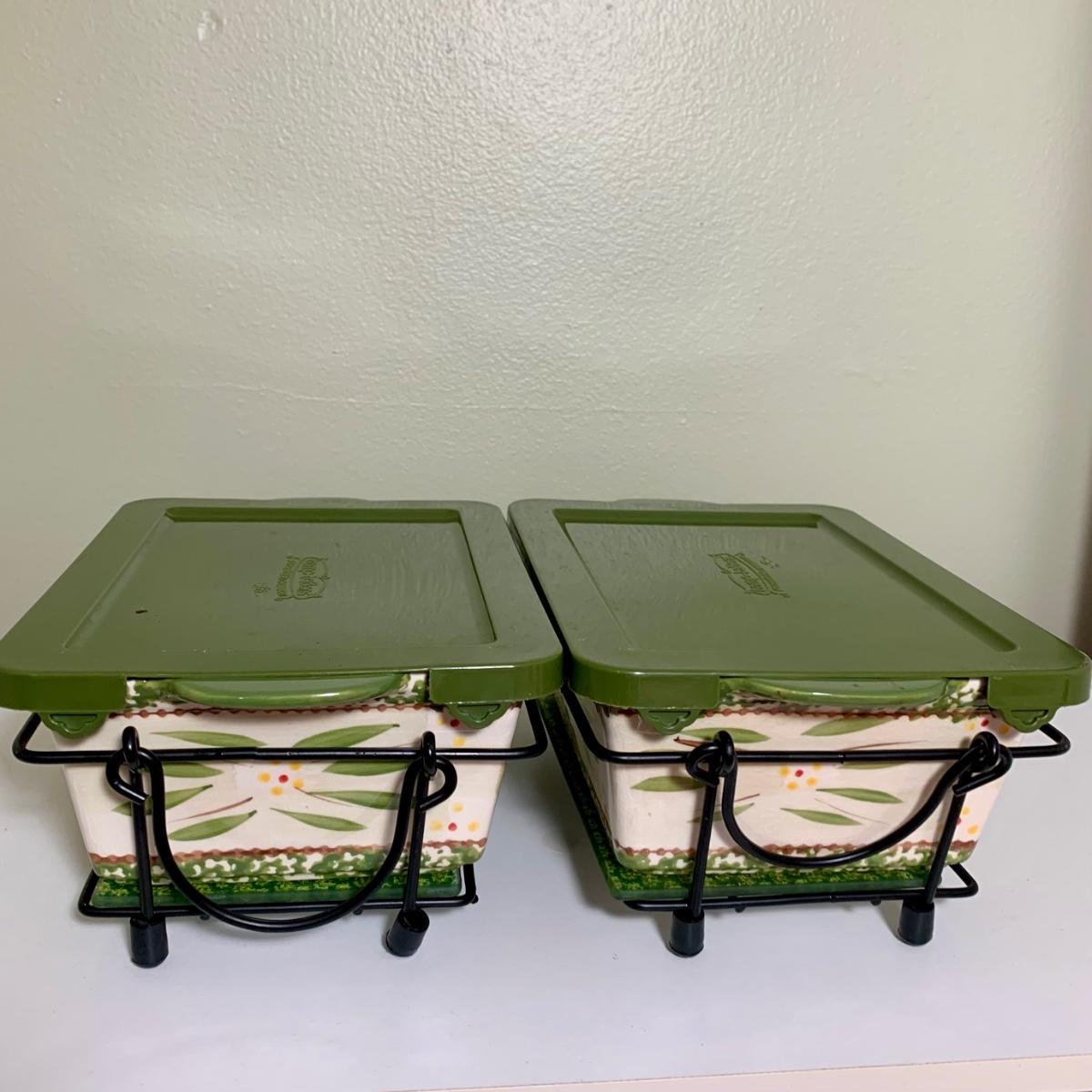 LOT 202 K: Temp-tations Ovenware Collection: 2 Old World 1.5 QT Dishes, 2.5 QT Dish, & 4 QT Dish w/ Racks & Polka Dot 2 QT Chicken Dish