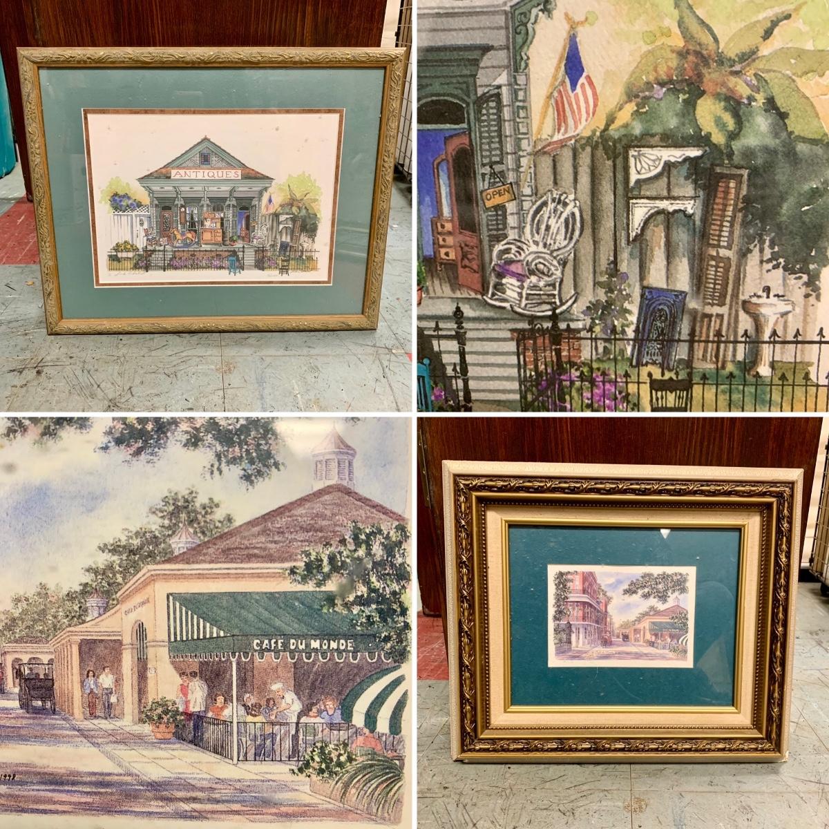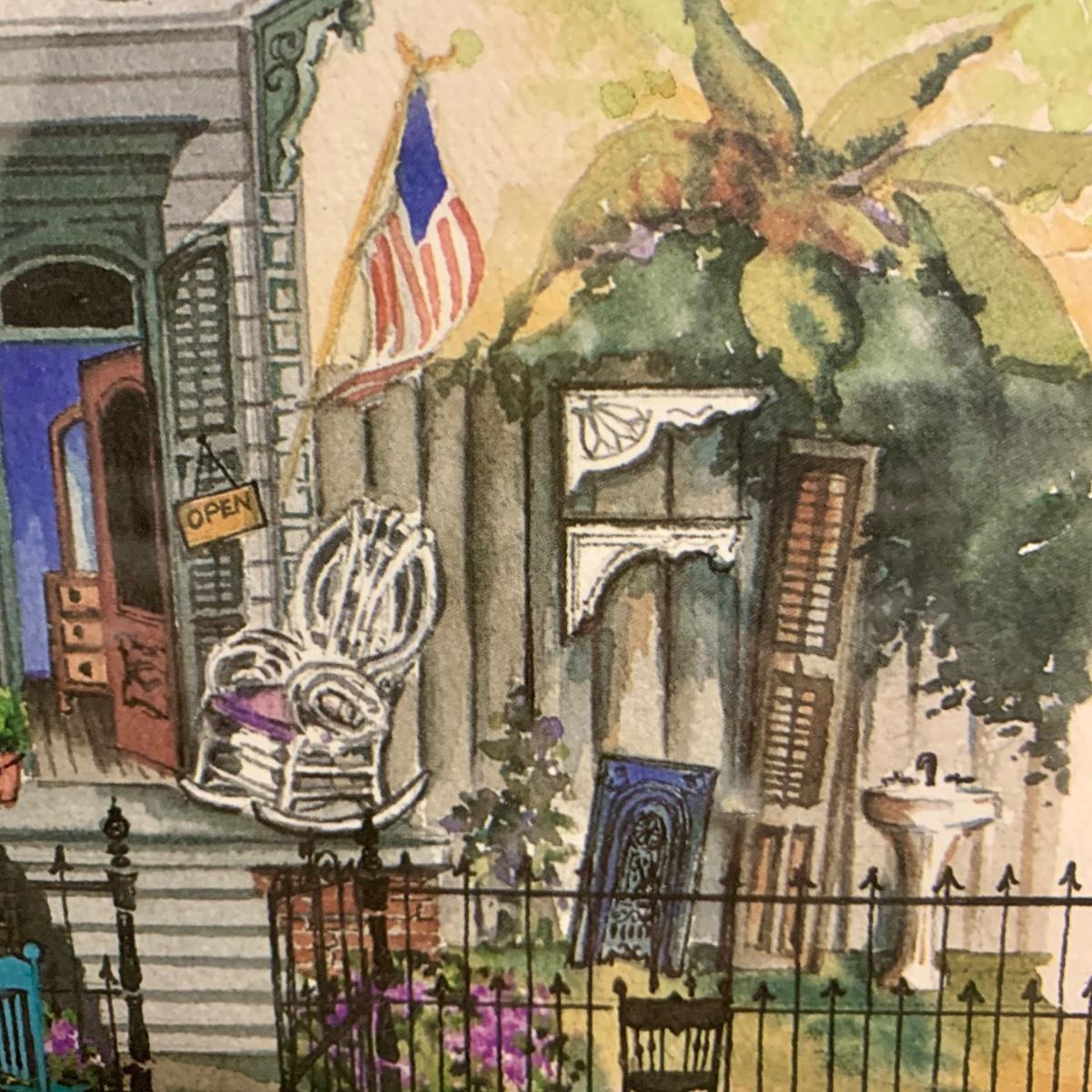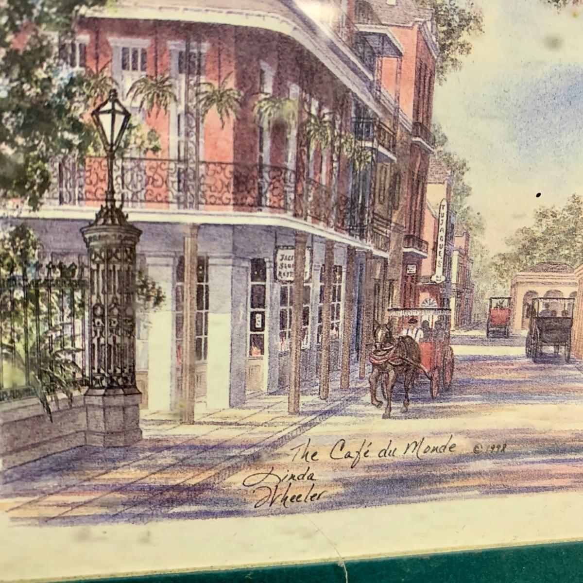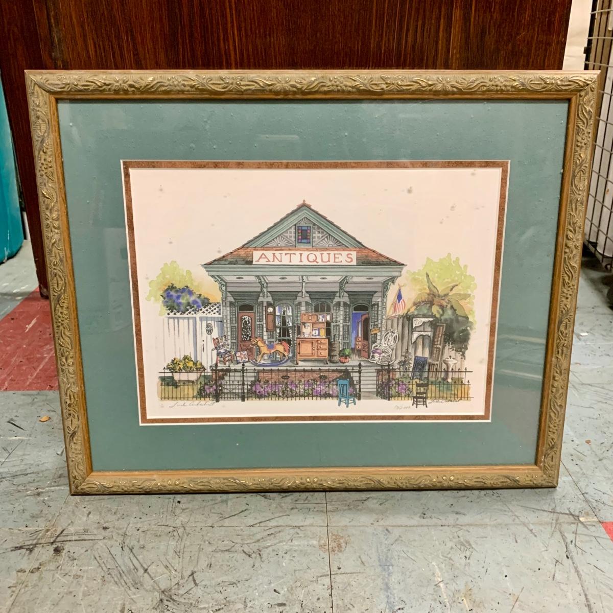 LOT 216 B: Framed, Signed, & Numbered Print of an Antique Store & Framed Print The Cafe' Du Monde by Linda Wheeler 1998