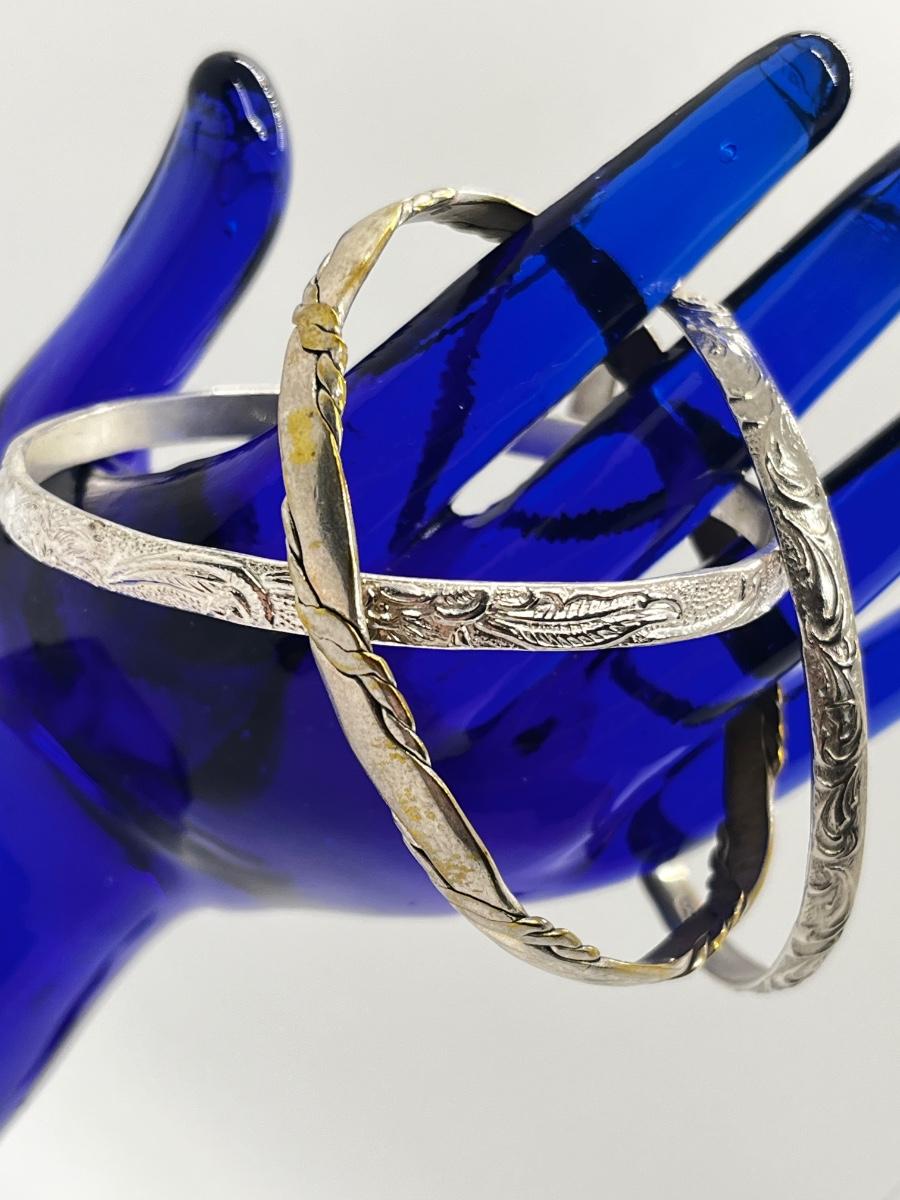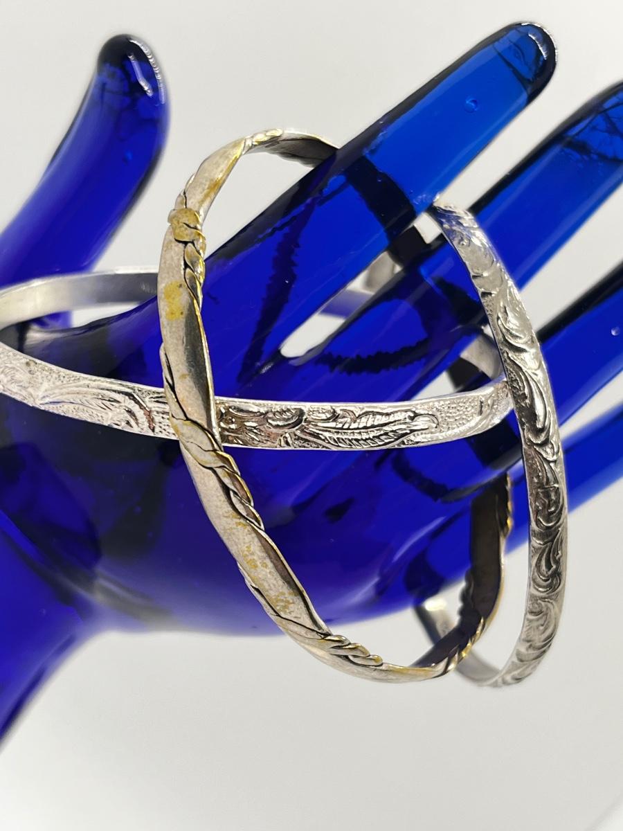LOT 241: Bangle Bracelets: Two Marked Mexico, One Marked Sterling
