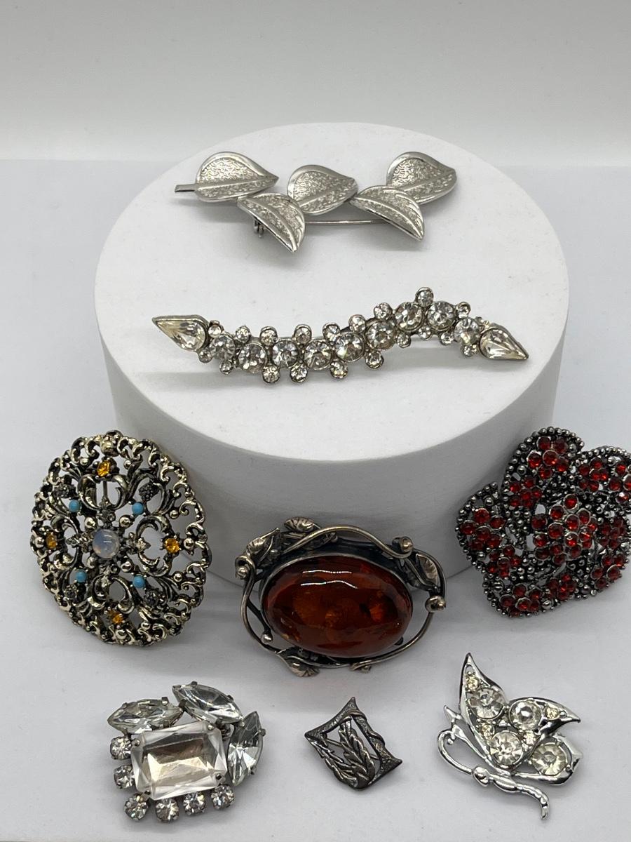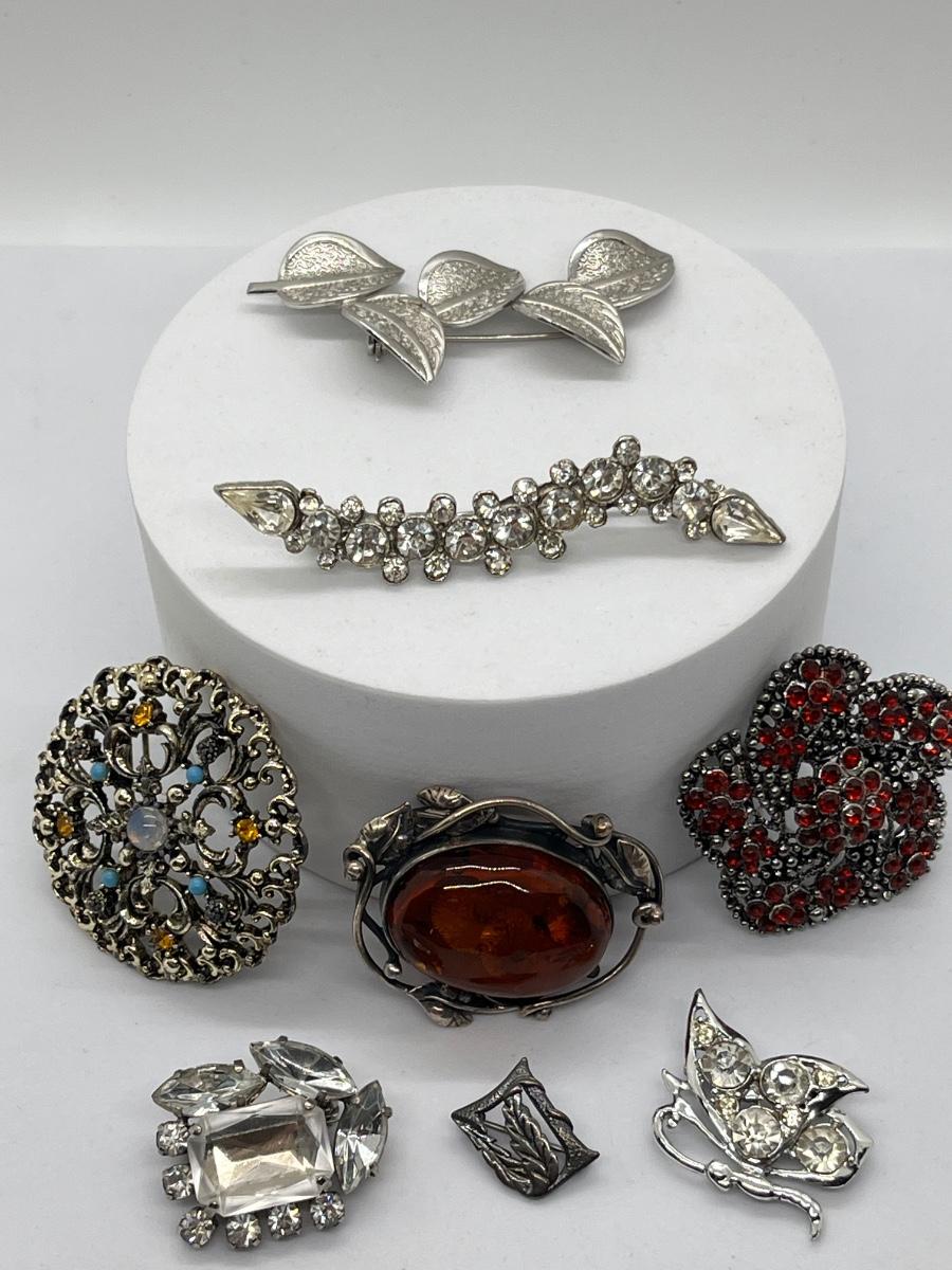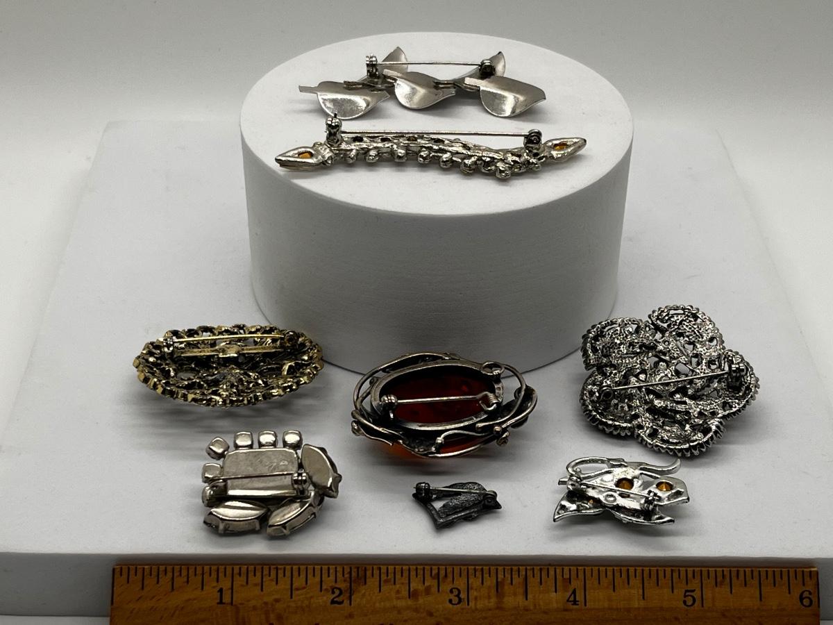 LOT 293J: Vintage Pins/Brooches-featuring Art Nouveau Amber Brooch
