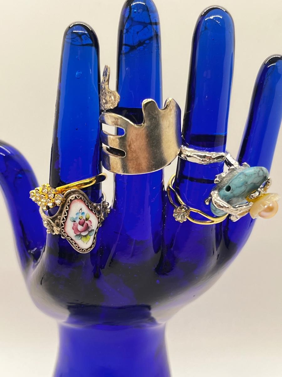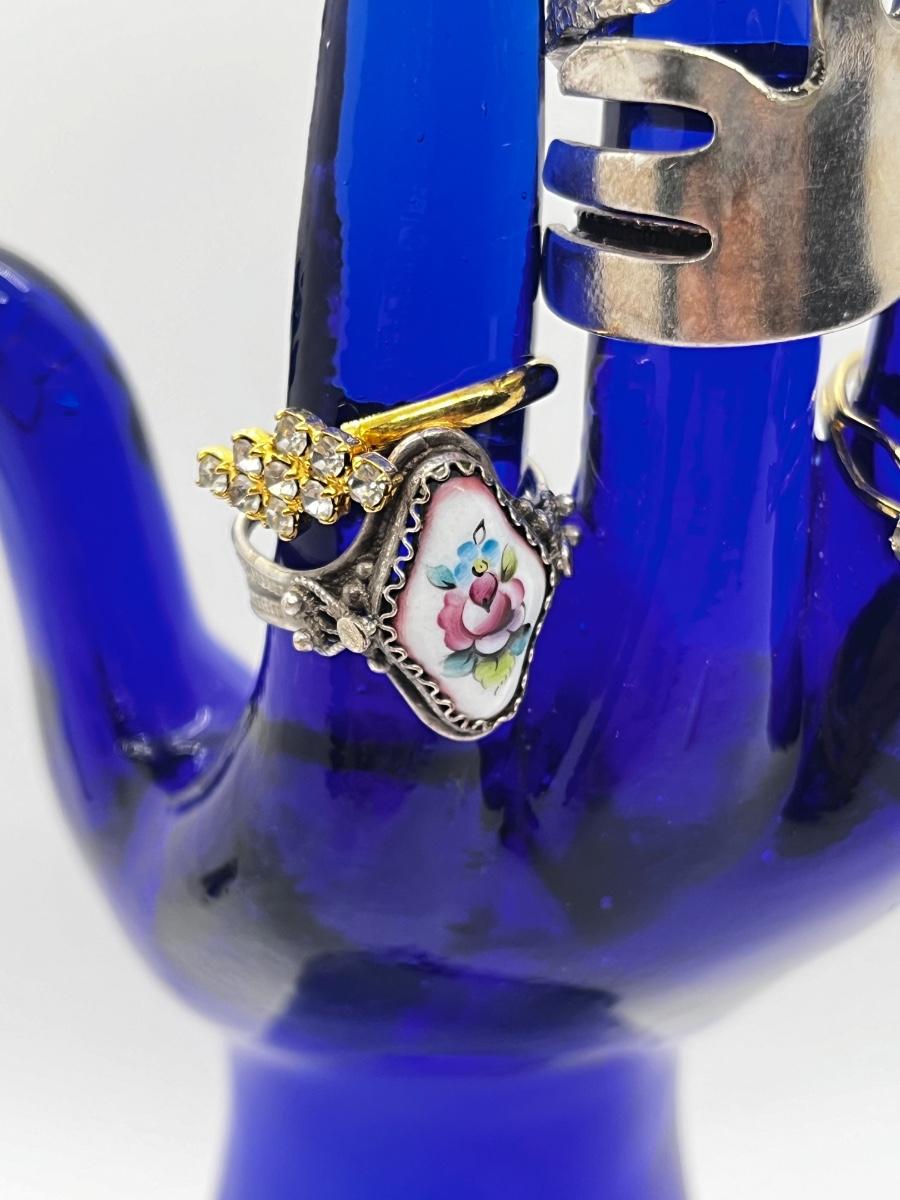 LOT 306J: Awesome Costume Jewelry Rings with Russian Enamel, Rogers Silverplate and More