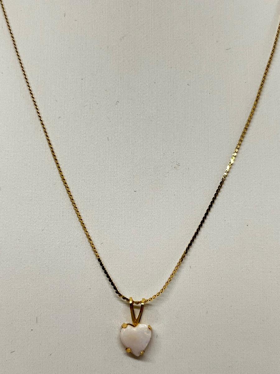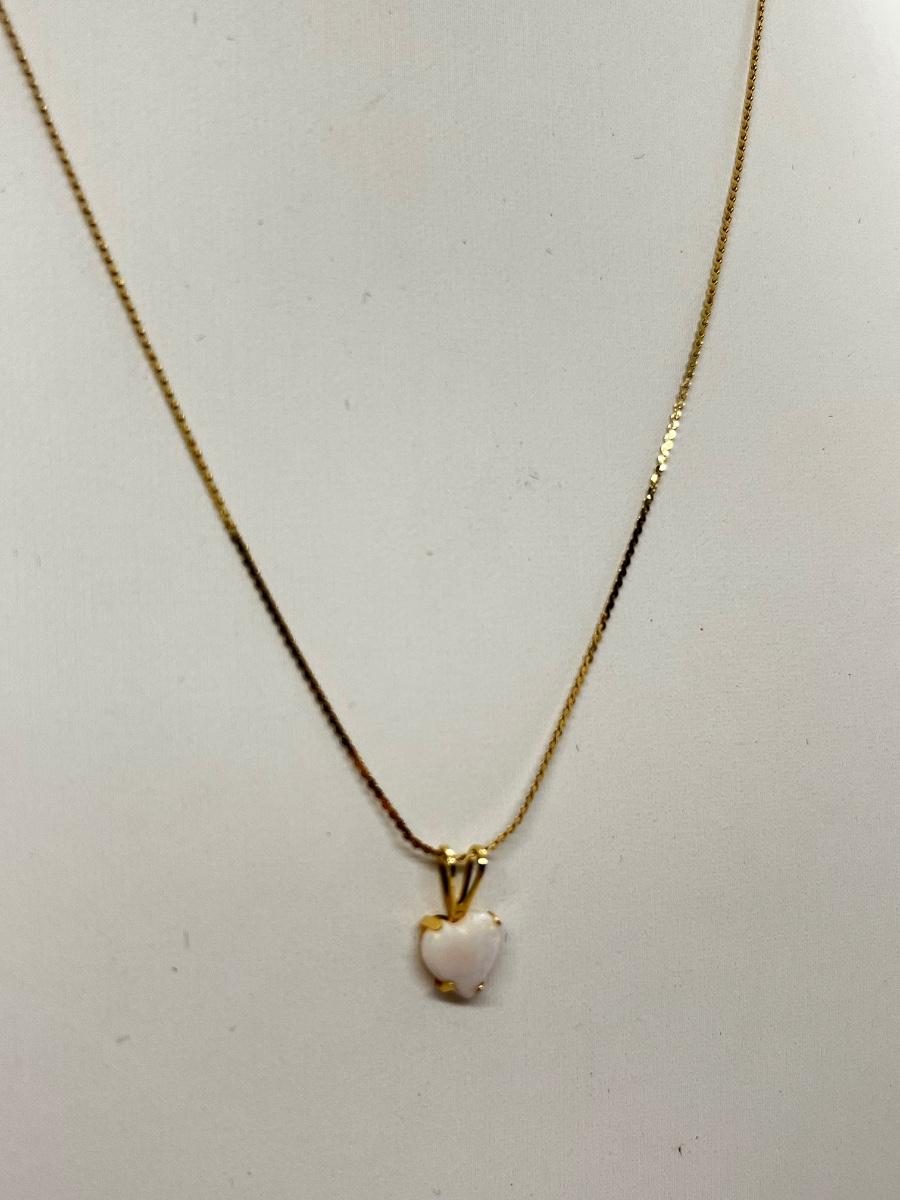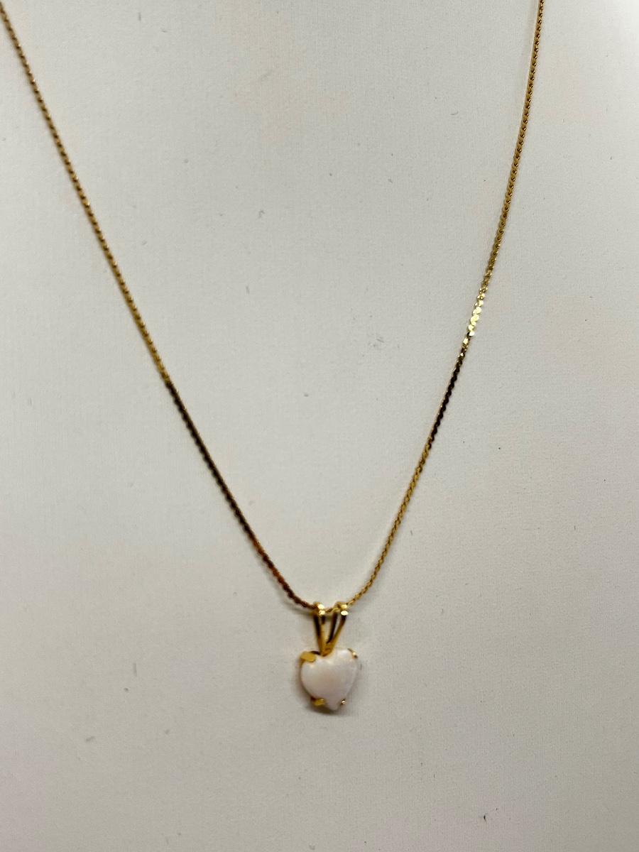 LOT 310J: 14K Gold and Opal Heart Pendant on 15 inch 14K Gold Necklace