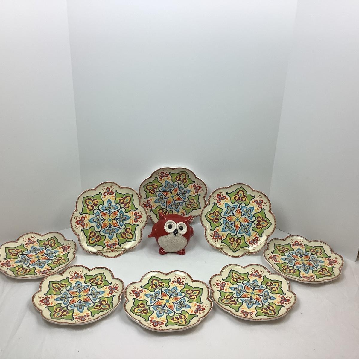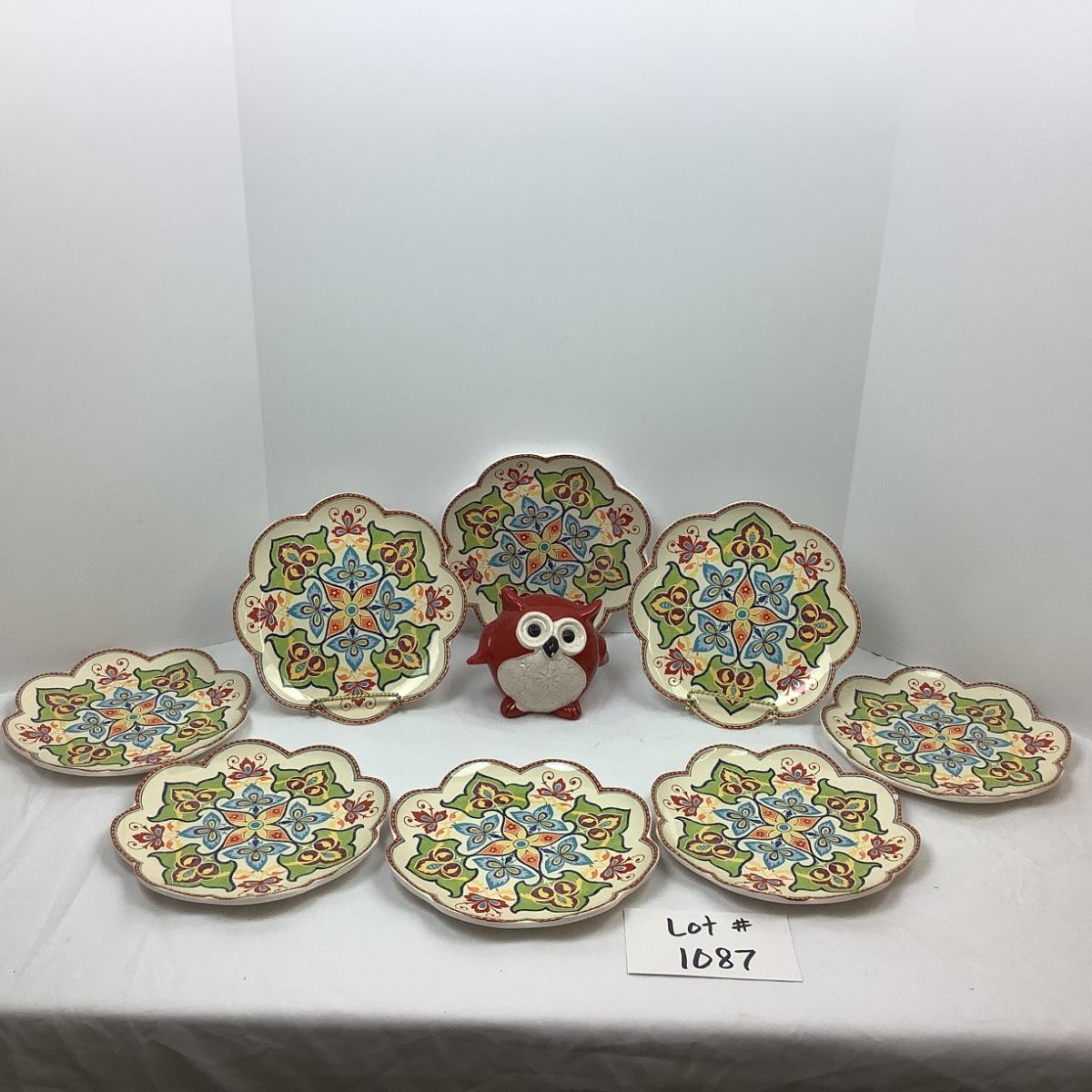 Lot # 1087 Pier 1 Scallop Plates & Ceramic Owl
