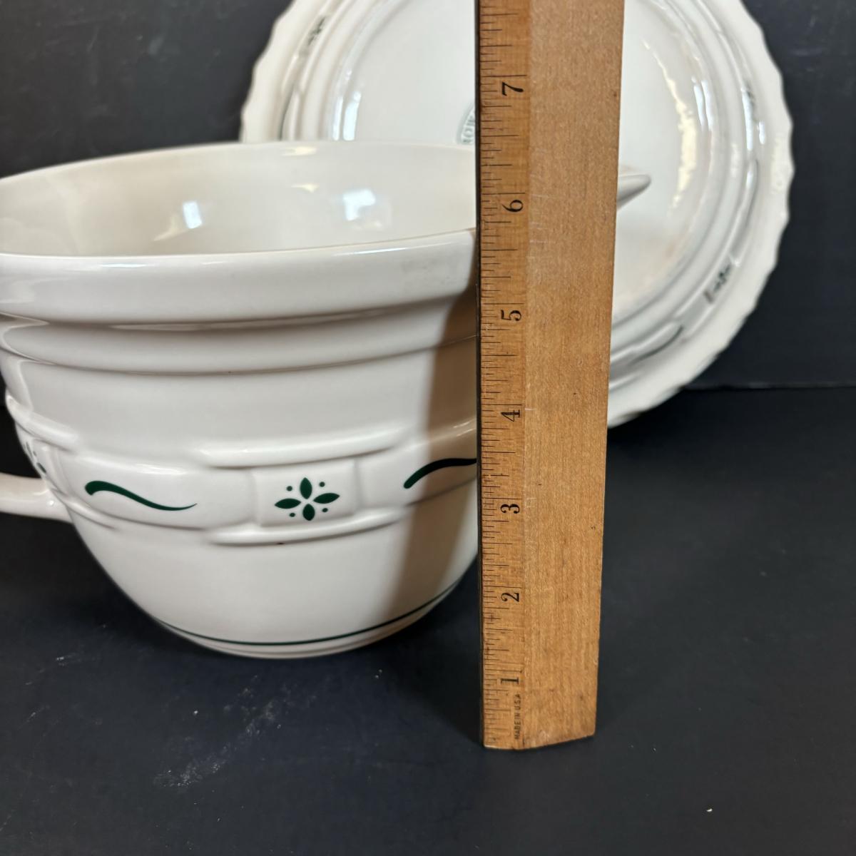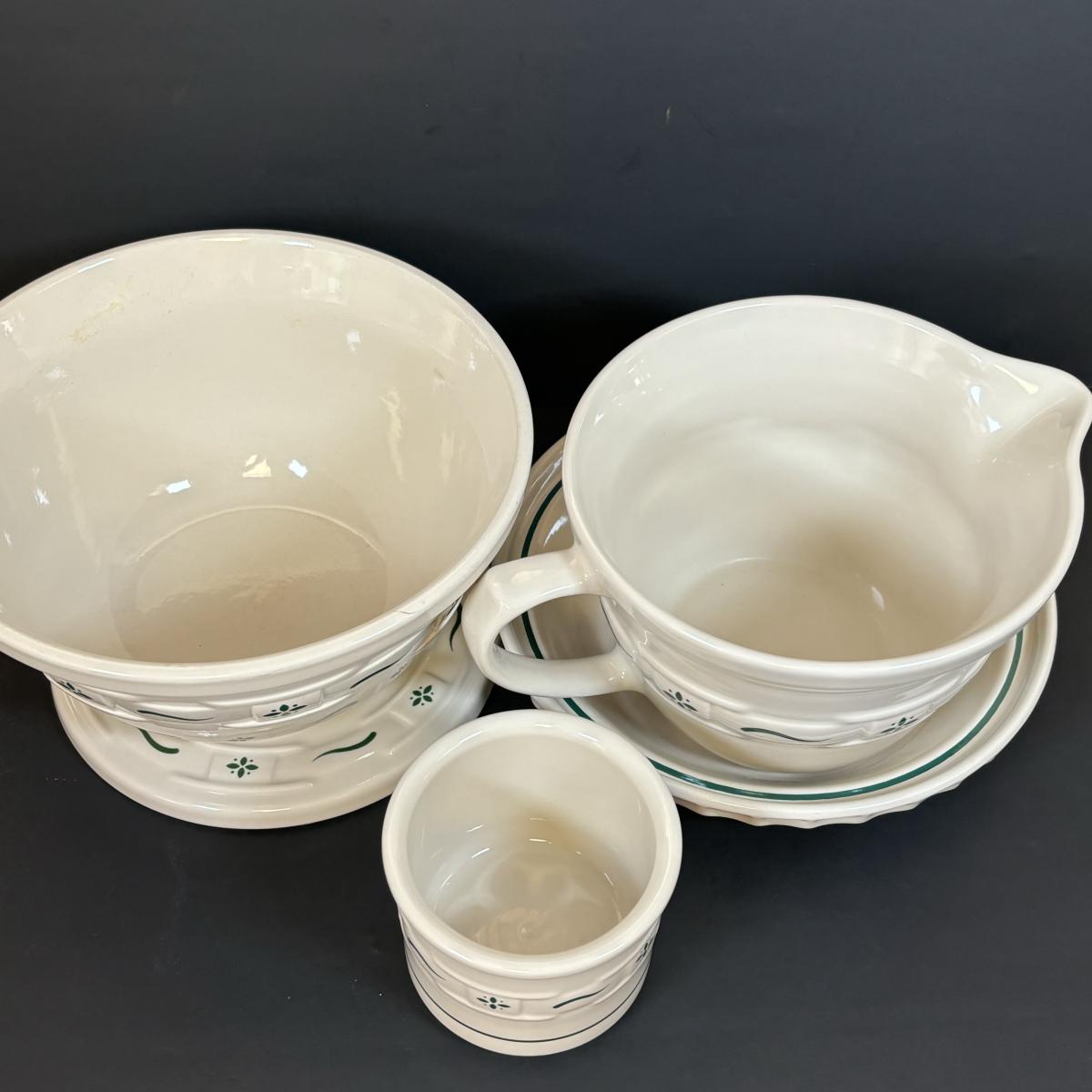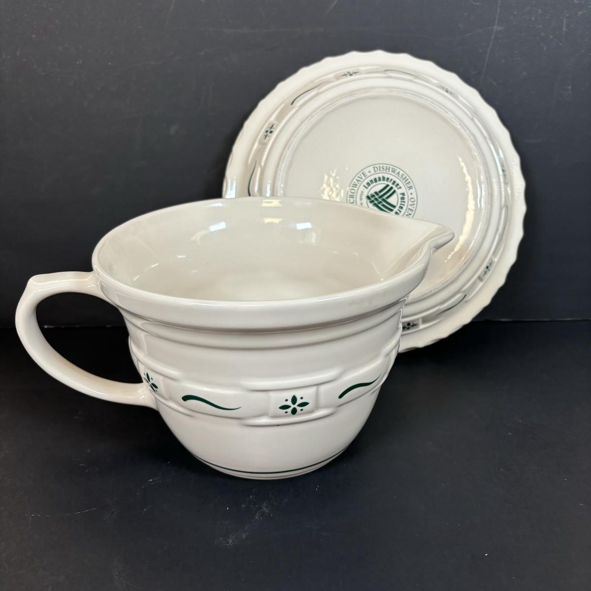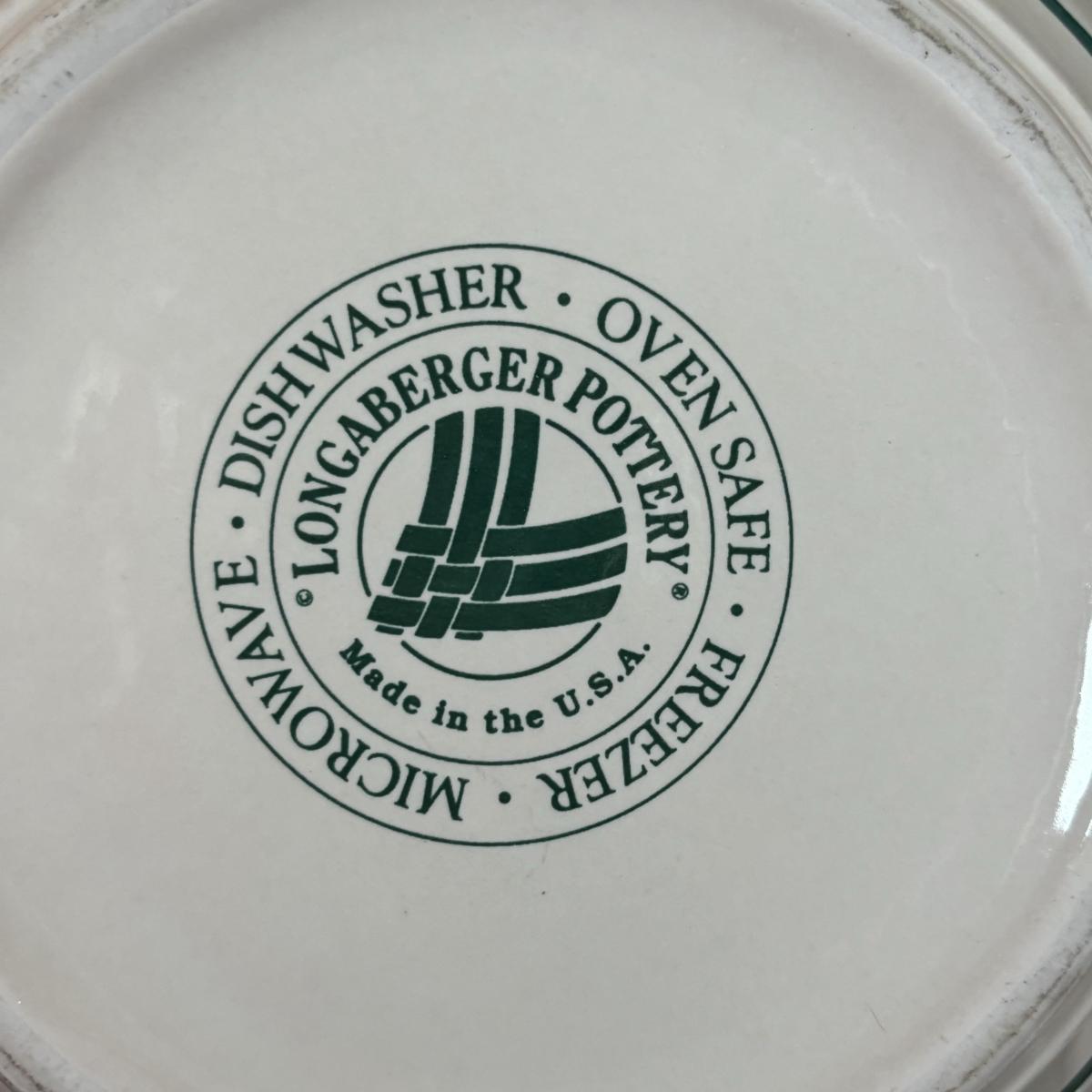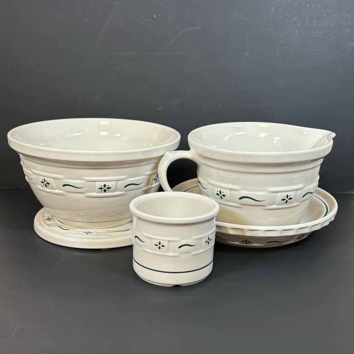 LOT 13: Longaberger Pottery Woven Traditions - Heritage Green: Mixing Bowl, Batter Bowl, Pie Plate & More