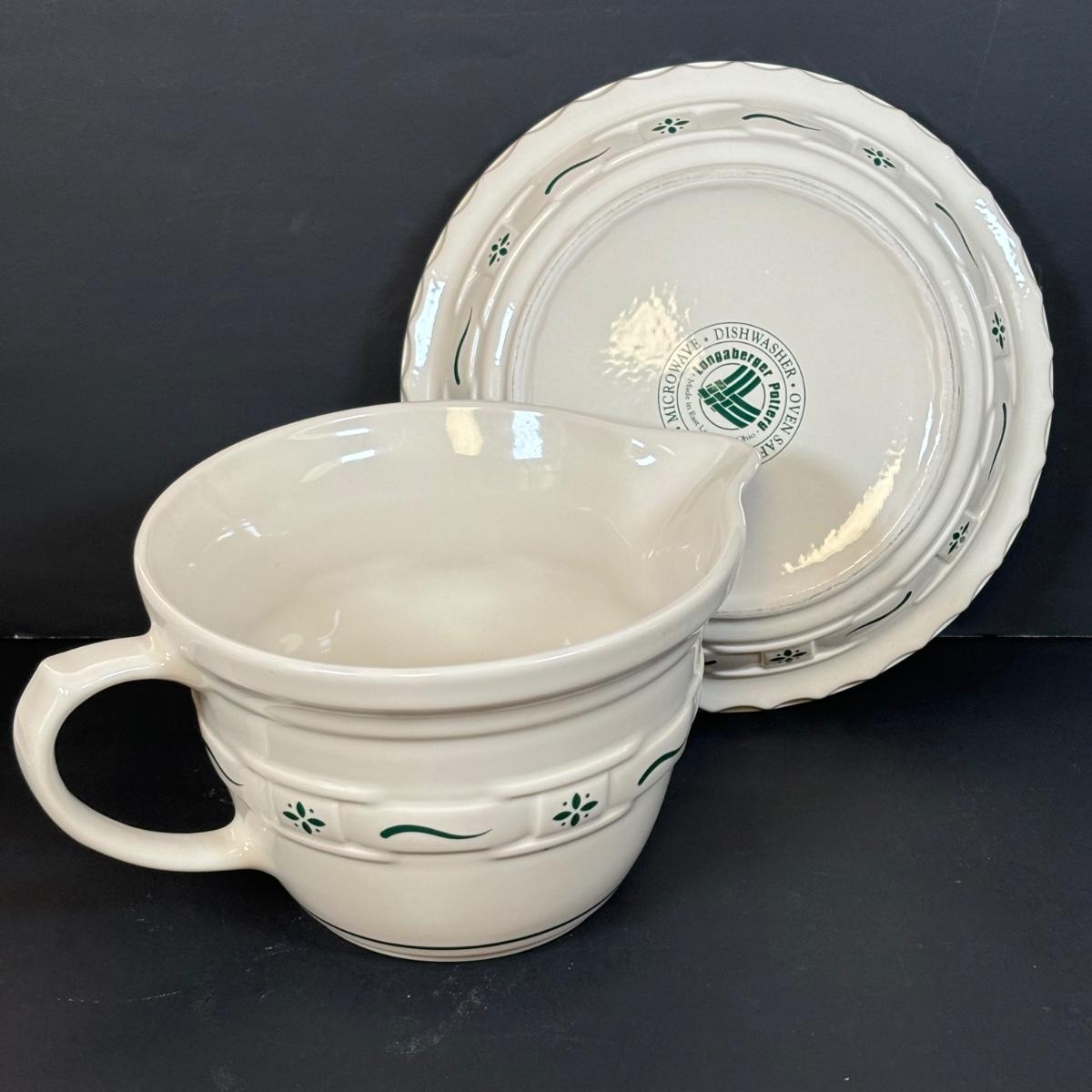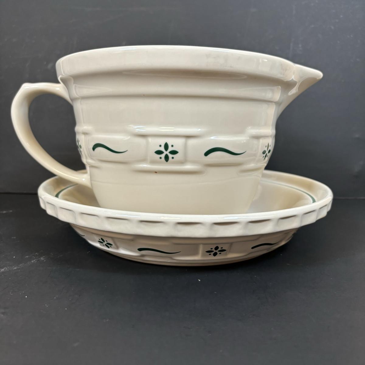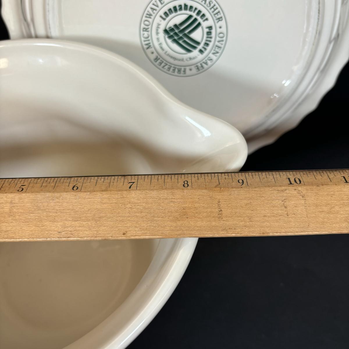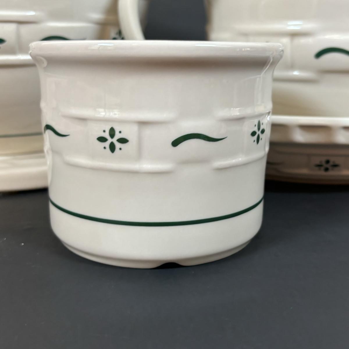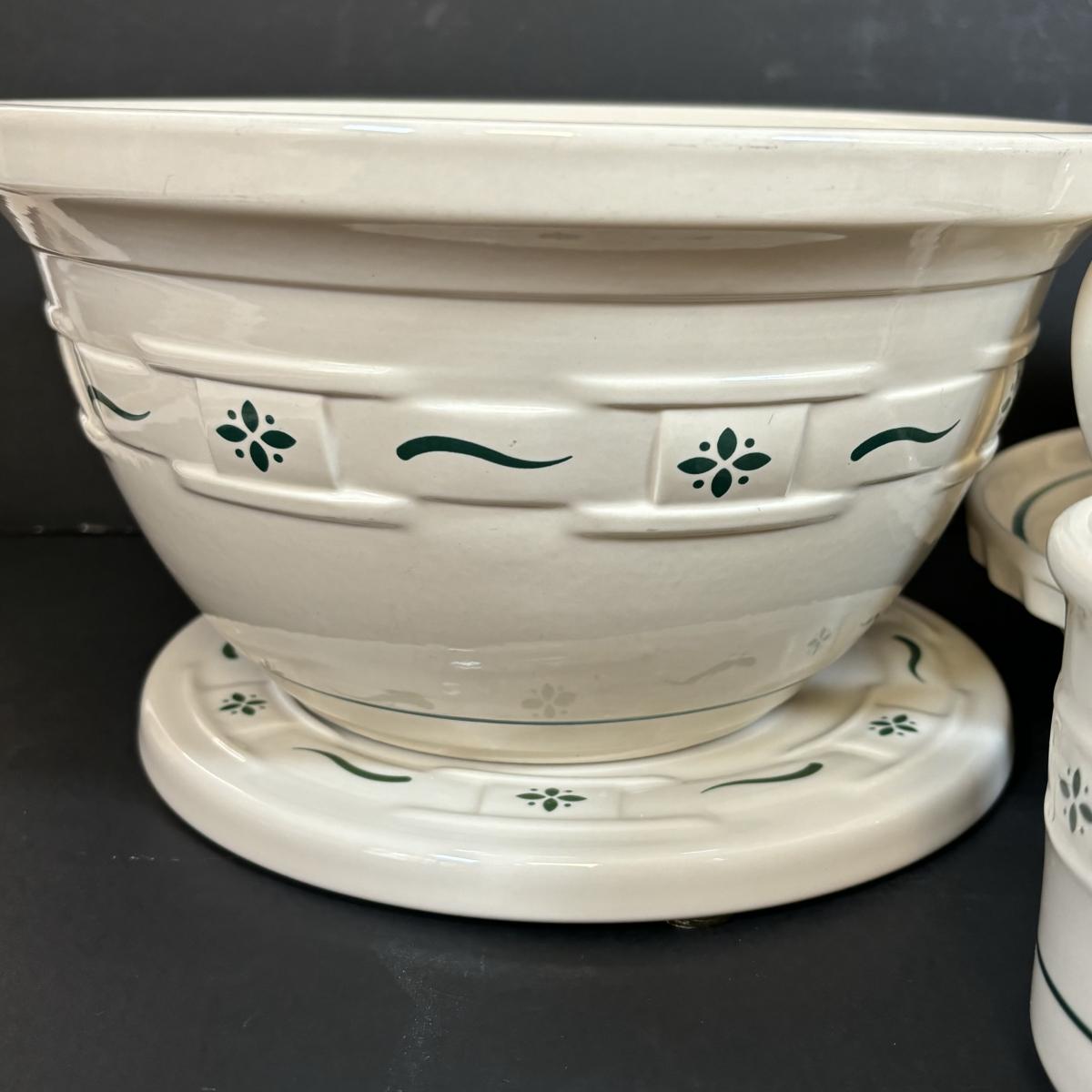 LOT 13: Longaberger Pottery Woven Traditions - Heritage Green: Mixing Bowl, Batter Bowl, Pie Plate & More