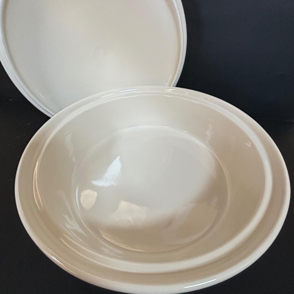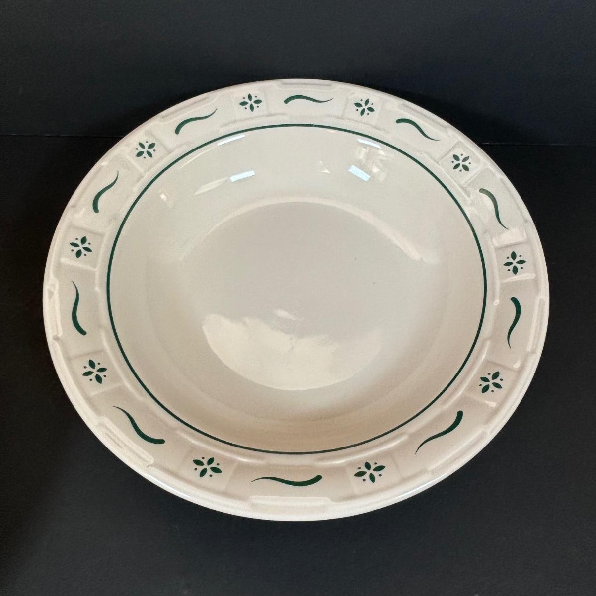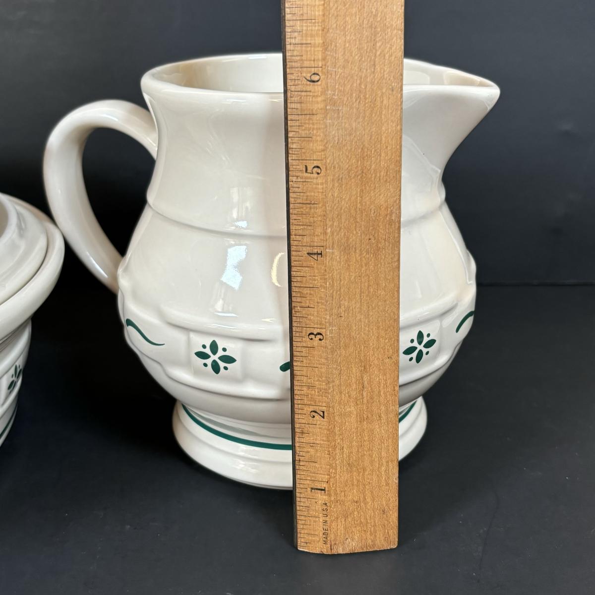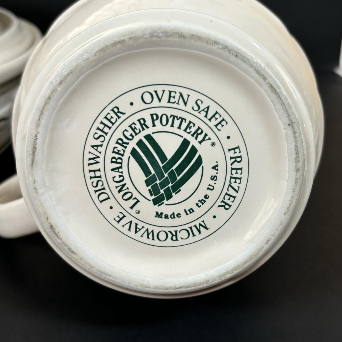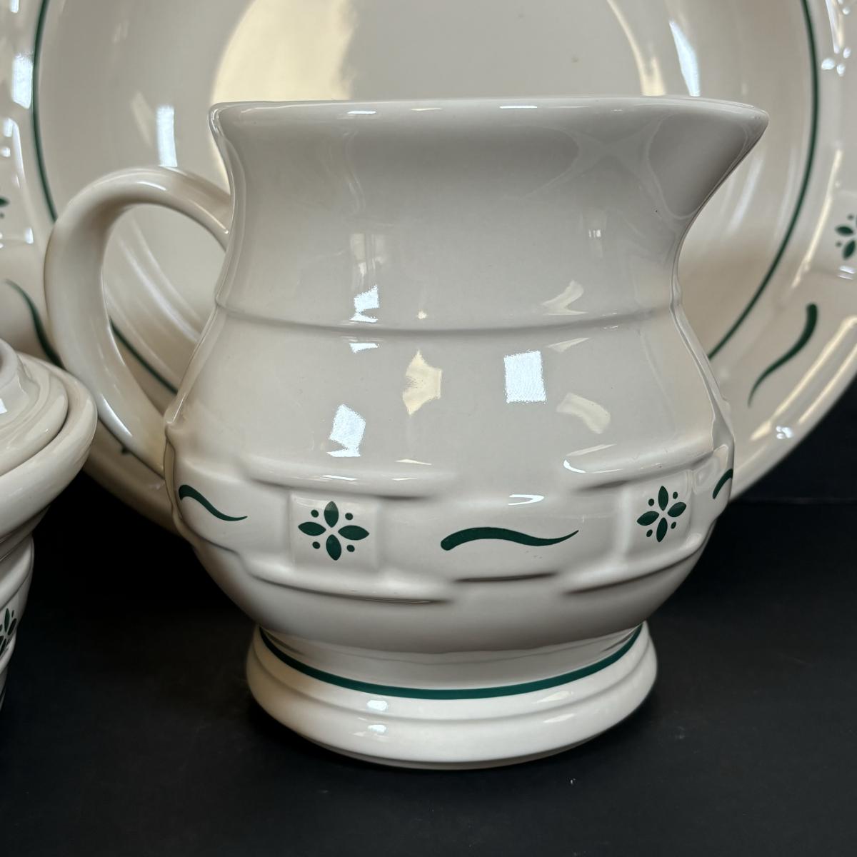 LOT 15: Longaberger Pottery Woven Traditions - Heritage Green: Serving Bowl, Pitcher & Covered Casserole Dishes