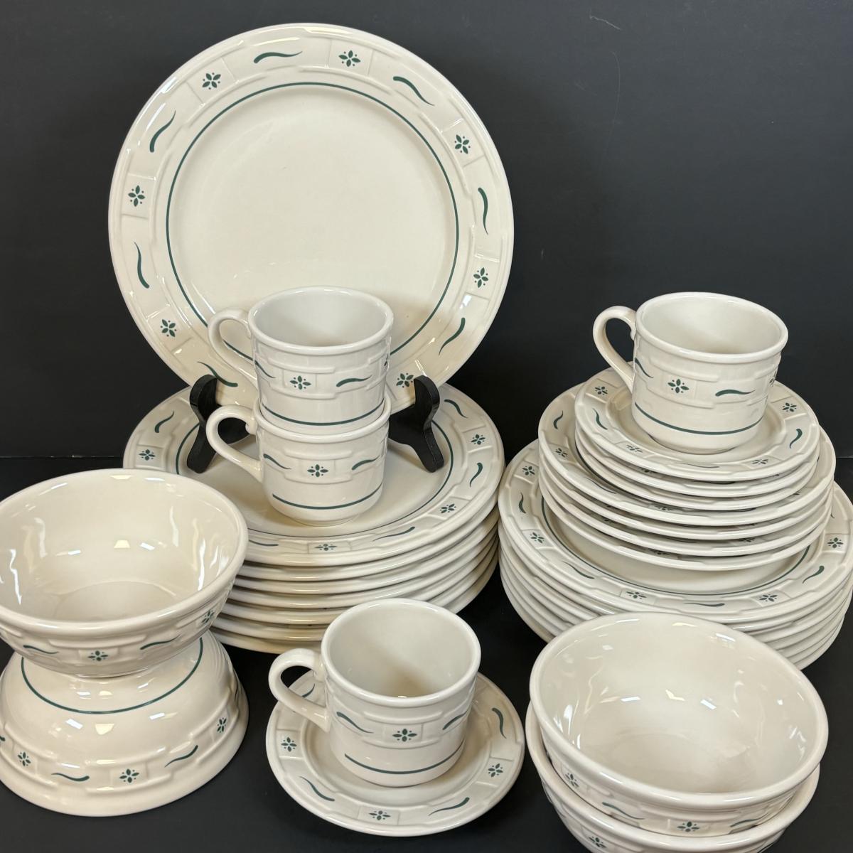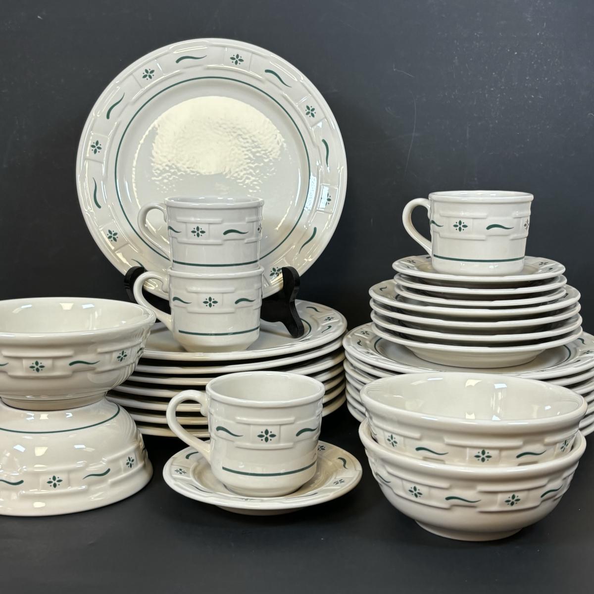 LOT 16: Longaberger Pottery Woven Traditions Dish Set - Heritage Green: