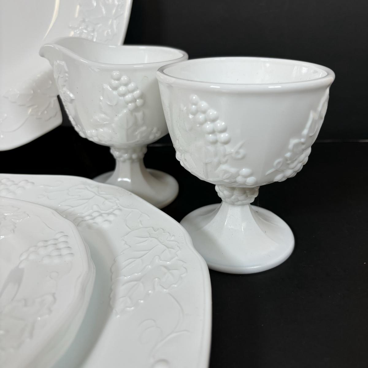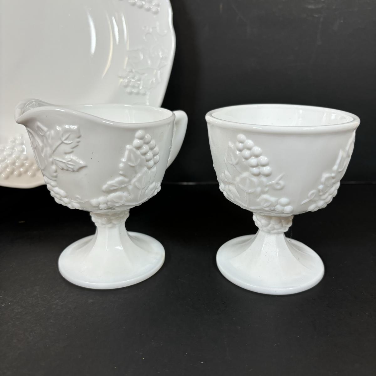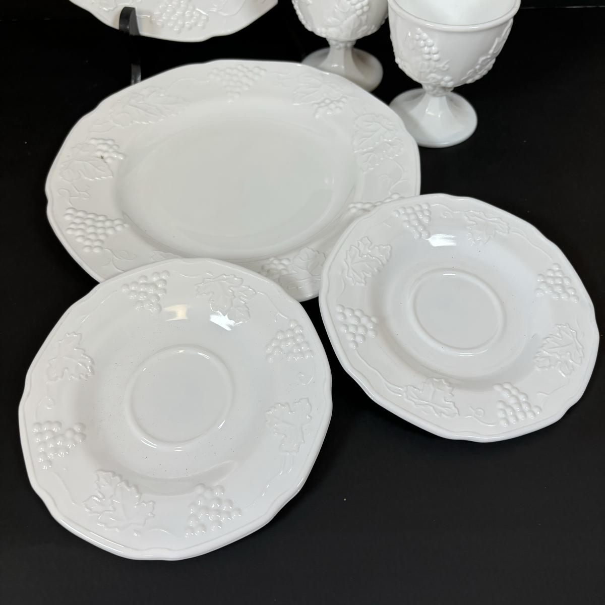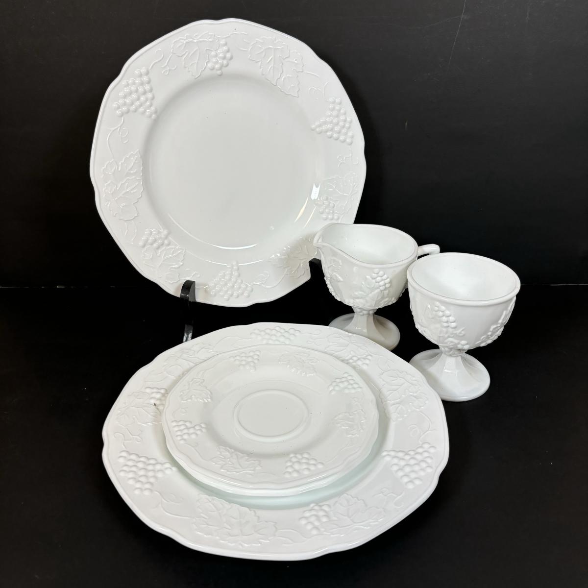 LOT 18: Vintage Milk Glass Plates, Saucers, Sugar & Creamer