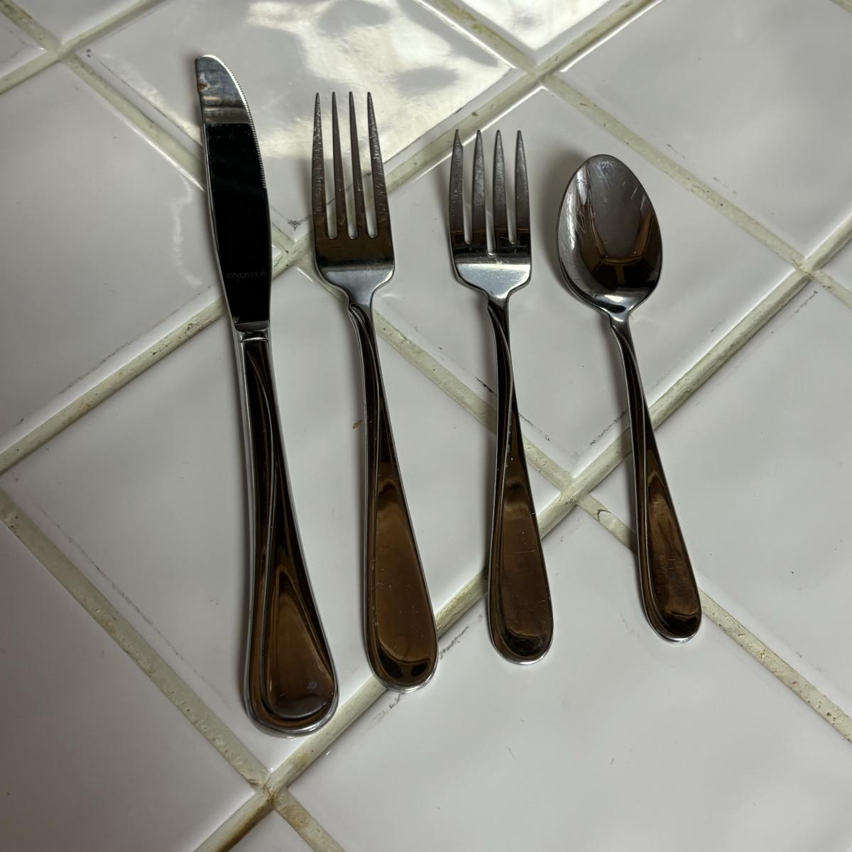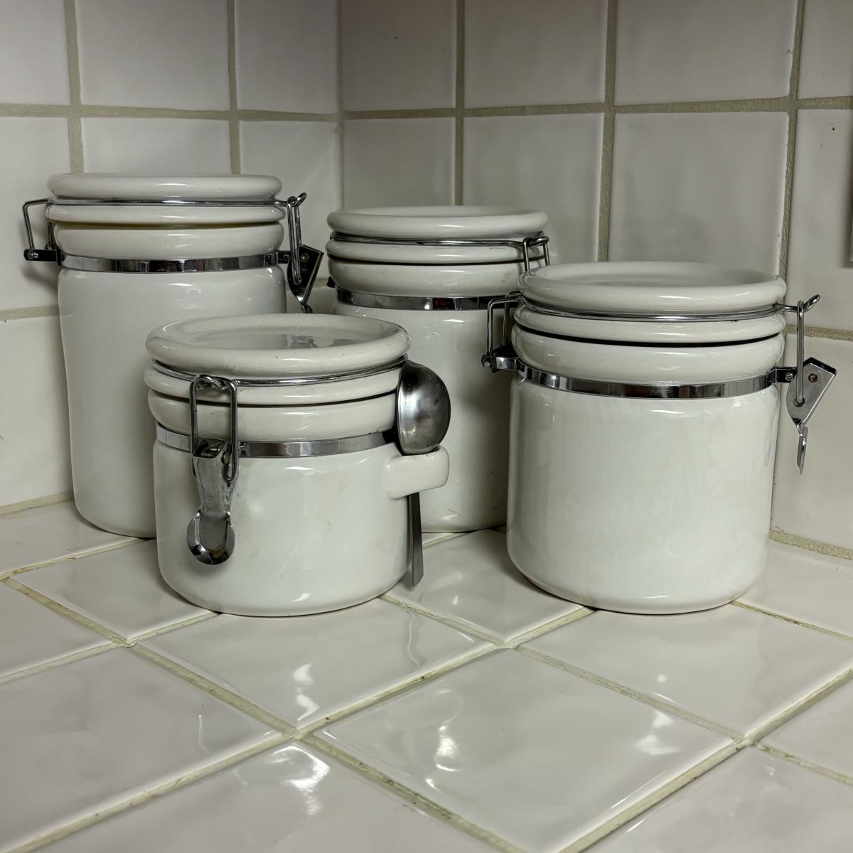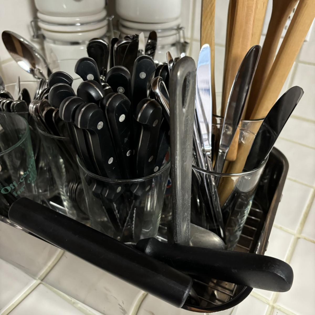 LOT 19: Le Gourmet Chef Mugs & Bowls, OGGI Canister Set, Flatware, Ikea Knives, Roaster Pan & More