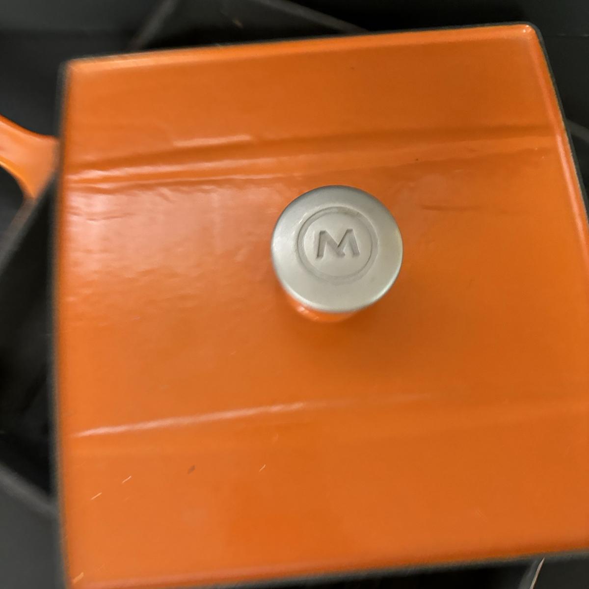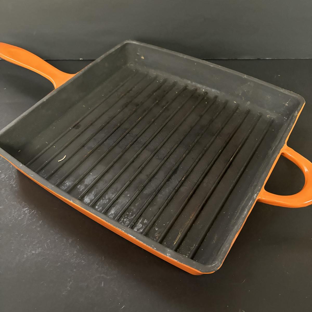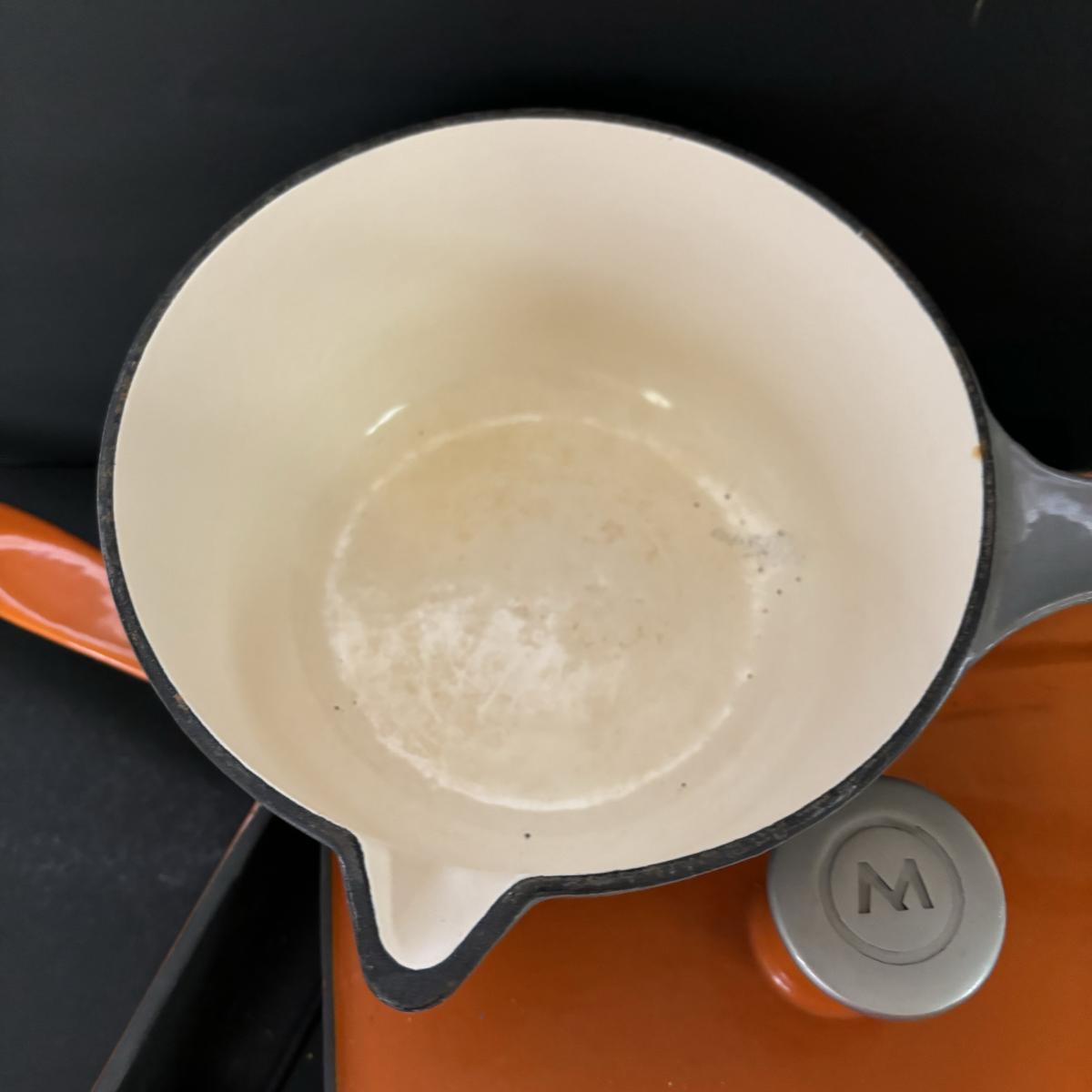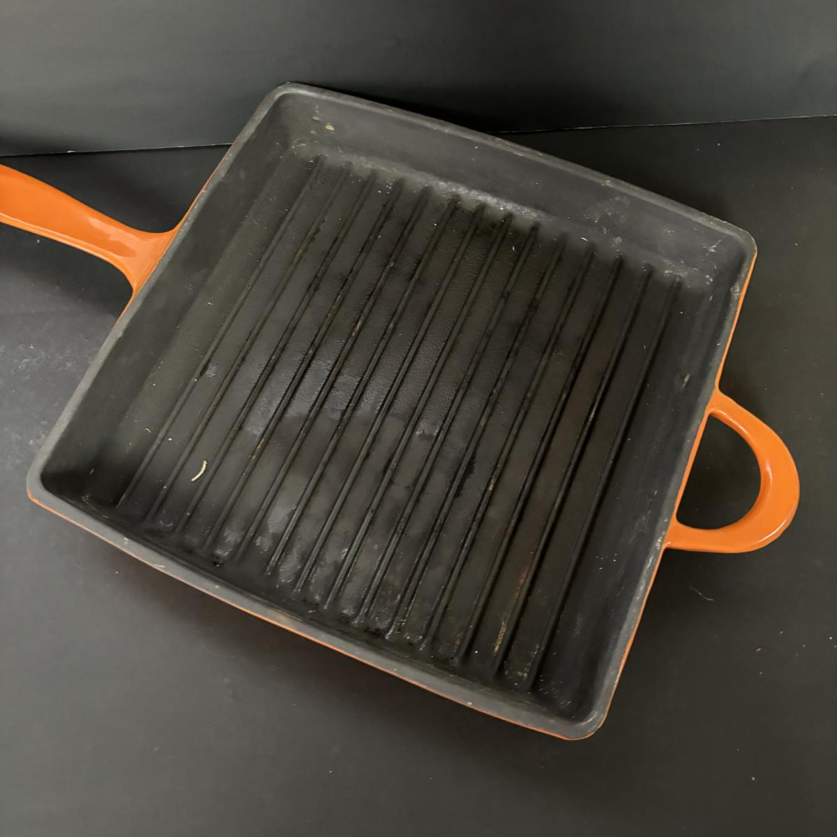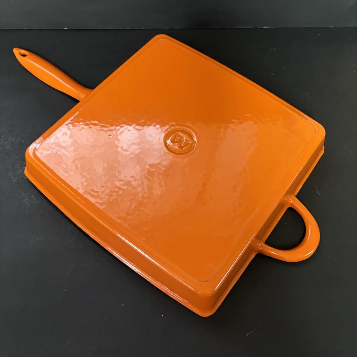 LOT 21: Cuisinart Cast Iron Enameled 2qt Saucepan & Mario Batali by Dansk Orange Enameled Cast Iron Grill Pan w/Panini Press Lid