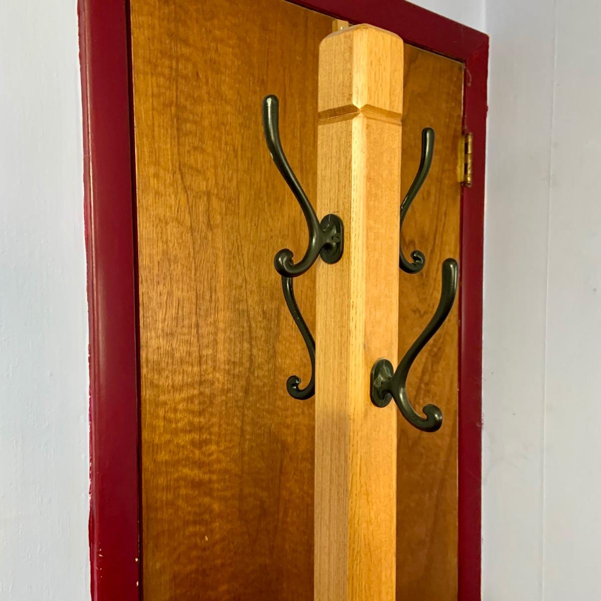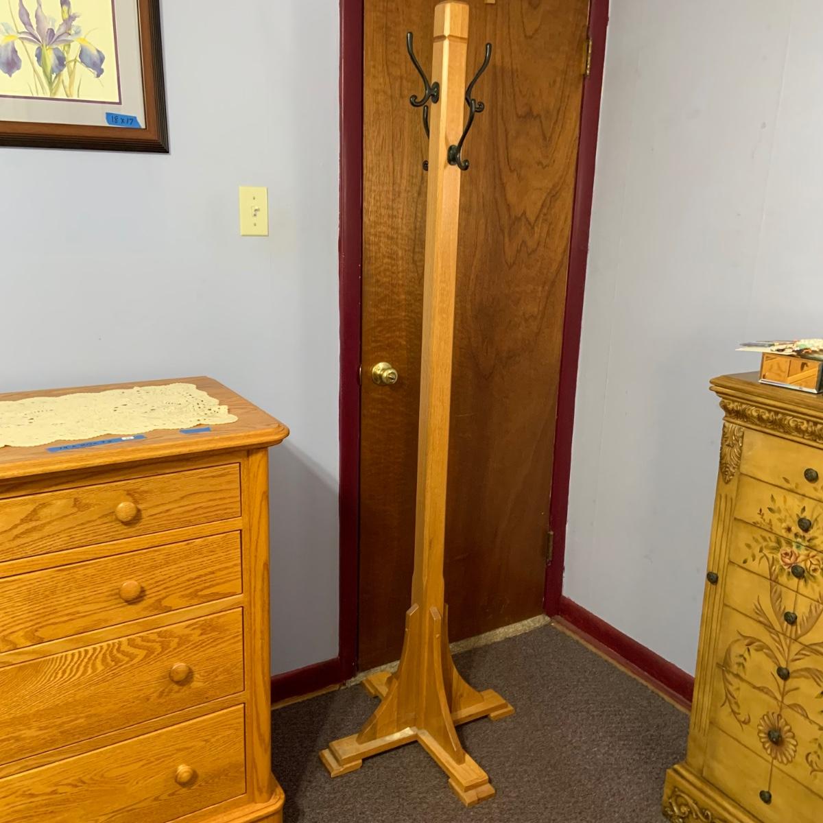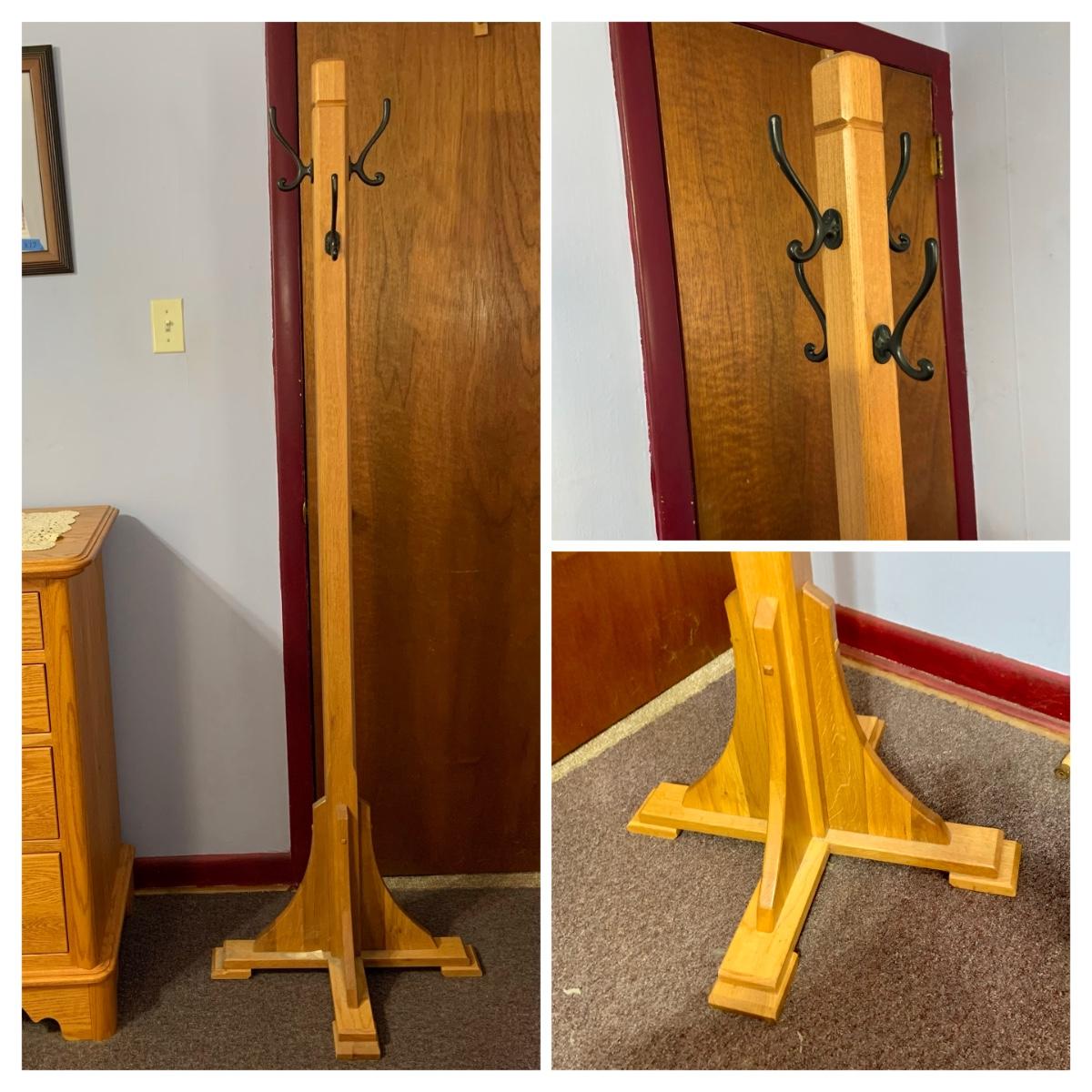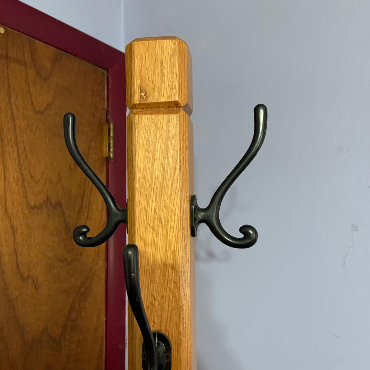 LOT:33: Solid Wood Mission Hall Tree / Coat Rack with Metal Hooks