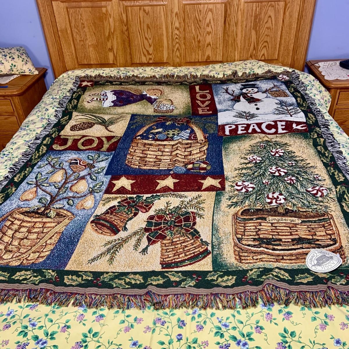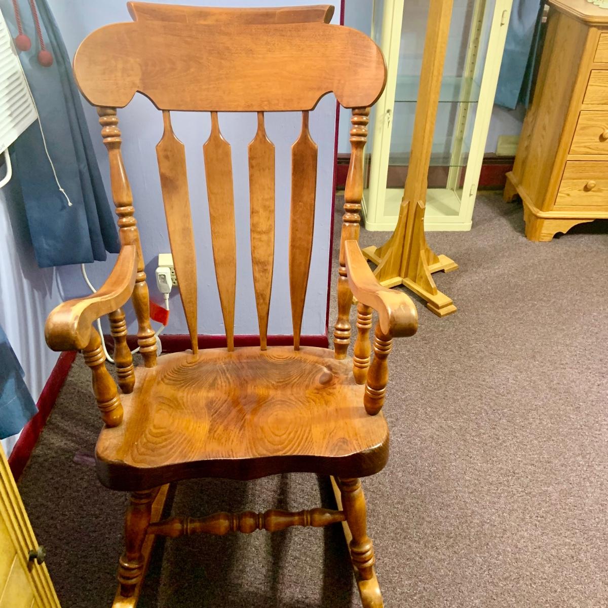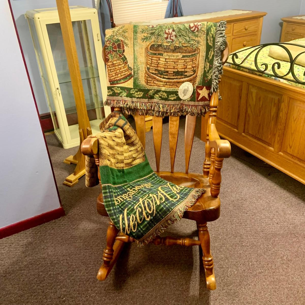 LOT:40: Solid Wood Rocking Chair with 2 Longaberger Throw Blankets