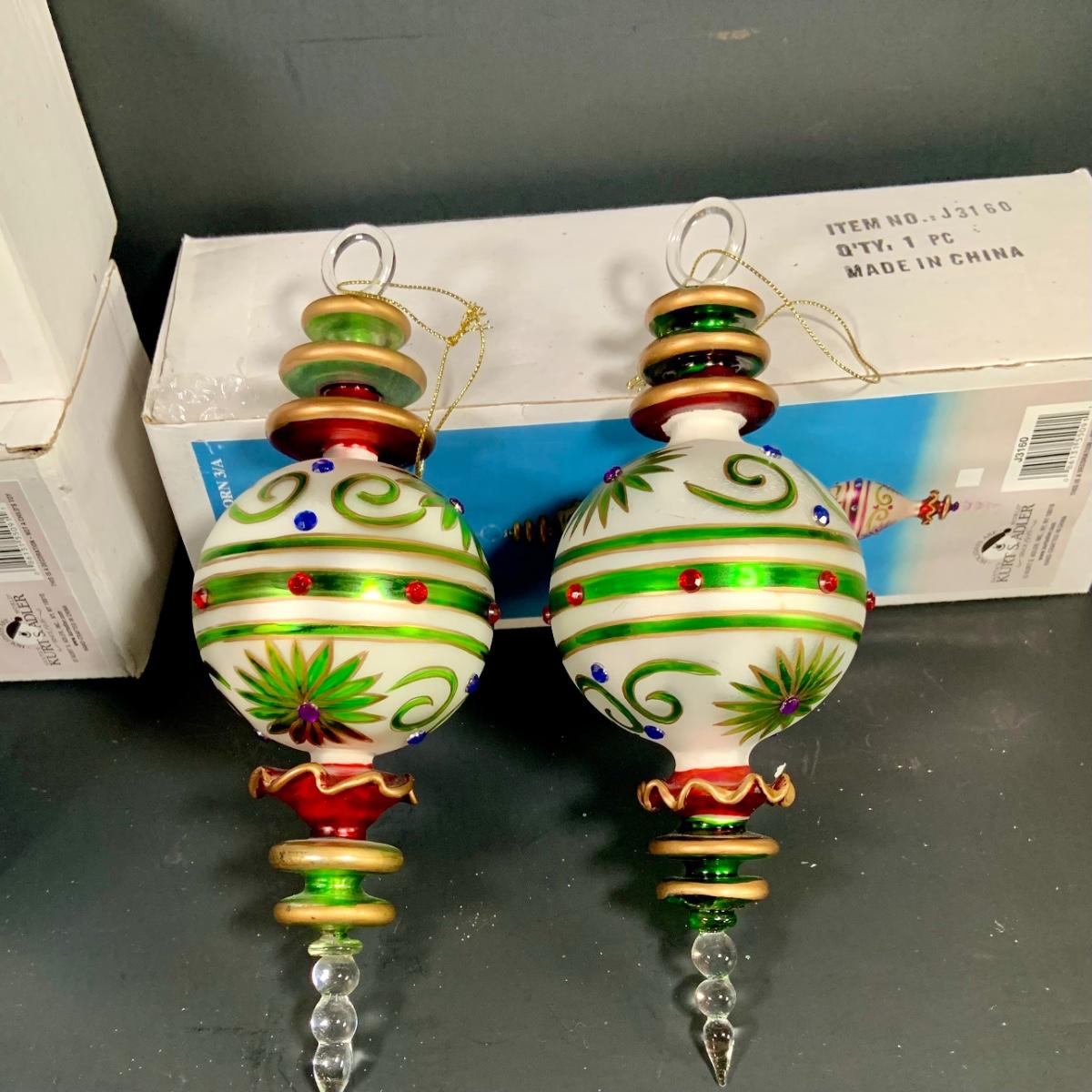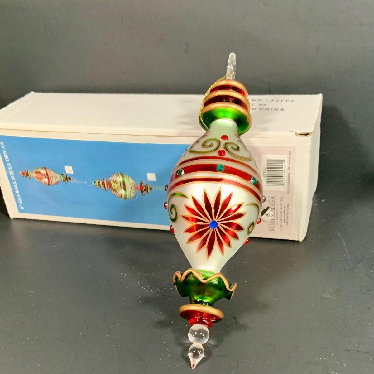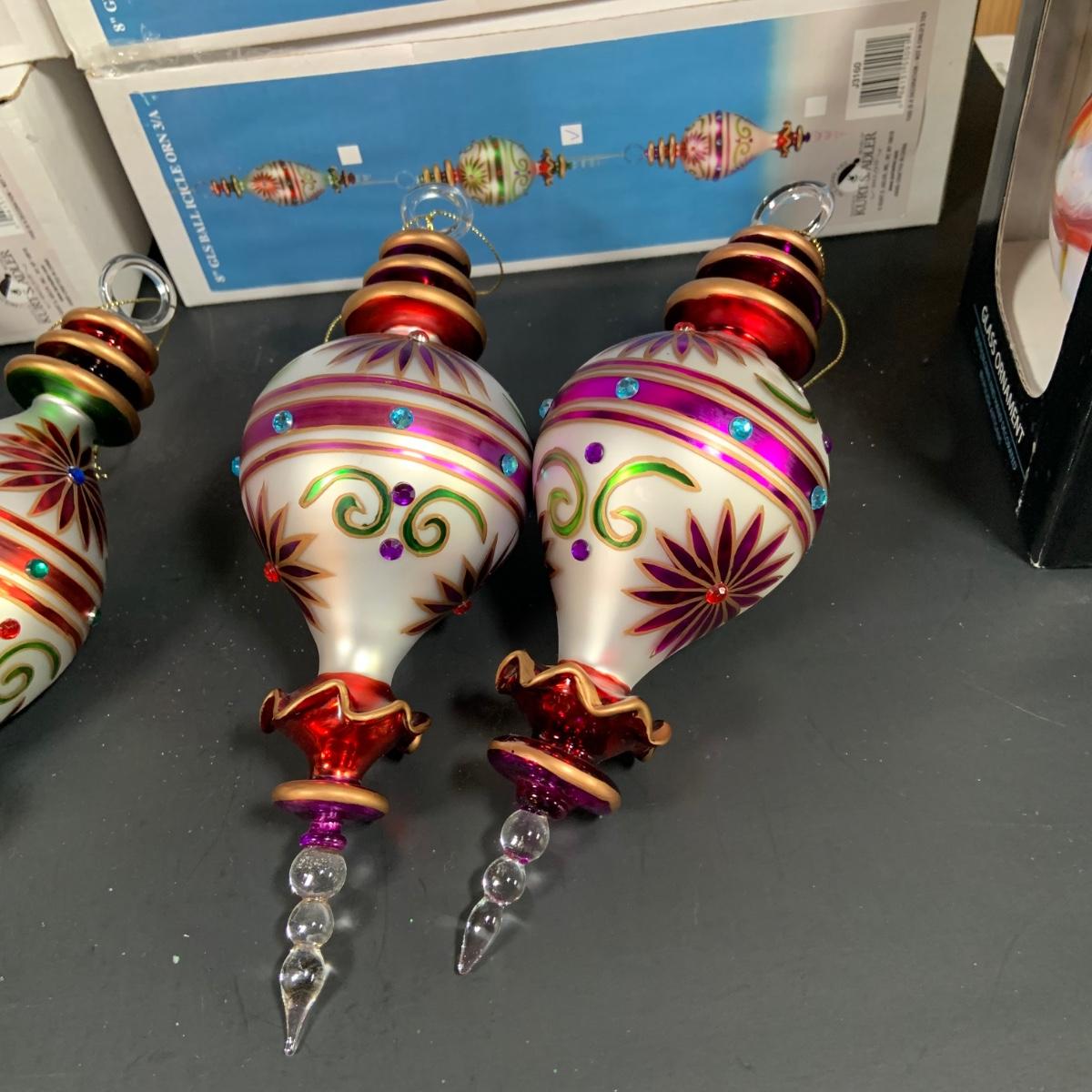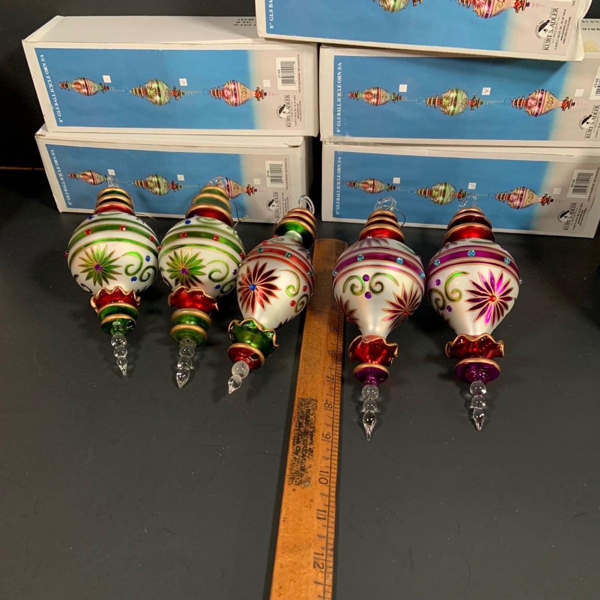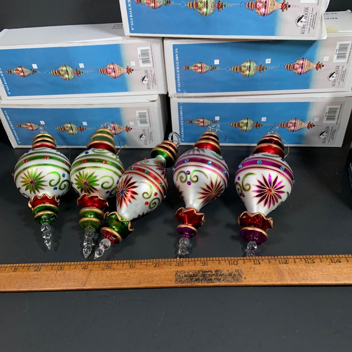 LOT:42: Beautiful Glass Christmas Ornaments Featuring a Handmade Glass Bulb from Poland, Kurt Adler Glass Icicle Ornaments and Santa Glass Ornaments