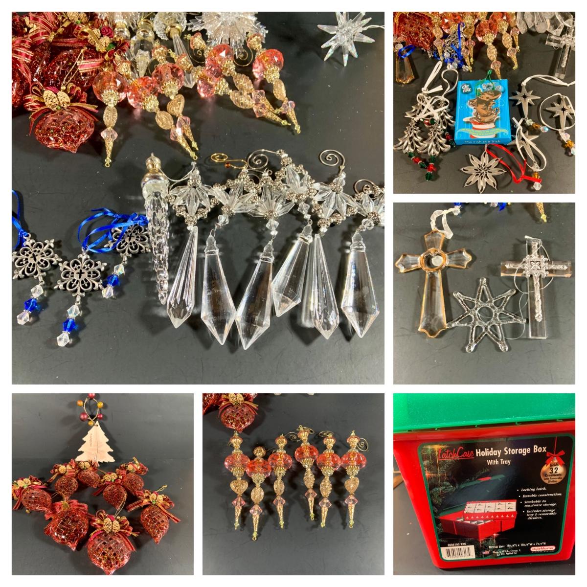 LOT:49: Holiday Storage Box Loaded with Assorted Christmas Ornaments
